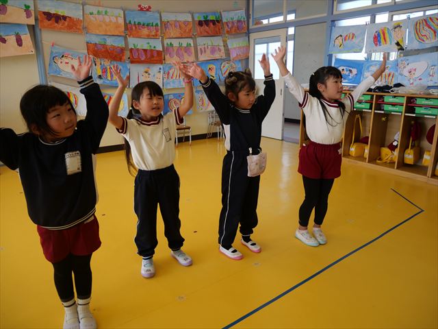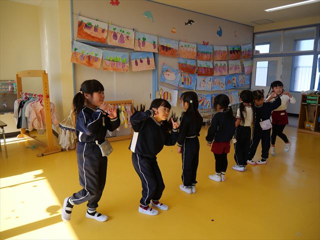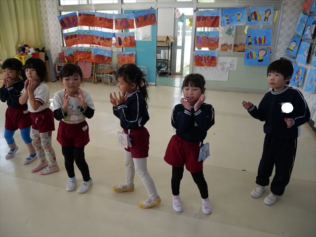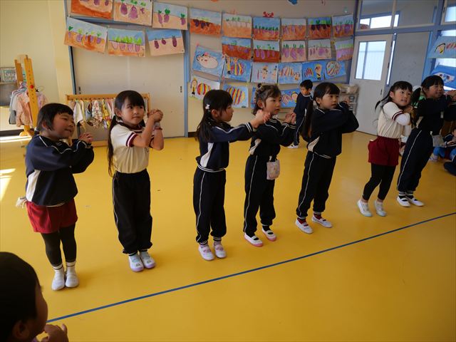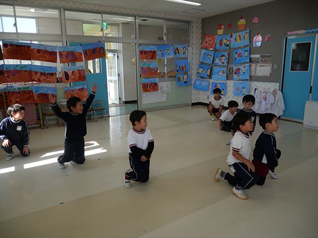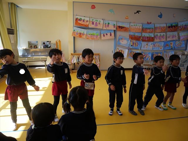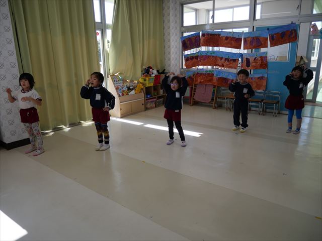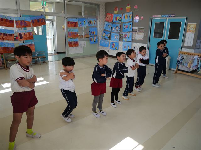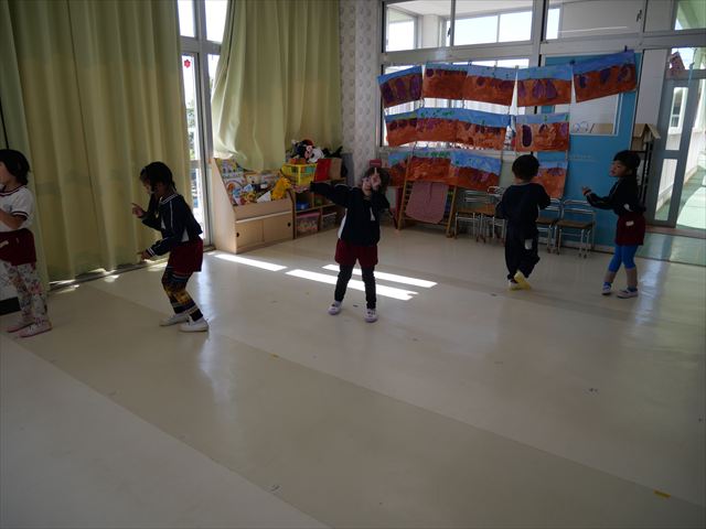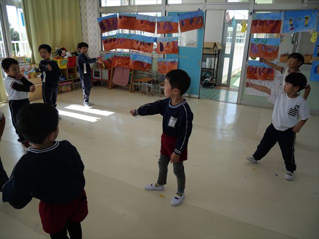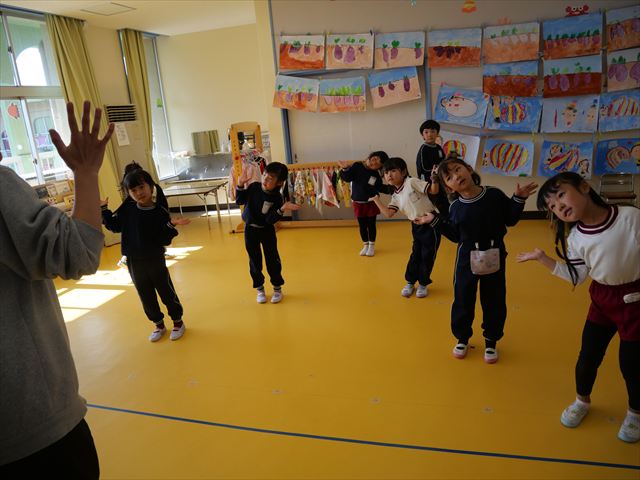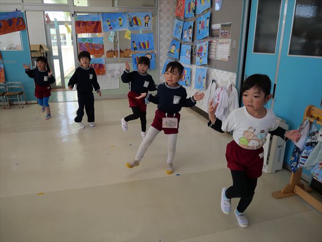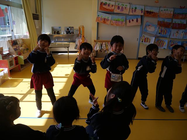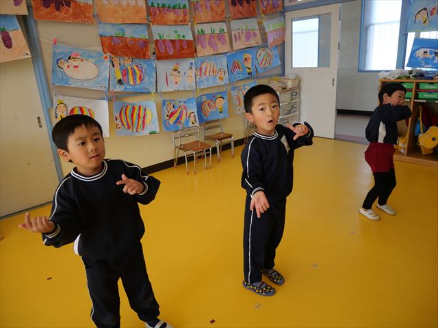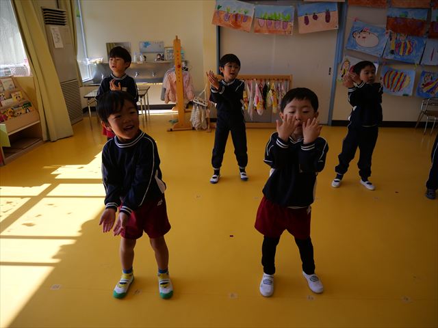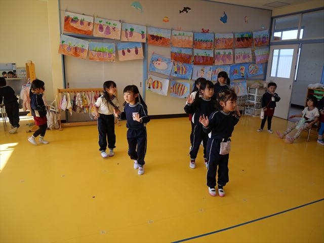 午後は、発表会の練習をしました。先日と今日の練習で、男の子チームと女の子チームそれぞれの立ち位置を確認しました。心なしか、遊戯室で踊るほうがみんな生き生きしているような…!?本番をお楽しみに!(^^)! ※写真がなくて申し訳ありませんm(__)m