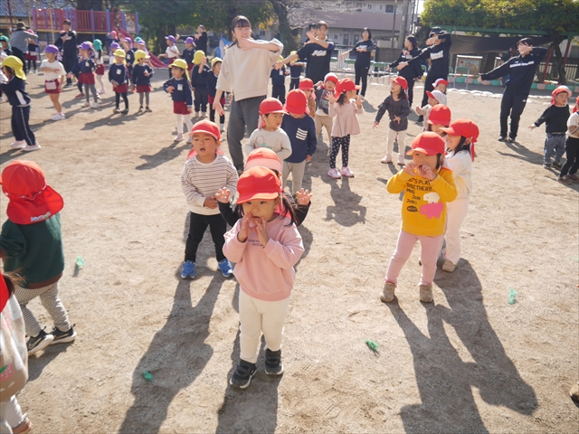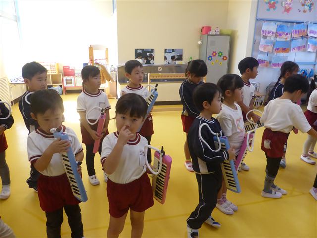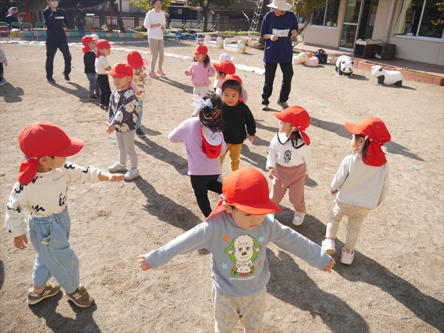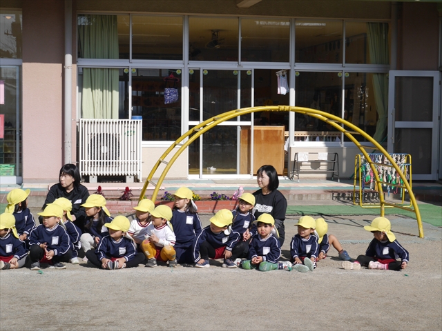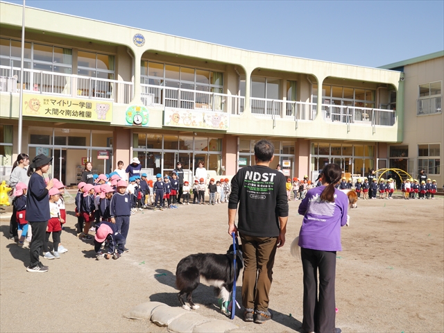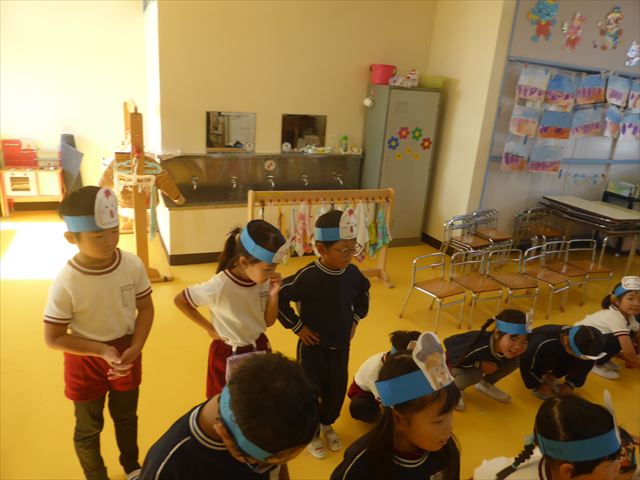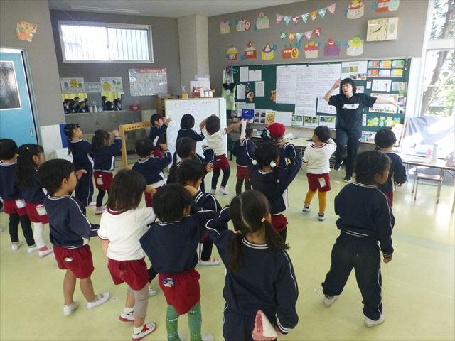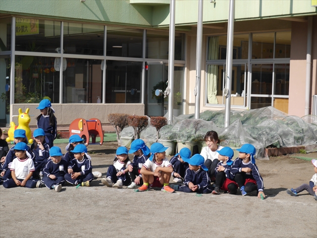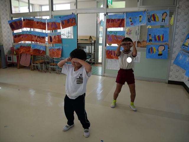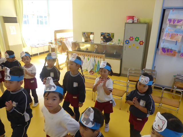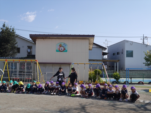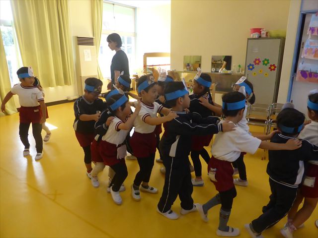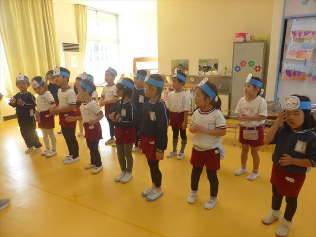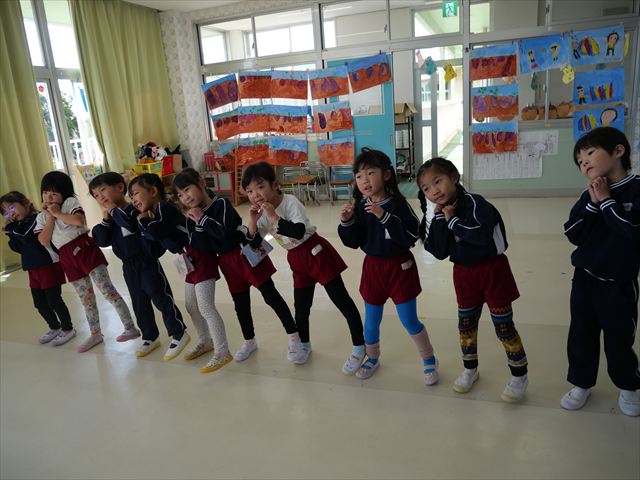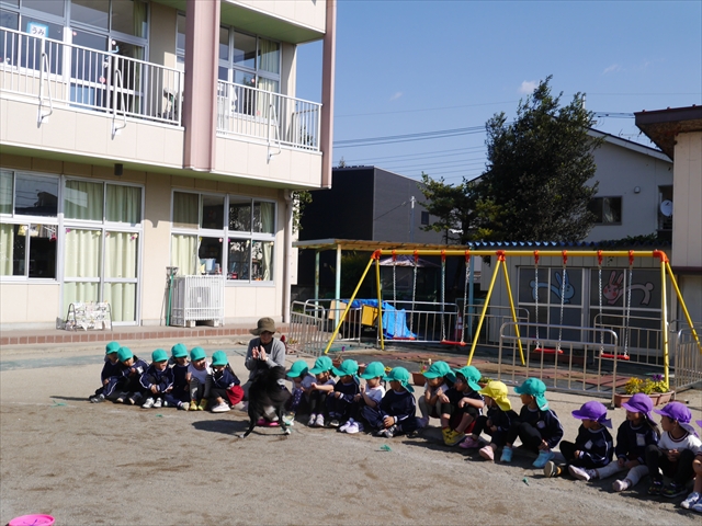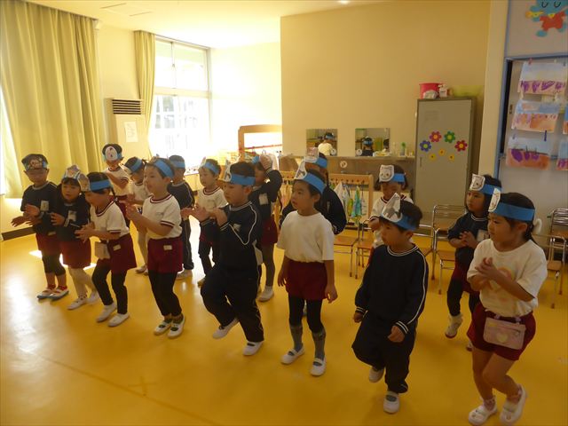午前中ディスクドッグを見学して、手作り弁当は縦割保育で頂き、そして発表会の練習も頑張った1日でした。劇あそびの練習では、ダンスをしました。ダンスになると振りを覚えようと先生の動きをよく見て楽しそうに踊っています。覚えるのが早く驚きます。お友だちと右左がそろうように練習して行きたいと思います。