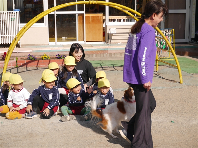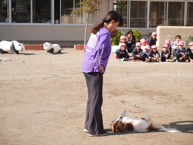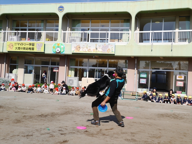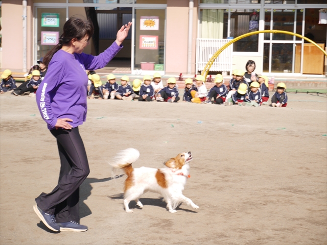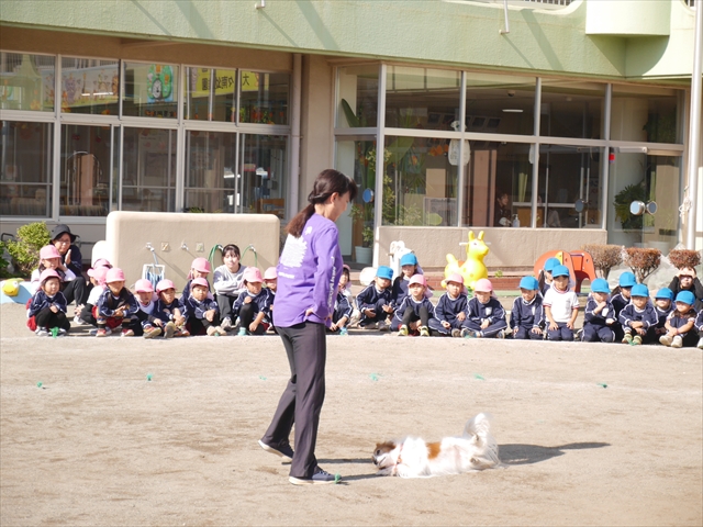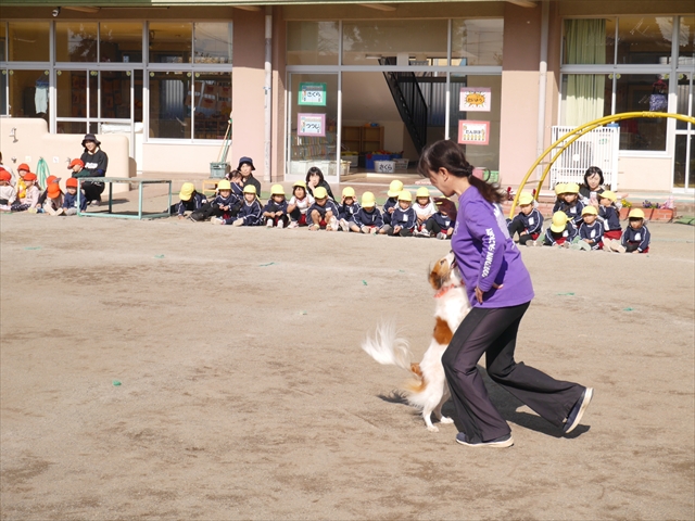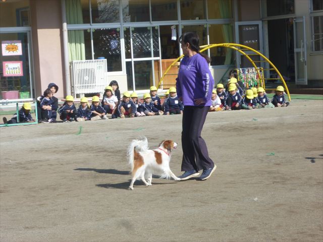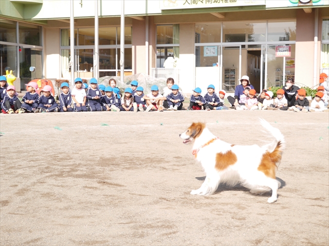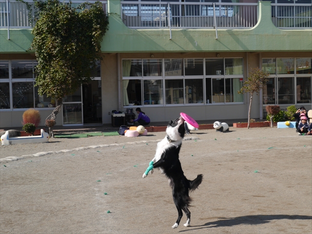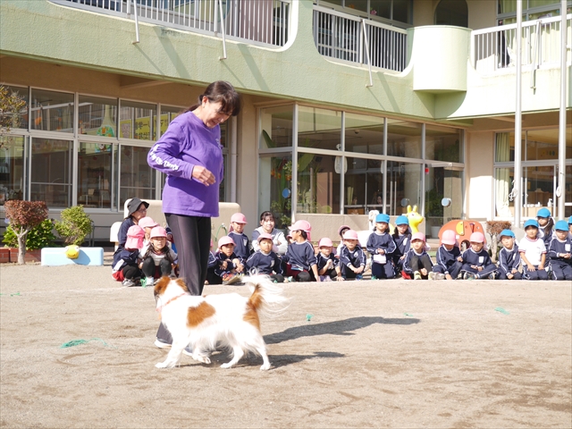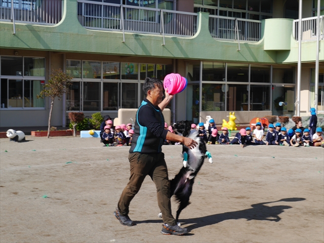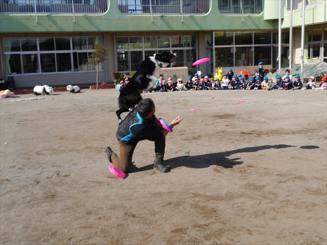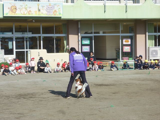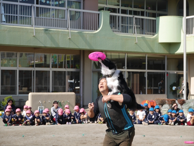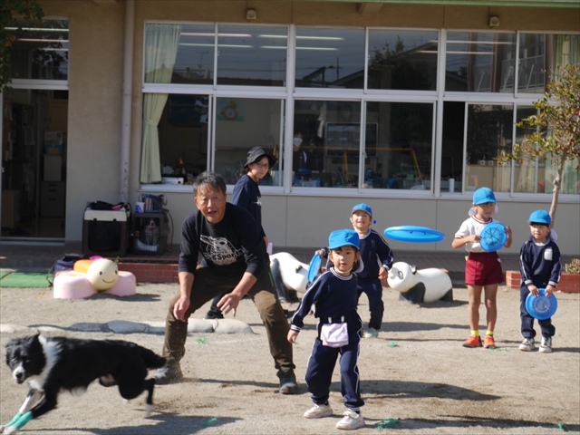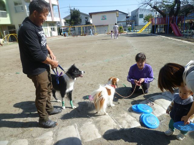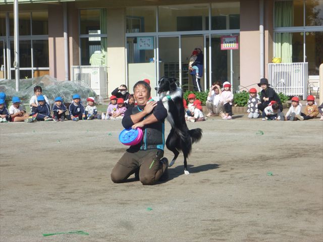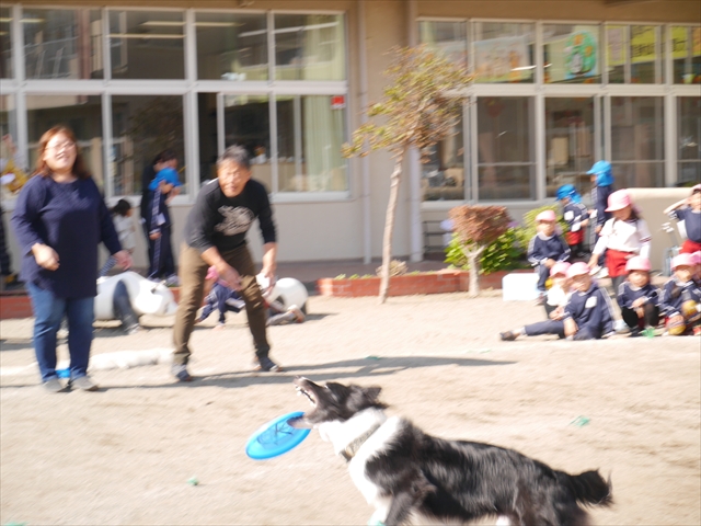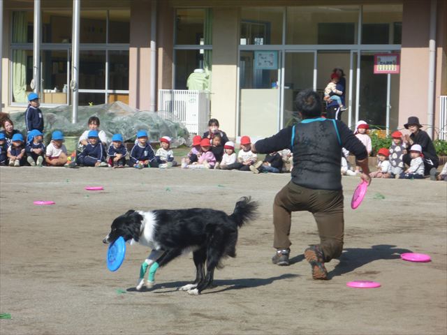 今日は、例年開催して子どもたちに大人気だった「ディスク・ドッグ」イベントを行いました!今年も「さくらんぼクラブ」のプログラムとしても実施し、同時開催として行いました。(^_^) 秋晴れの気持ちよい天気の下で、お忙しい中参観にいらしたさくらんぼクラブの皆さん方、ありがとうございました!今年も清水忠憲さんご夫婦と「わんちゃん」にお願いして、園庭でやっていただきました。(*^_^*)