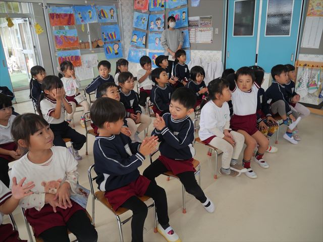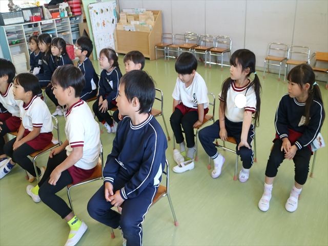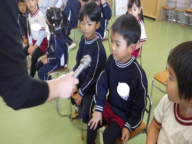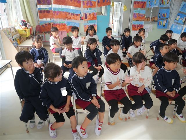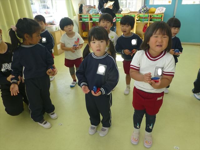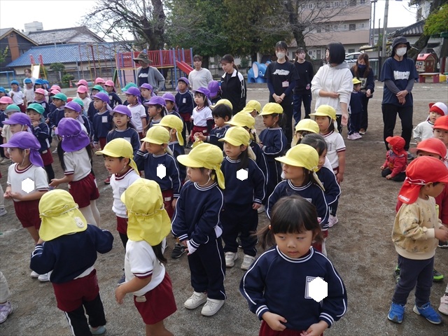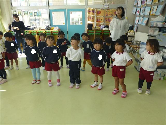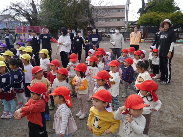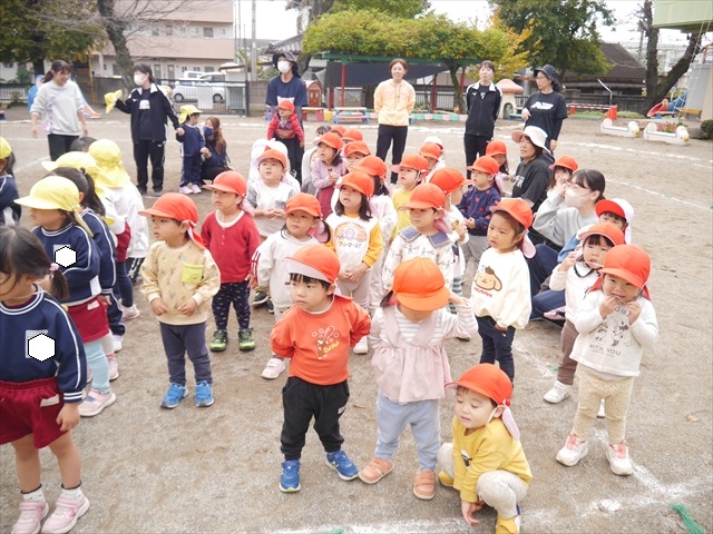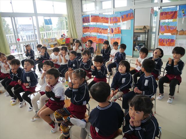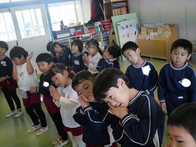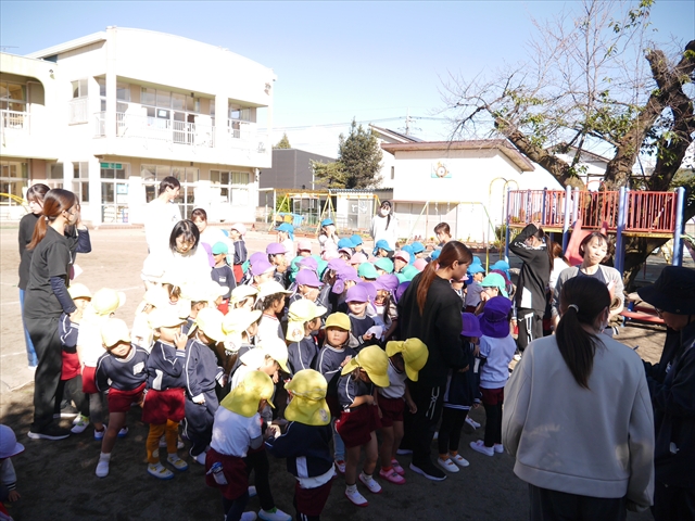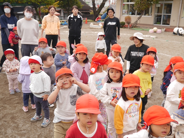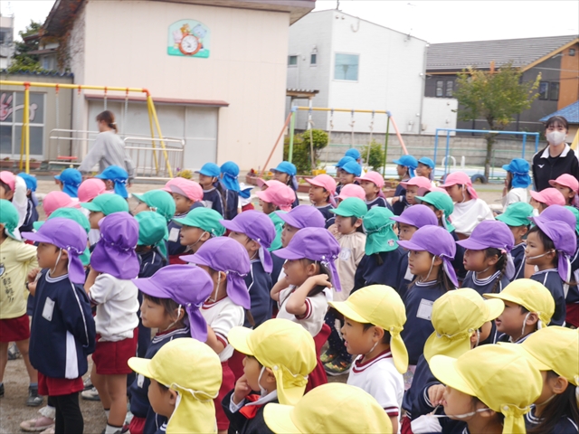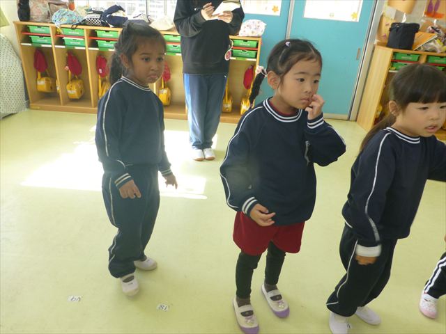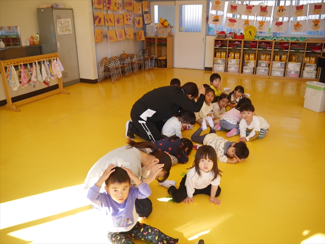 明日は「ひたちなか市との市民交流会」があります。制服登園で来てください。会場は岩宿博物館駐車場になっています。会場付近が渋滞が予想されますので、予定よりも早く園を出発したいと思います。急で申し訳ございませんが、送迎の方はできるだけ9時までに登園してください。また出演時間も前の団体の状況に応じて10時前後になる可能性もありますので、早めに会場にお越しください。ご協力よろしくお願いいたします。今日は、地震・火災対応の「避難訓練」を行いました!(*^^)v また、実際の消火器を使った本物体験「消火訓練」も行い、消防士の先生たちも上手に消火できましたかな?(^_^)B
