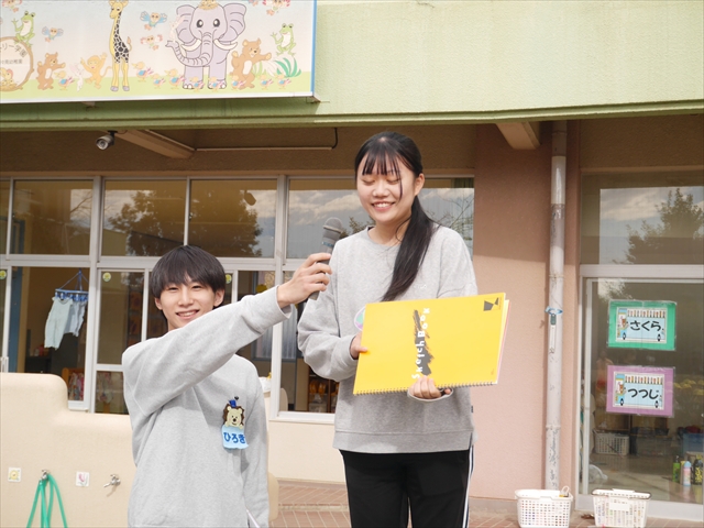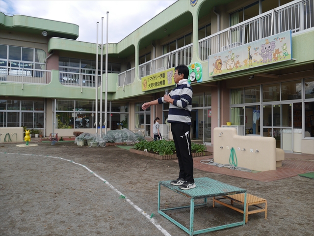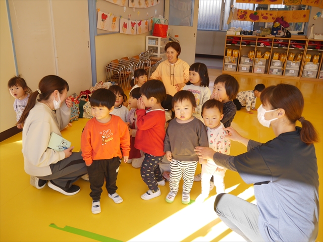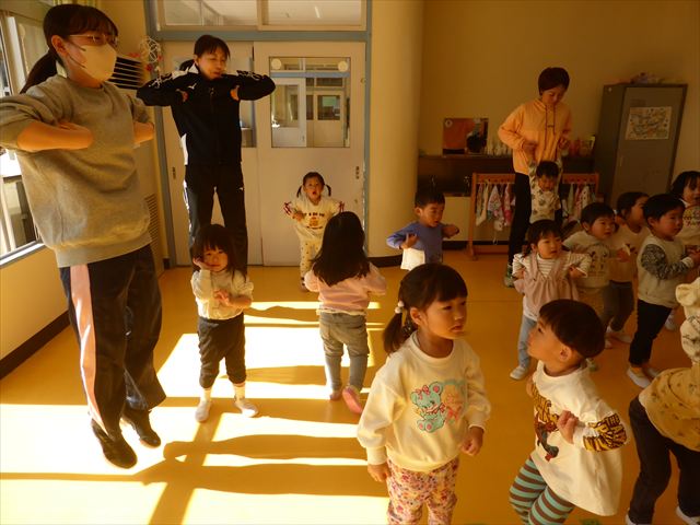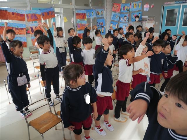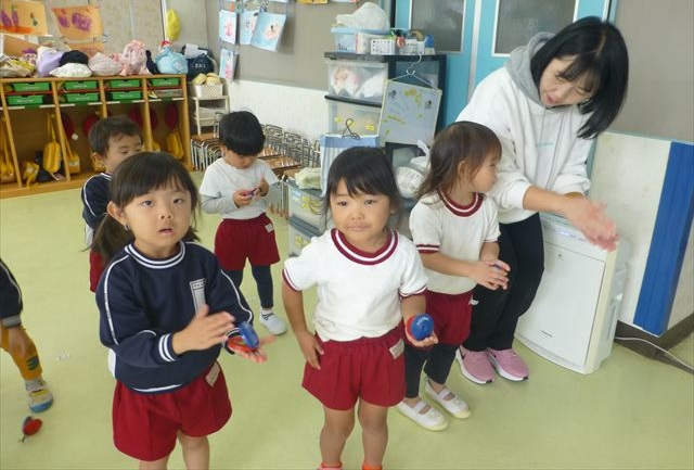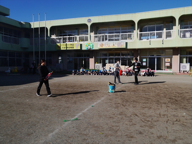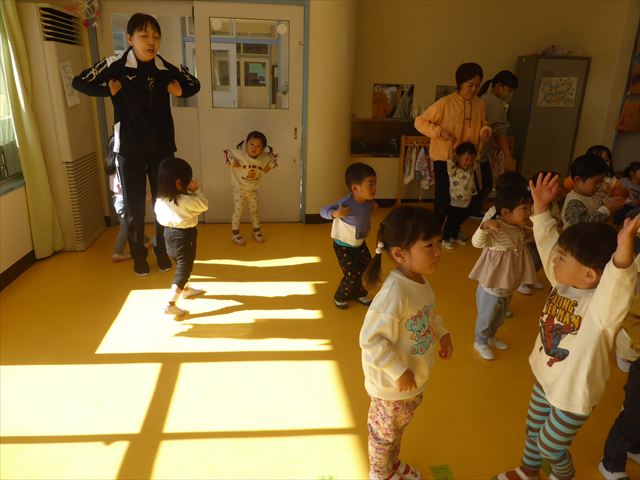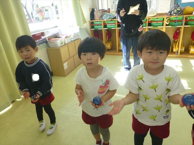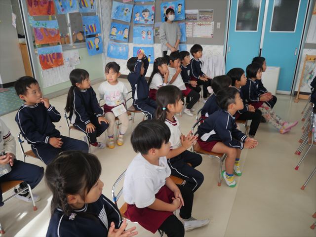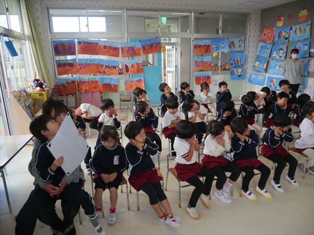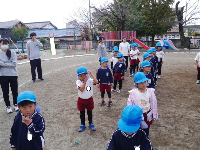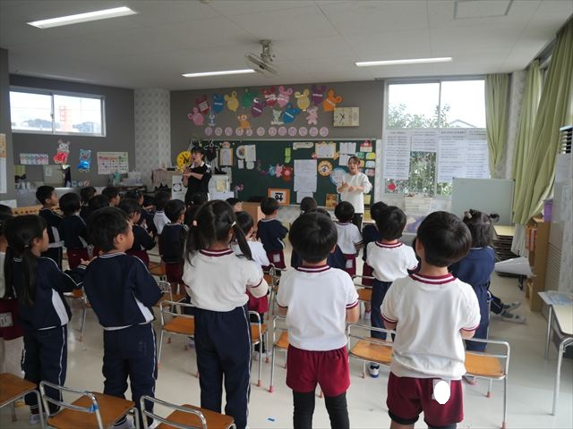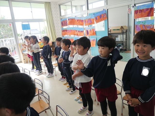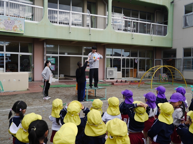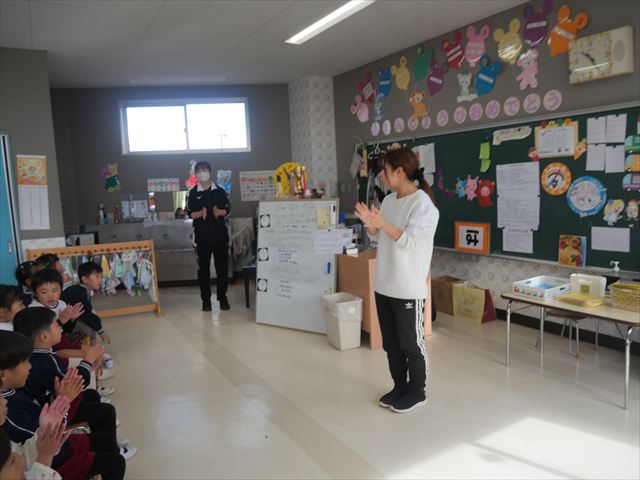 明日は「ひたちなか市との市民交流会」があります。制服登園で来てください。会場は岩宿博物館駐車場になっています。会場付近が渋滞が予想されますので、予定よりも早く園を出発したいと思います。急で申し訳ございませんが、送迎の方はできるだけ9時までに登園してください。また出演時間も前の団体の状況に応じて10時前後になる可能性もありますので、早めに会場にお越しください。ご協力よろしくお願いいたします。今日は、地震・火災対応の「避難訓練」を行いました!(*^^)v また、実際の消火器を使った本物体験「消火訓練」も行い、消防士の先生たちも上手に消火できましたかな?(^_^)B