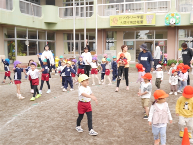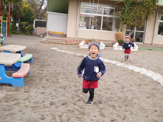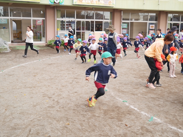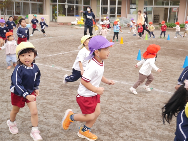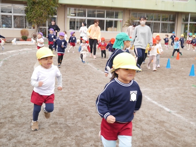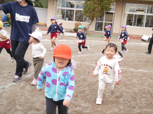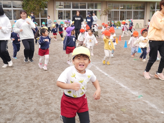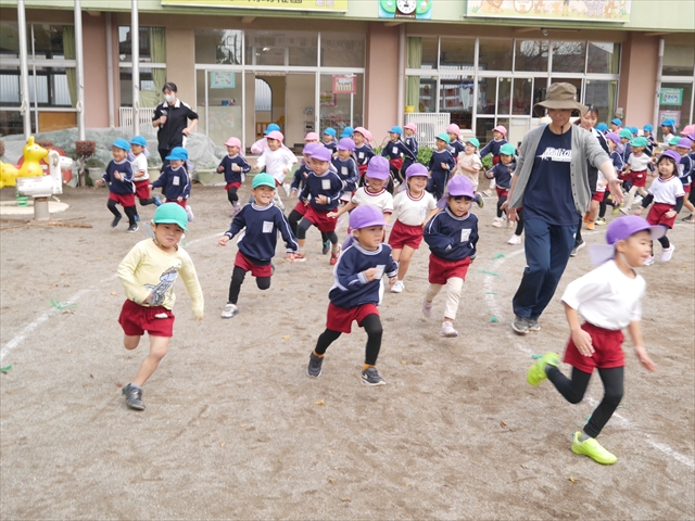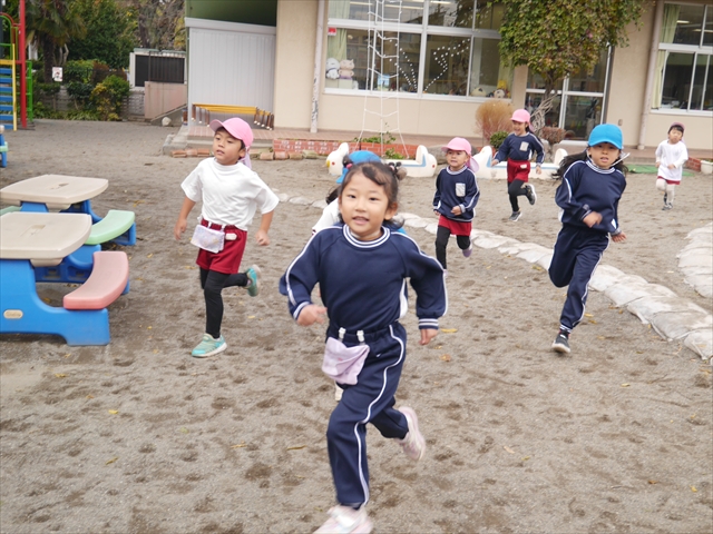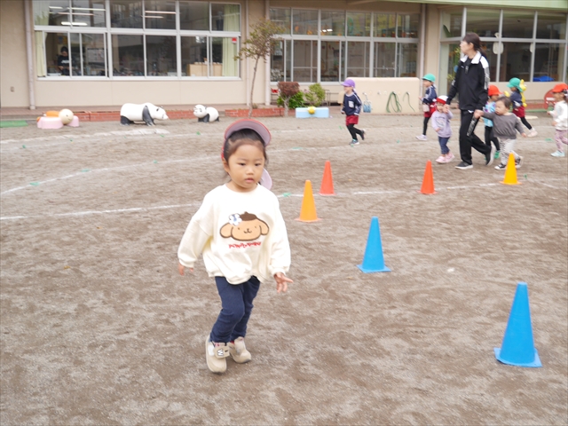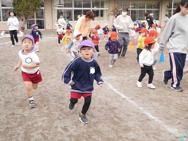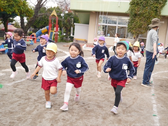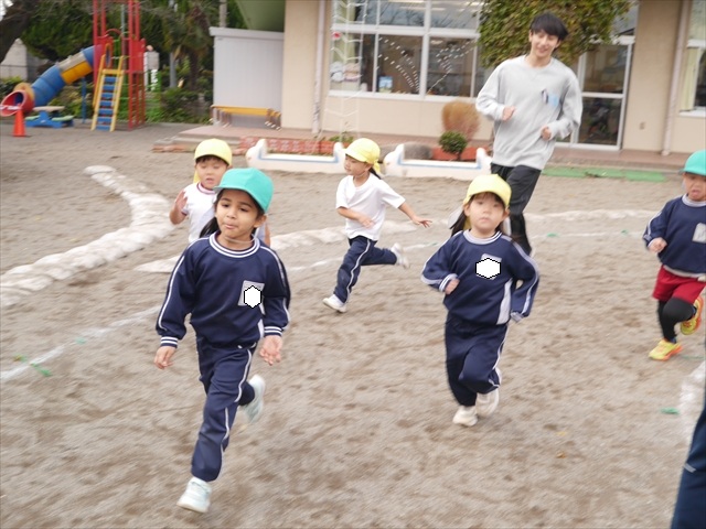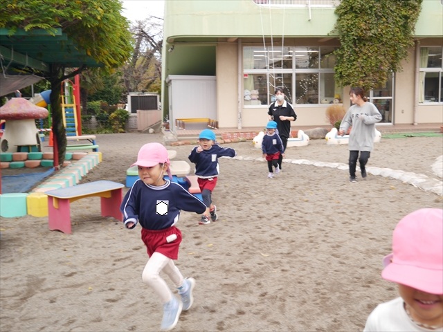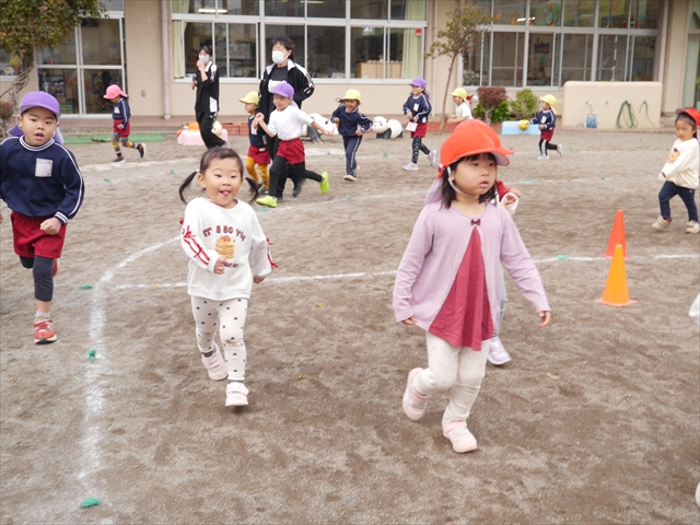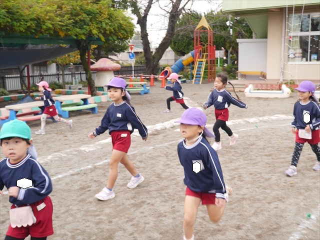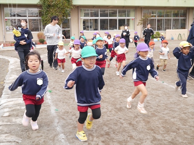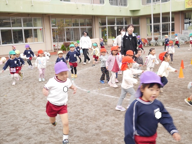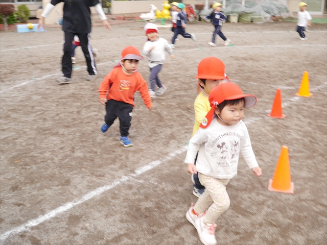 世の中のスポーツは、今「駅伝」や「マラソン」のシーズンとなっておりますが、マイトリー幼稚園も月曜日と水曜日の朝の活動は、「マラソン」になります。準備体操をした後、音楽に合わせた3分間程度の「時間走」を行います。今日は今年度初めての「朝マラソン」でしたが、みんな元気よく頑張って走り抜きました。えらい!えらい! これからどんどん寒くなり、また寒い冬を迎えます。寒さに負けない元気で丈夫で健康な身体・持久力・防衛体力を身につけていってほしいと思います。みんながんばれ~!\(^_^)/ ヘ(^o^)/
