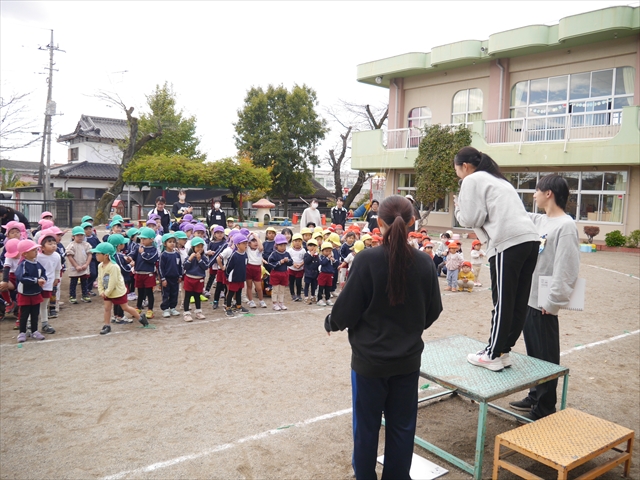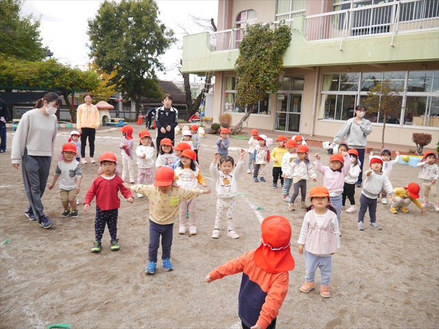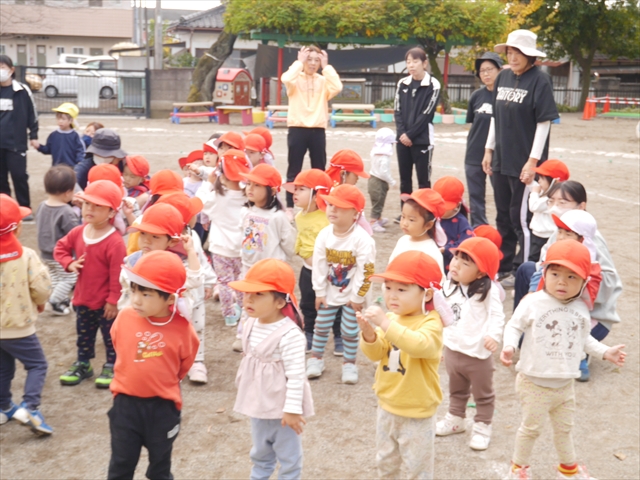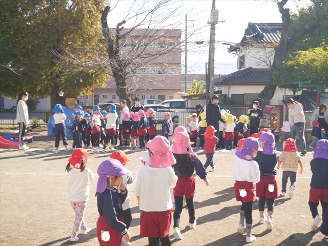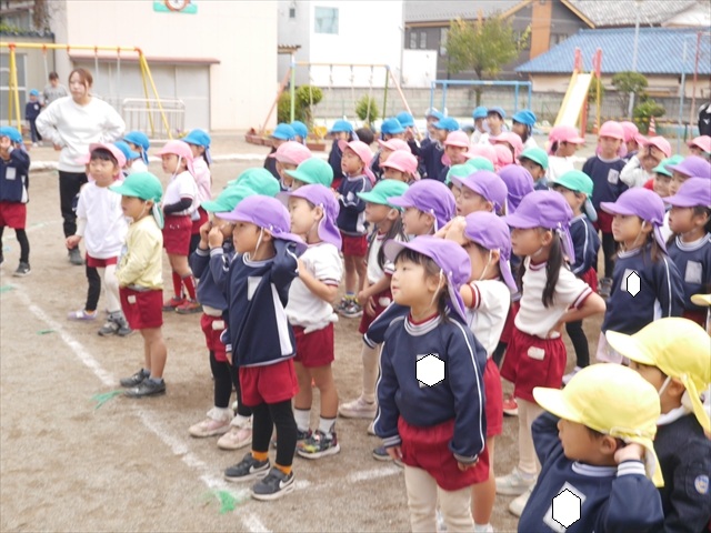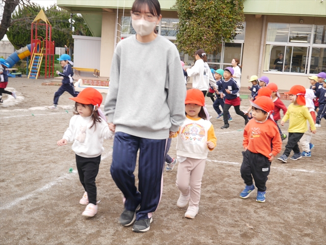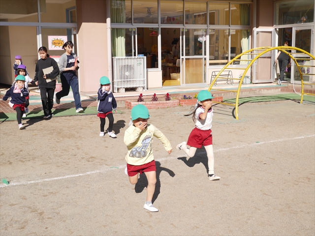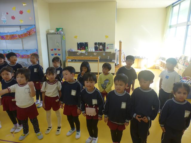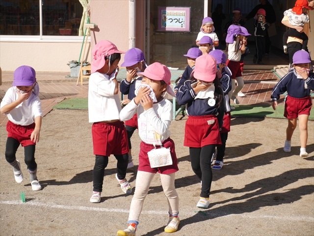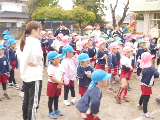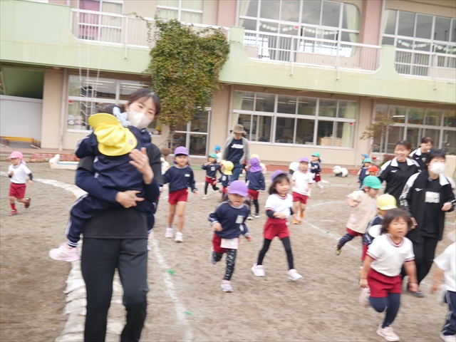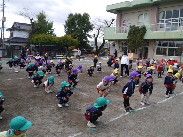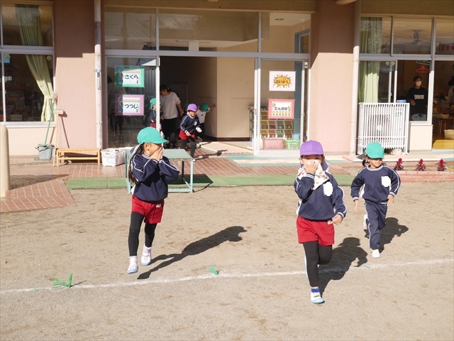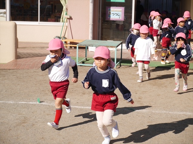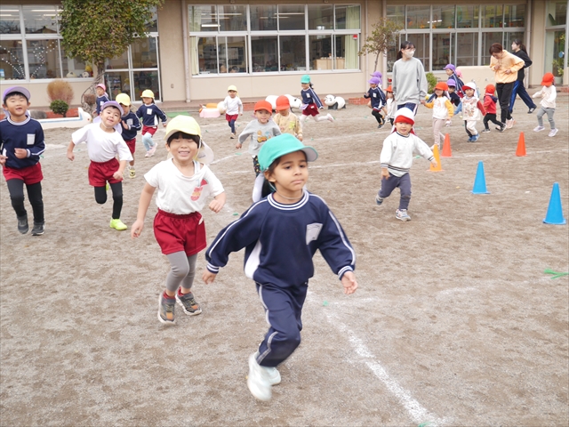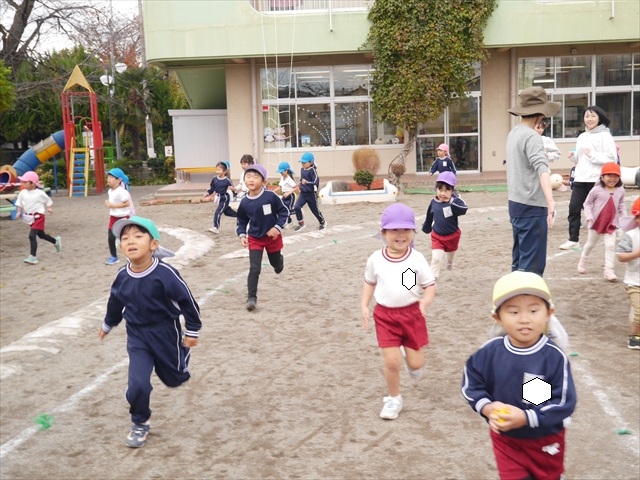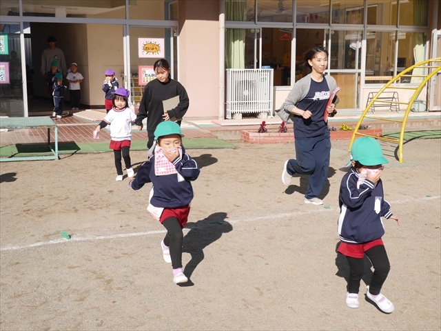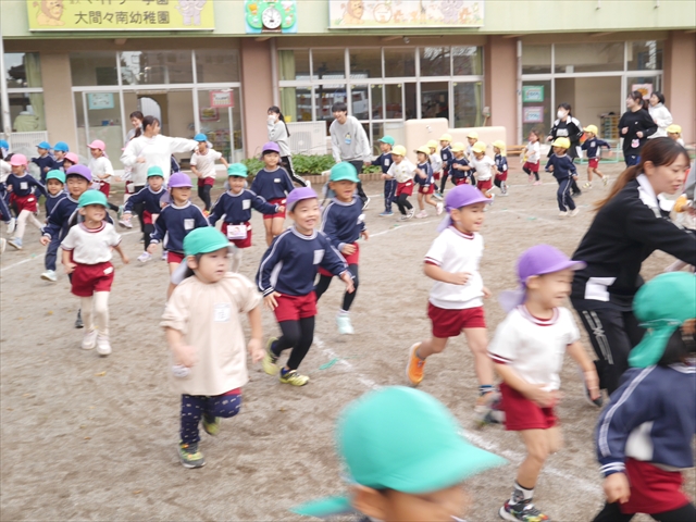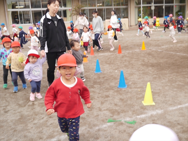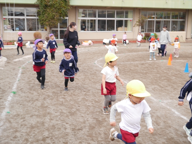 世の中のスポーツは、今「駅伝」や「マラソン」のシーズンとなっておりますが、マイトリー幼稚園も月曜日と水曜日の朝の活動は、「マラソン」になります。準備体操をした後、音楽に合わせた3分間程度の「時間走」を行います。今日は今年度初めての「朝マラソン」でしたが、みんな元気よく頑張って走り抜きました。えらい!えらい! これからどんどん寒くなり、また寒い冬を迎えます。寒さに負けない元気で丈夫で健康な身体・持久力・防衛体力を身につけていってほしいと思います。みんながんばれ~!\(^_^)/ ヘ(^o^)/