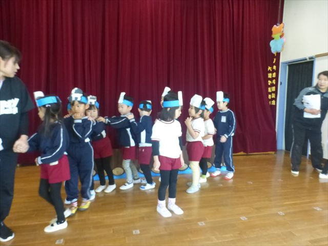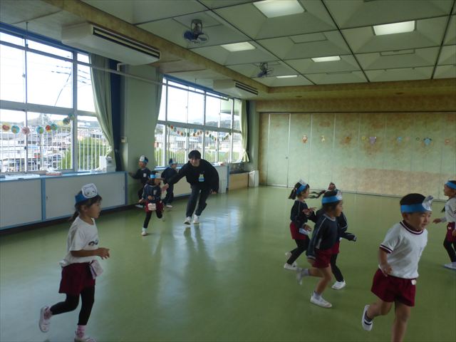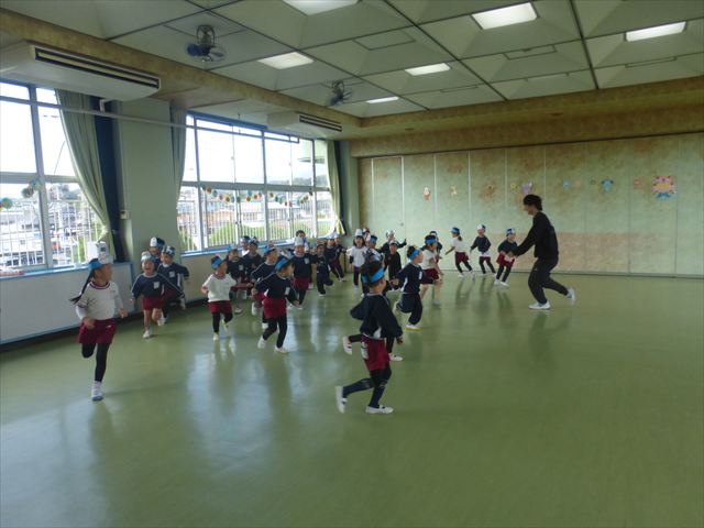 発表会の練習&鬼ごっこ☆年中☆ 2025年11月11日 マイトリー学園大間々南幼稚園 コメントする 今日は、発表会の会場となるお遊戯室で劇あそびの練習をしました。実際にマイクを使ったり、ステージ横の控え室を使ったりしました。初めての遊戯室練習だったので、スムーズとは言えませんでしたがステージの広さやマイクの感覚を確認する事が出来ました。練習の合間に気分転換で、実習生の先生に鬼になってもらい鬼ごっこをしました。とっても楽しそうでした!