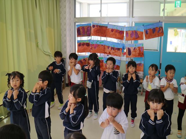 その後は、国語の時間で月刊誌を読みました。みんなが大好きな「どんぐりころころ」の歌があり、口ずさんで読んでいる子もいました(