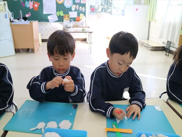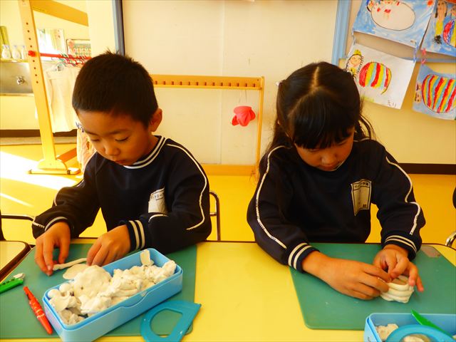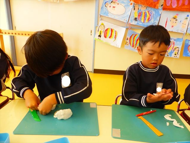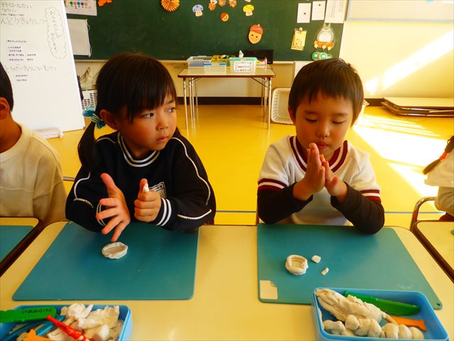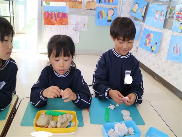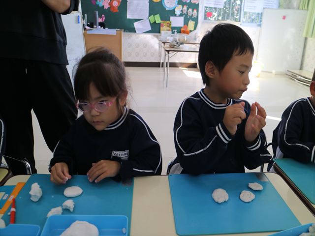 午後は明日の陶芸教室に向けての活動を行いました。初めに陶芸について簡単に説明をして、コップとお皿のどちらを作りたいか決めて、その後粘土で作る練習をしました!みんな試行錯誤しながらどんな作品にしようか考えながら行うことができて、明日が楽しみになったようでした☆
