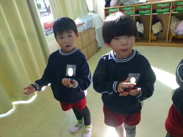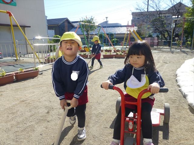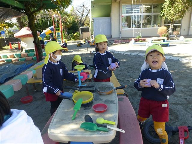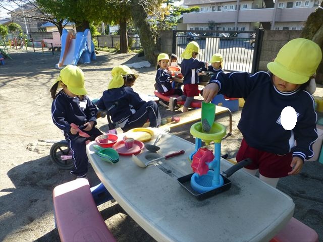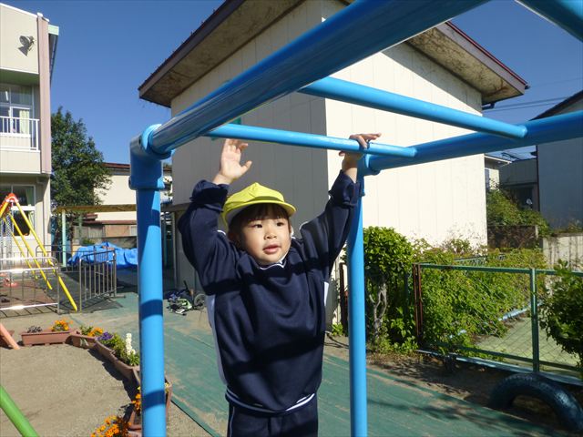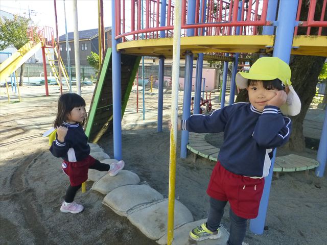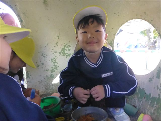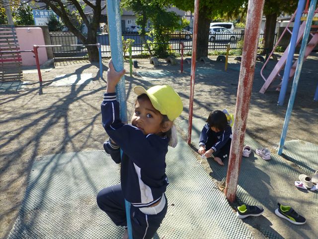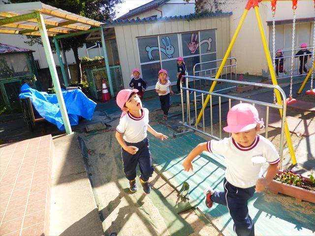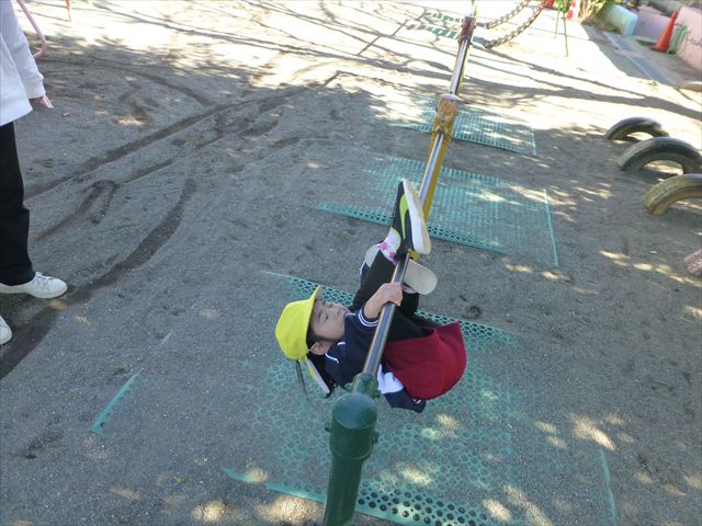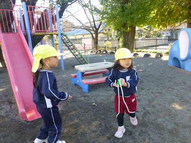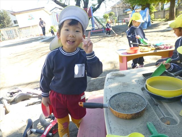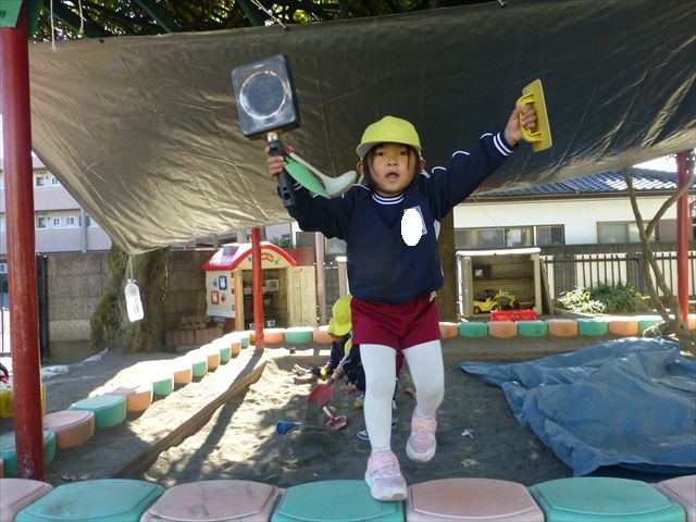 今日は朝から晴れ渡り、やや肌寒かったですが、子どもたちが活動するには丁度良い天候でした。そんな快晴の空の下、子どもたちは園庭で、思い思いに自分のやりたい遊びを存分に楽しみました!まる!ヘ(^o^)/
