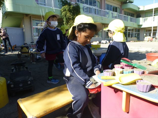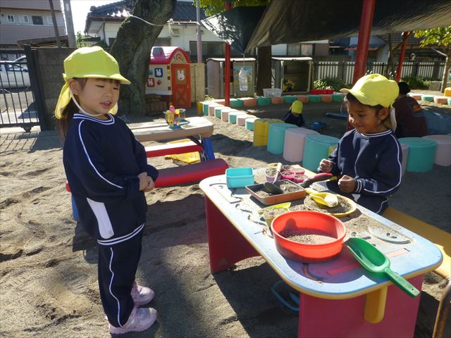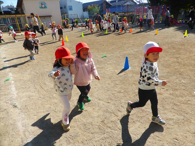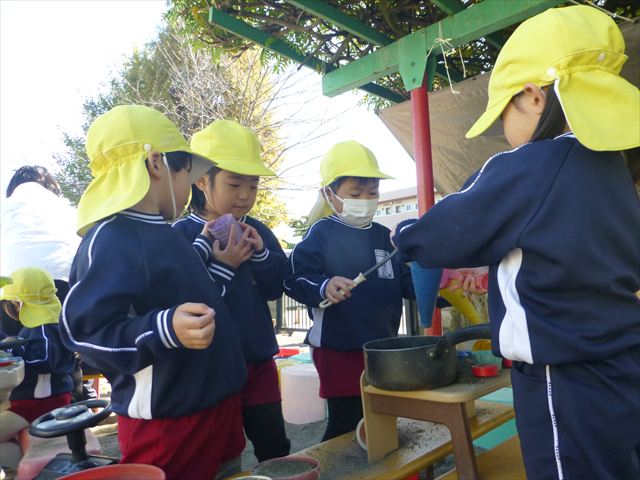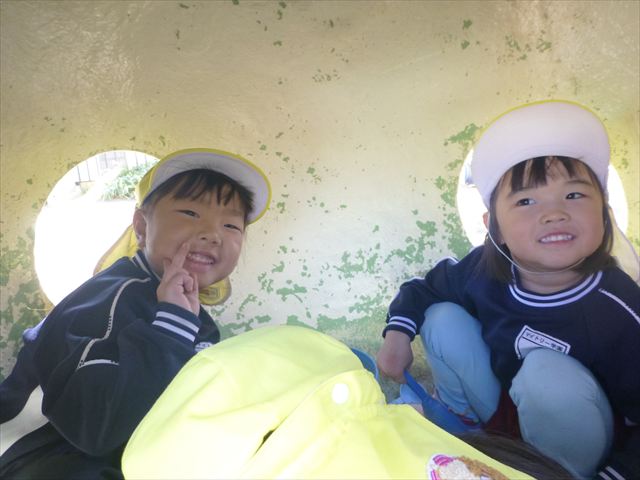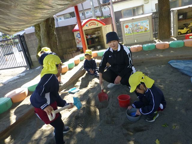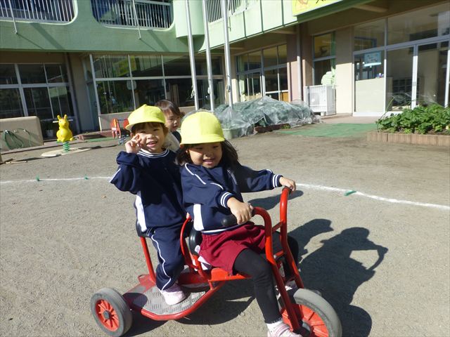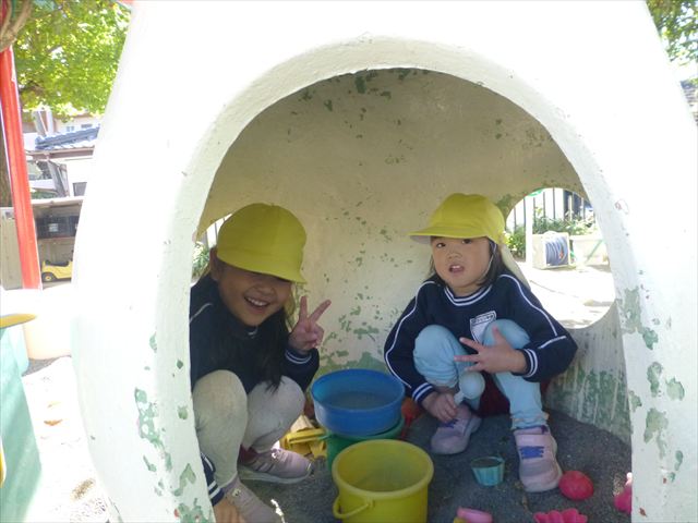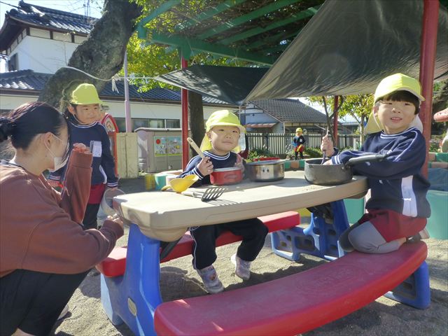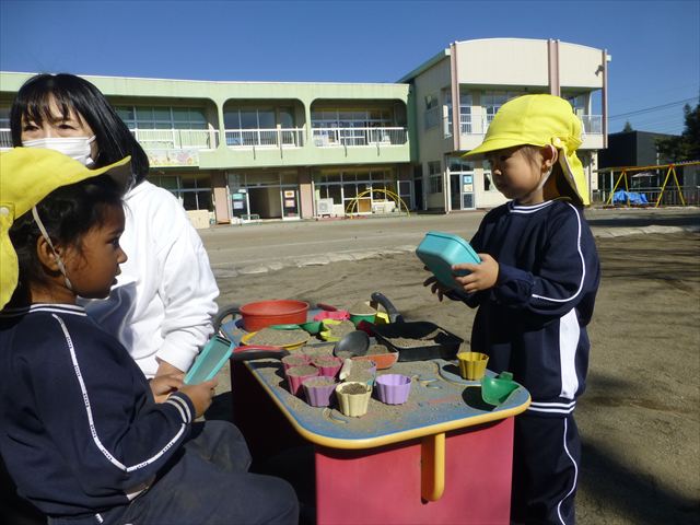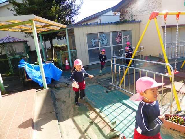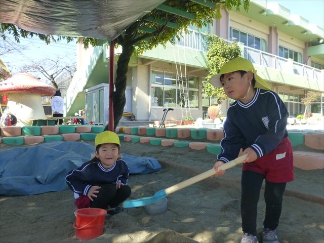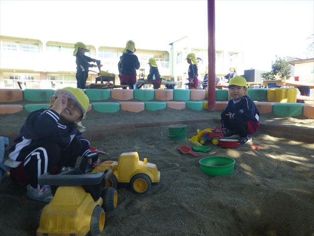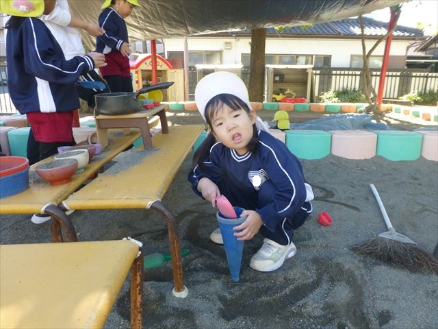 今日は朝から晴れ渡り、やや肌寒かったですが、子どもたちが活動するには丁度良い天候でした。そんな快晴の空の下、子どもたちは園庭で、思い思いに自分のやりたい遊びを存分に楽しみました!まる!ヘ(^o^)/