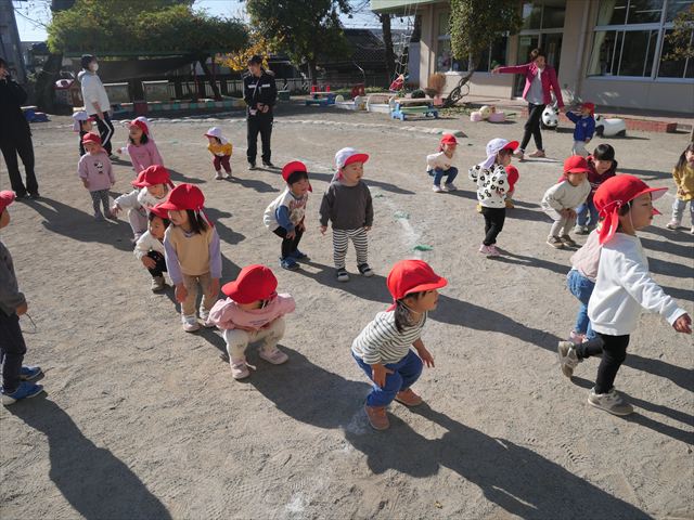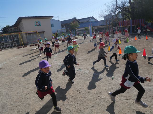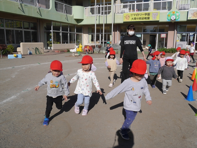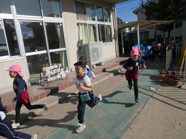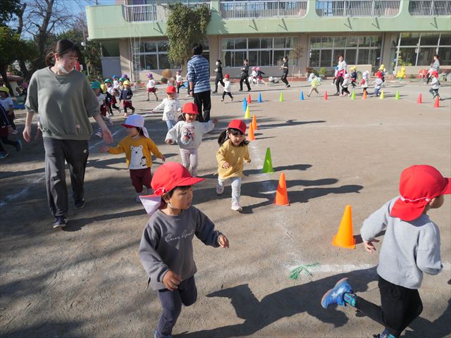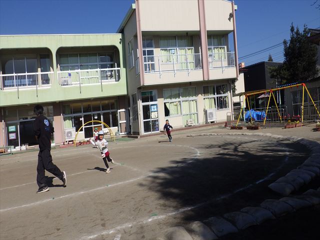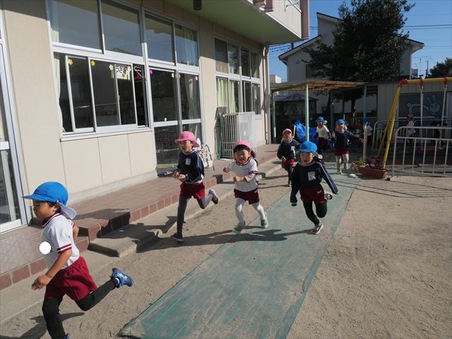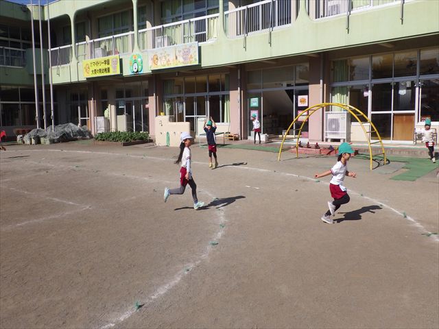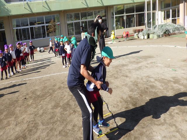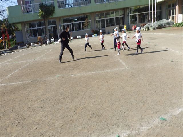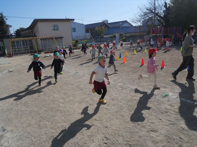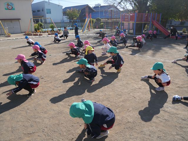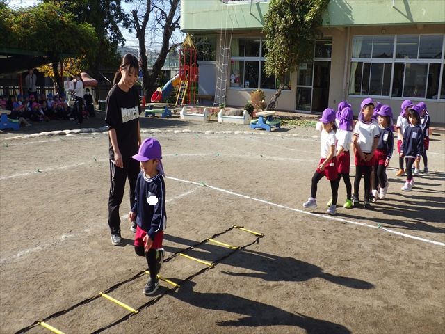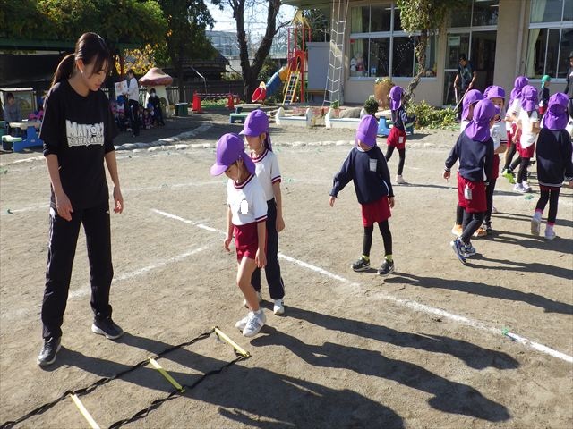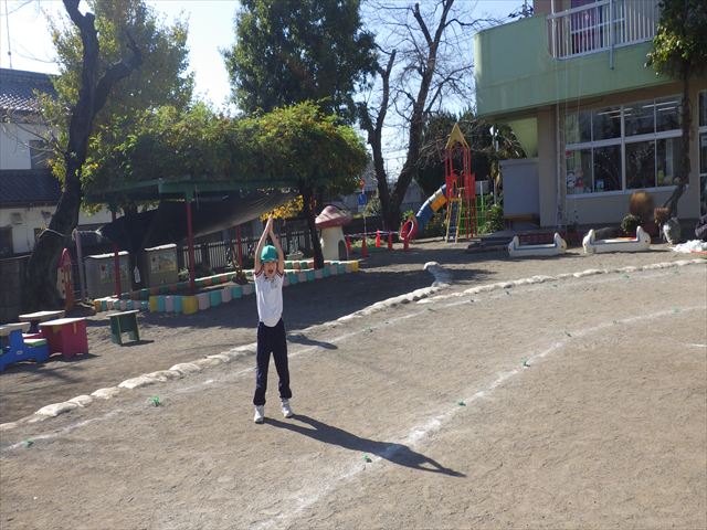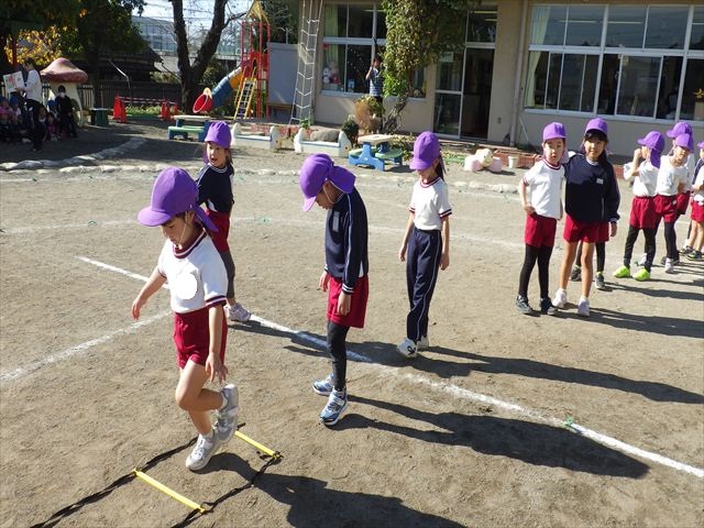 朝のマラソンの後は、ラダーをしました。サーキットのラダーではケンパやジャンプをすることが多いですが、今日の体育の時間では、横を向いて両足でジャンプしたり、手で頭や肩を触りながらジャンプをしたり、色々な跳び方で楽しみました♪何回か飛んでみるとだんだんできるようになり、難しい跳び方も一生懸命チャレンジしていました!
