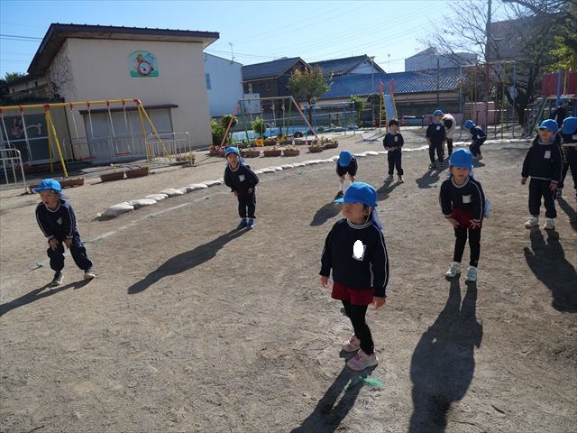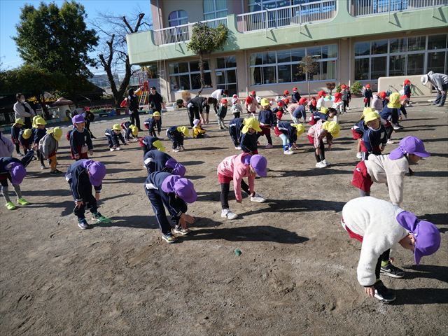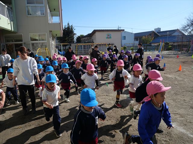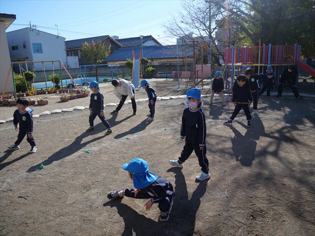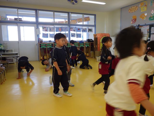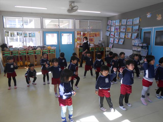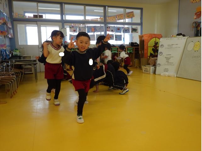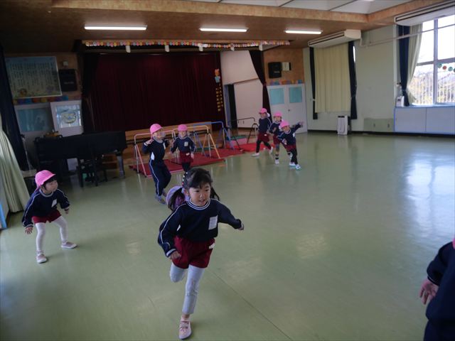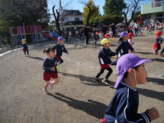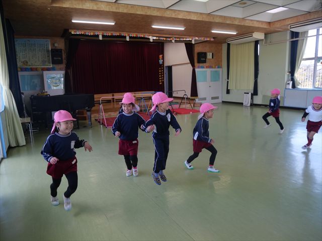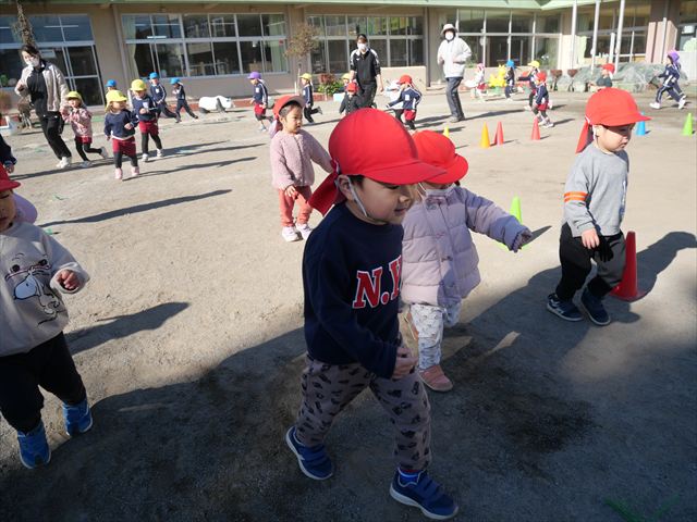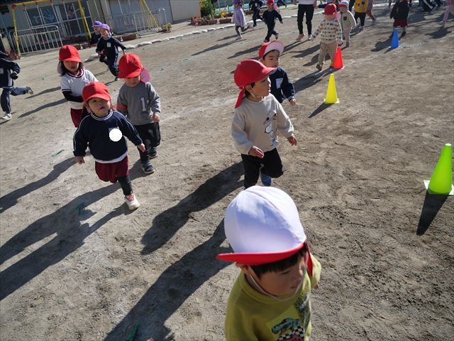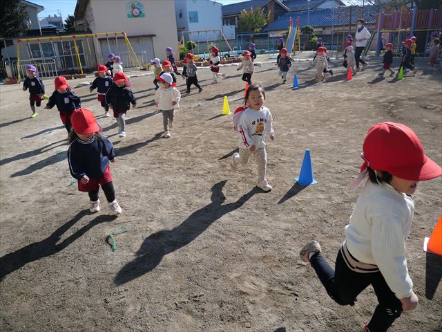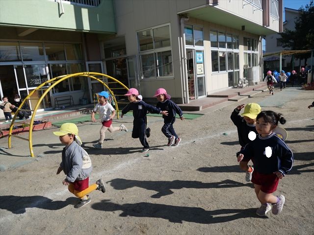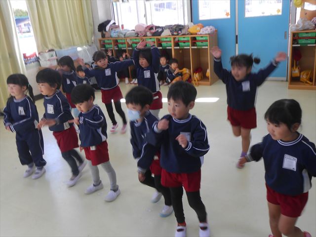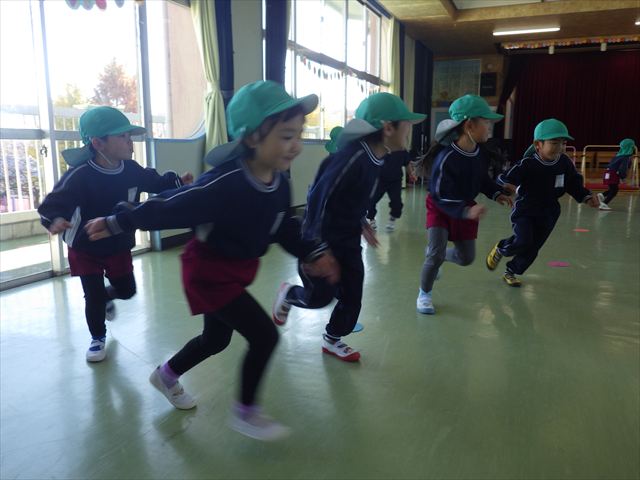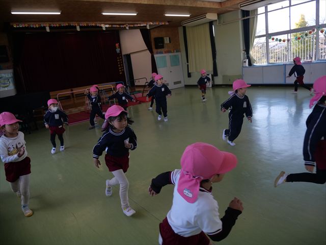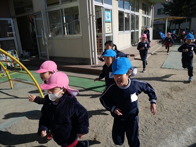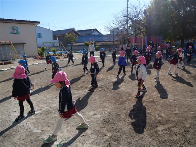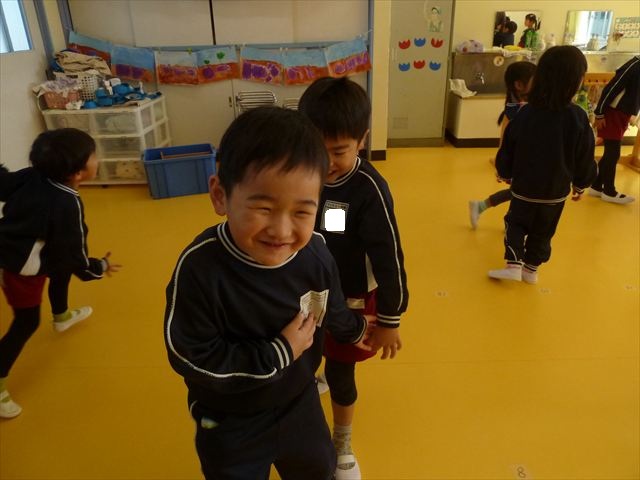 今日はとても寒い中でしたが、朝から元気に体操とマラソンが行われました!一生懸命走ると身体が暖かくなってくるということで走り始める前に長袖を脱ぐ子もいて気合十分な様子でした!今日もよく頑張りました!