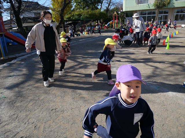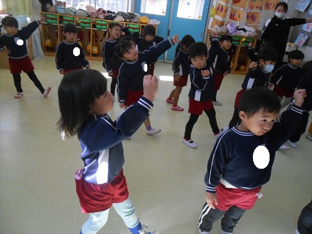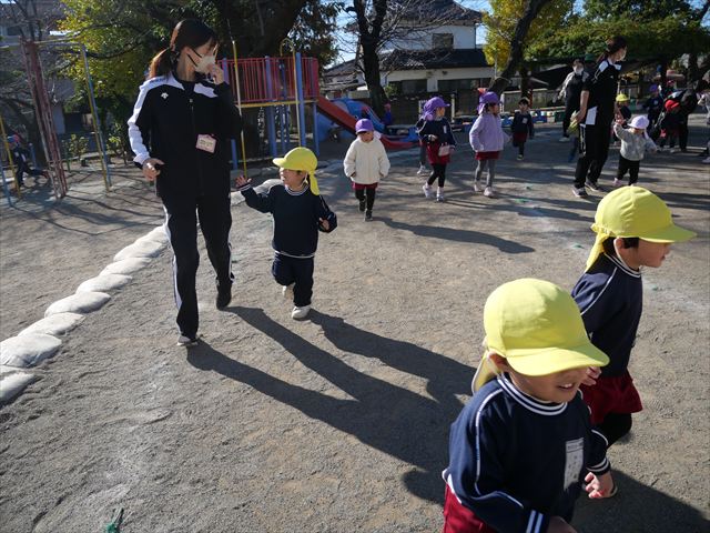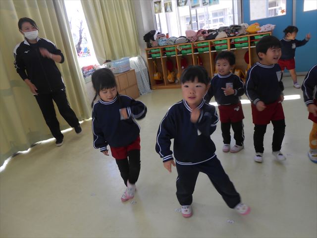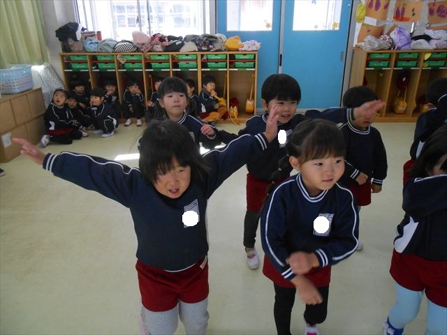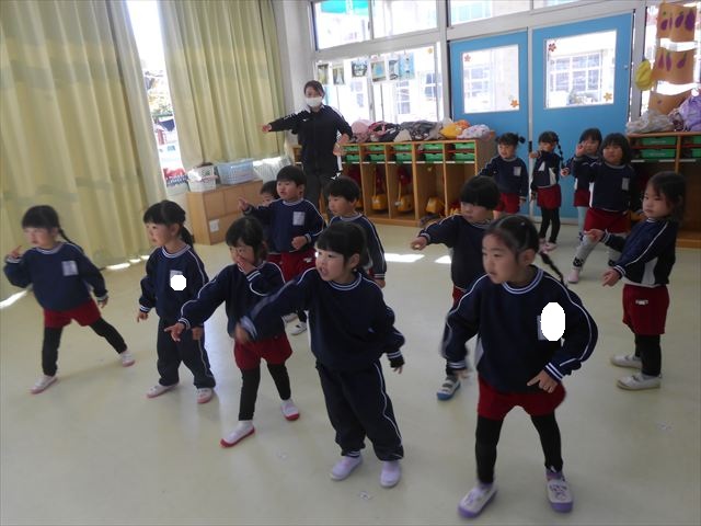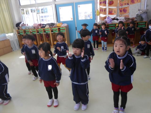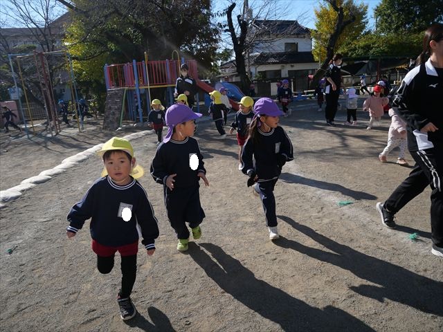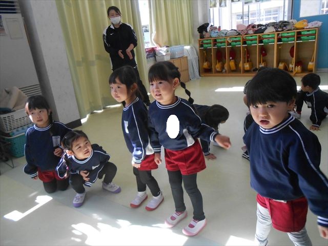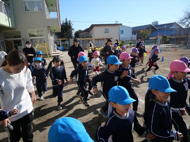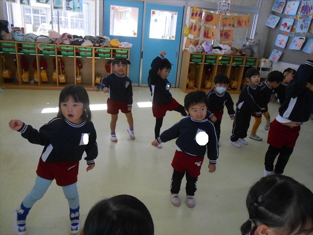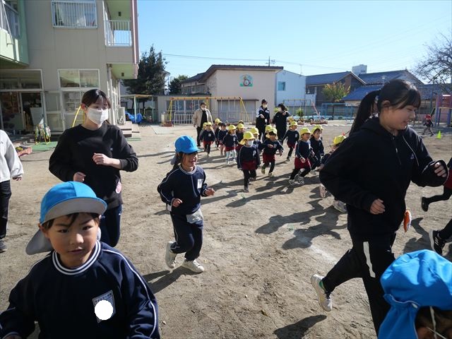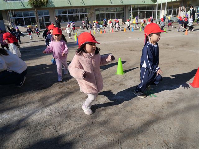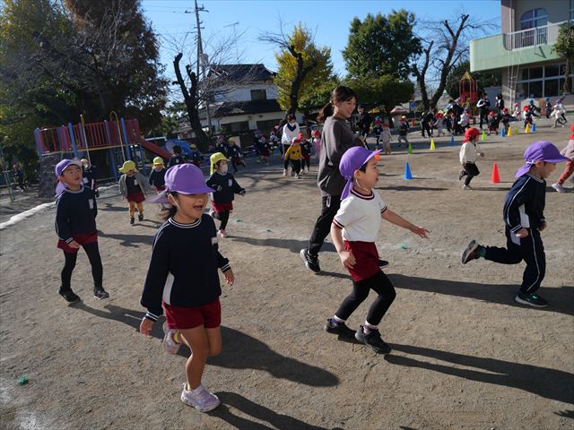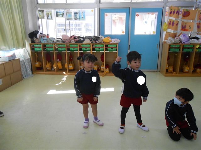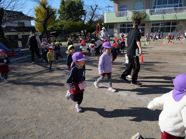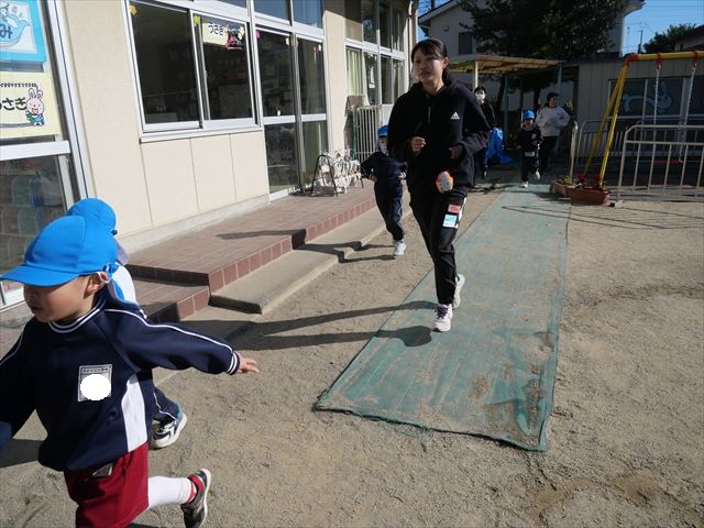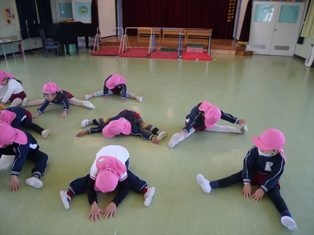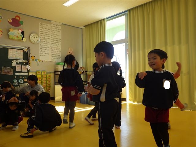 今日はとても寒い中でしたが、朝から元気に体操とマラソンが行われました!一生懸命走ると身体が暖かくなってくるということで走り始める前に長袖を脱ぐ子もいて気合十分な様子でした!今日もよく頑張りました!
