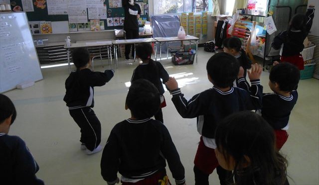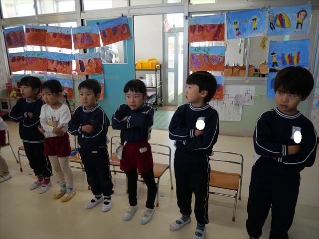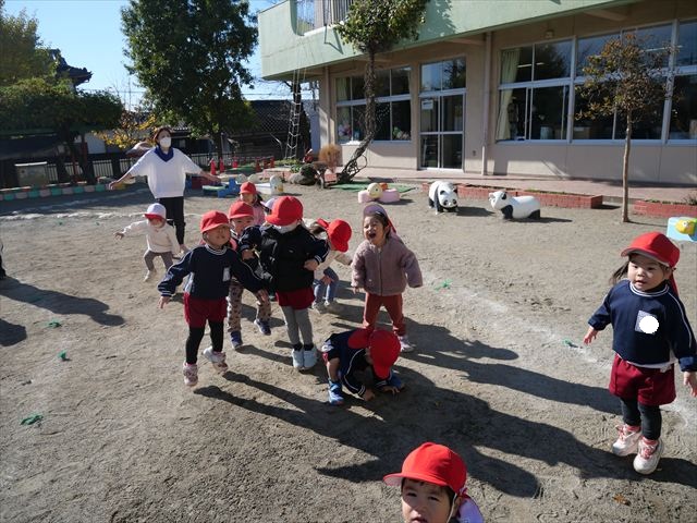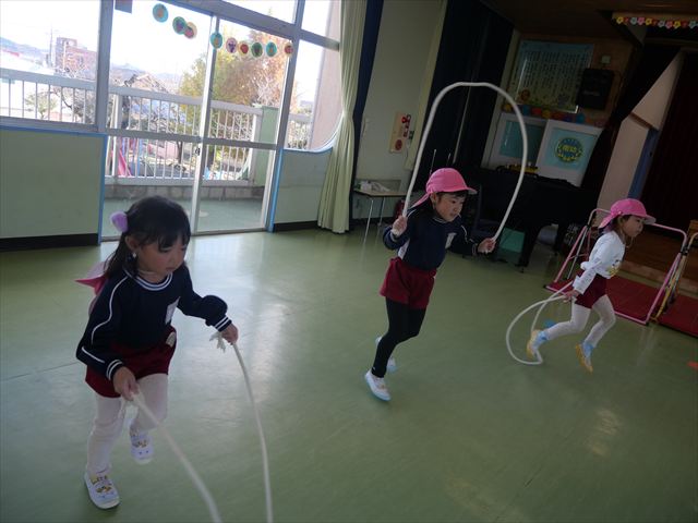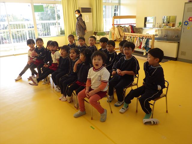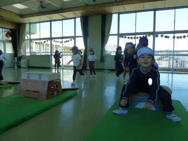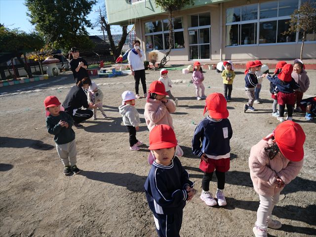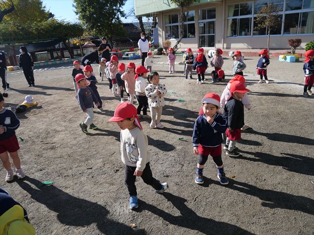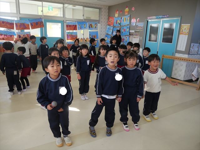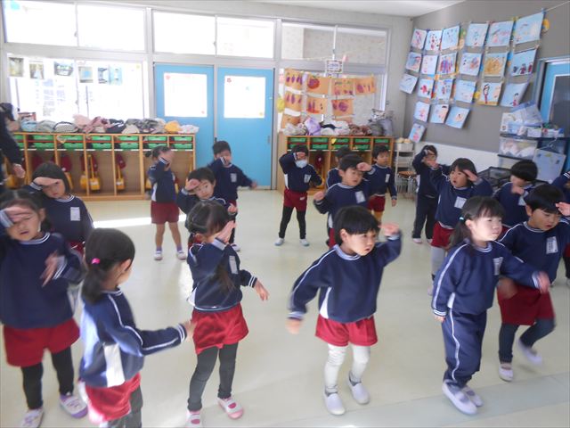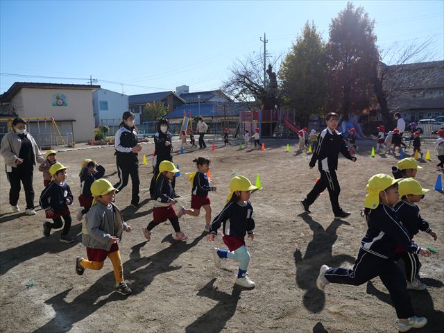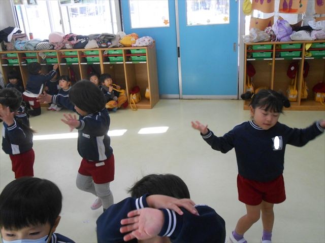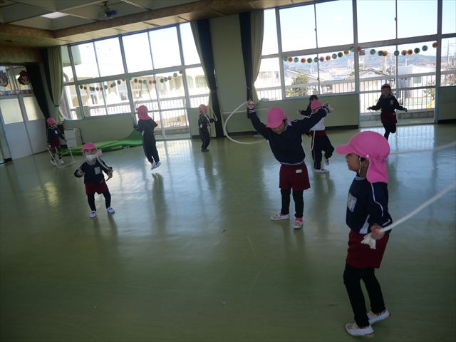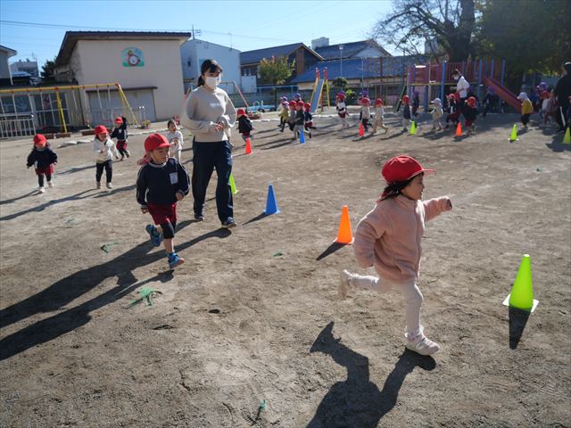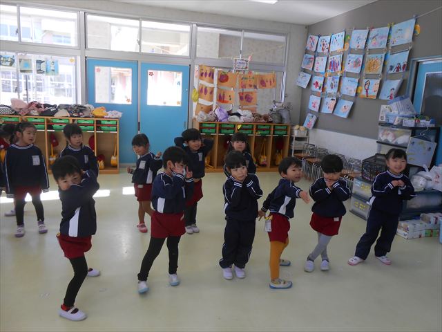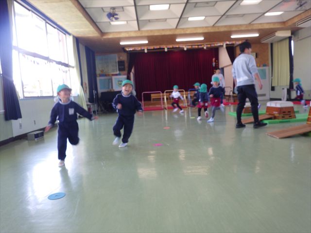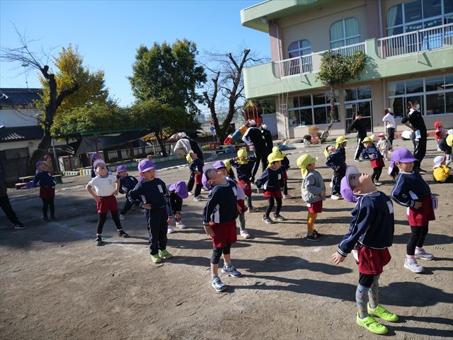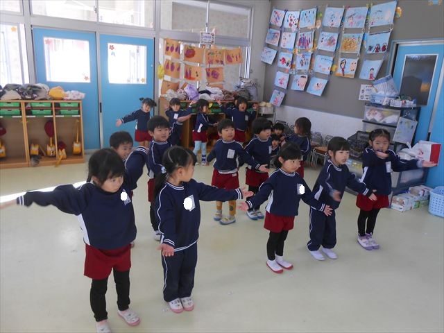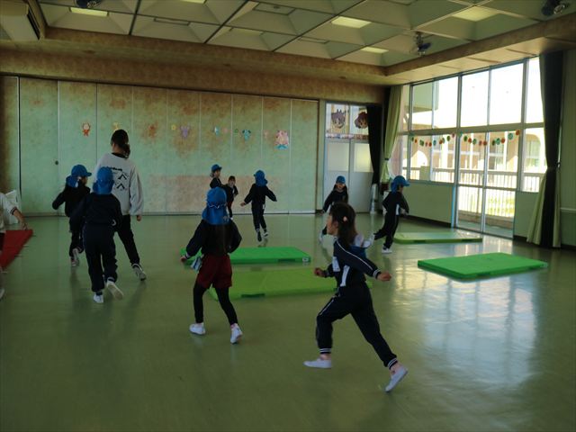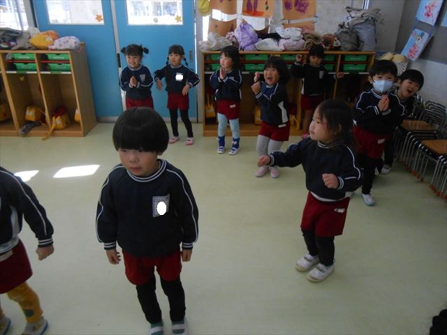 今日はとても寒い中でしたが、朝から元気に体操とマラソンが行われました!一生懸命走ると身体が暖かくなってくるということで走り始める前に長袖を脱ぐ子もいて気合十分な様子でした!今日もよく頑張りました!