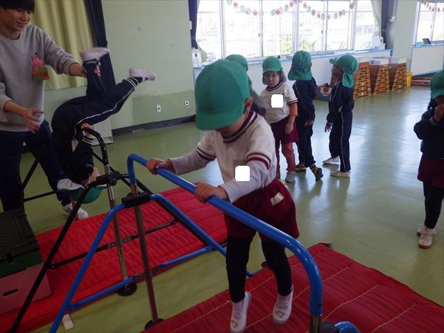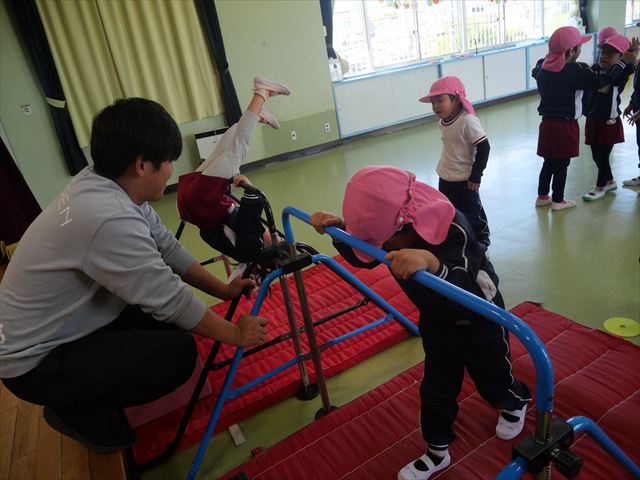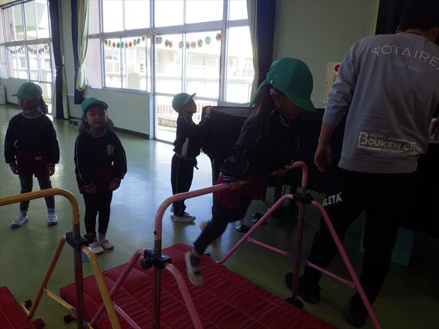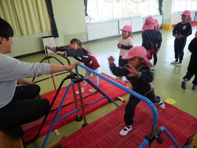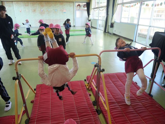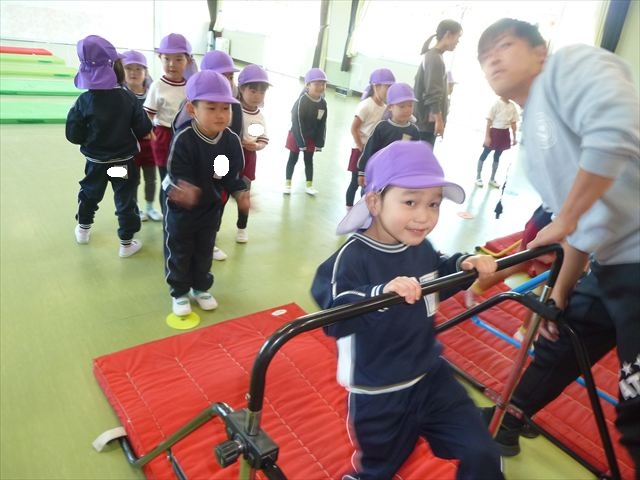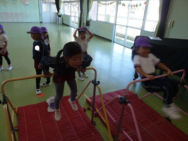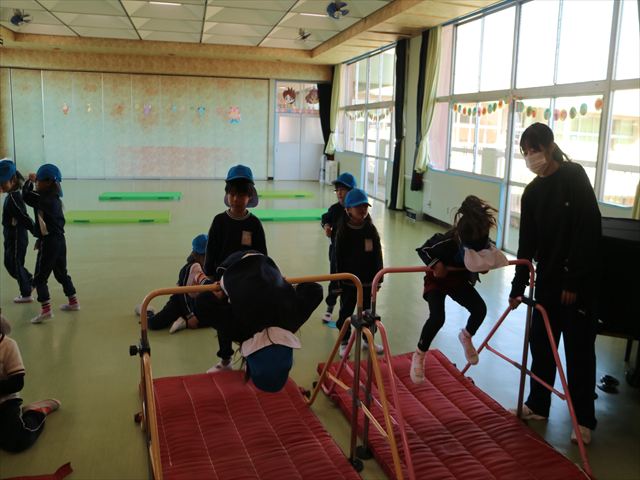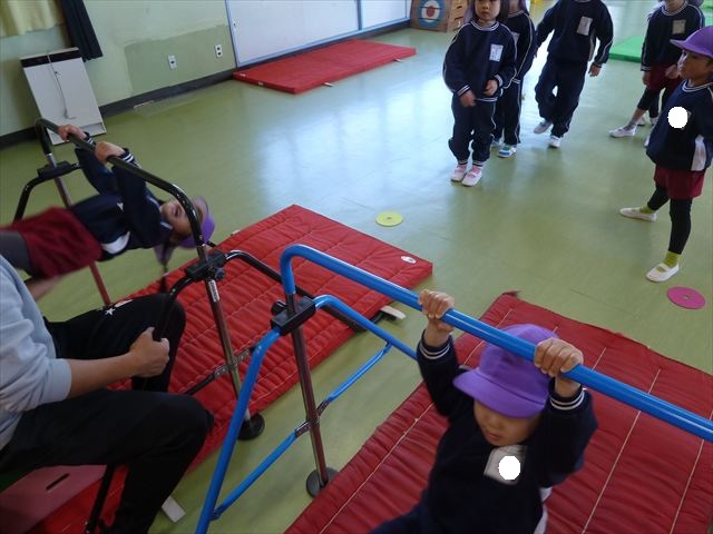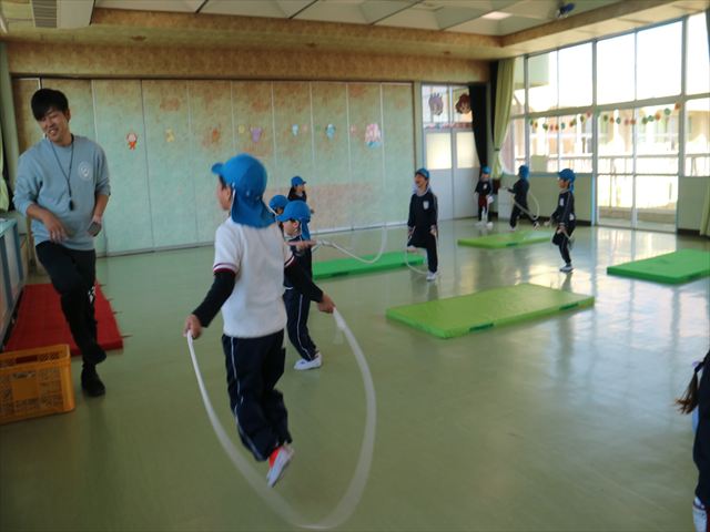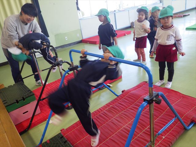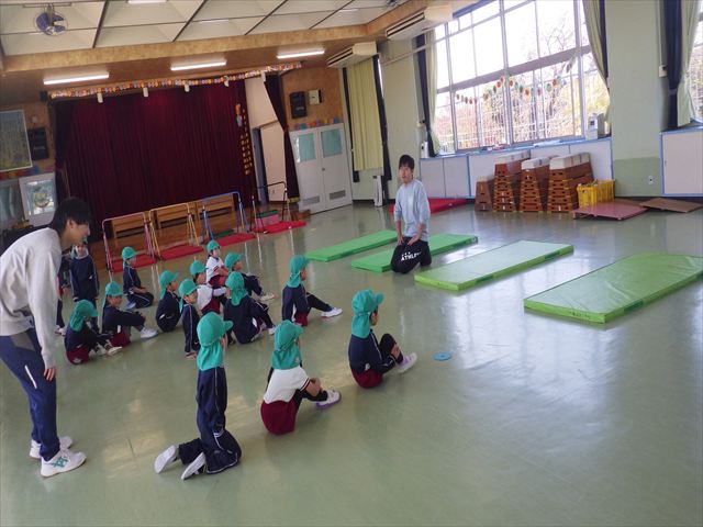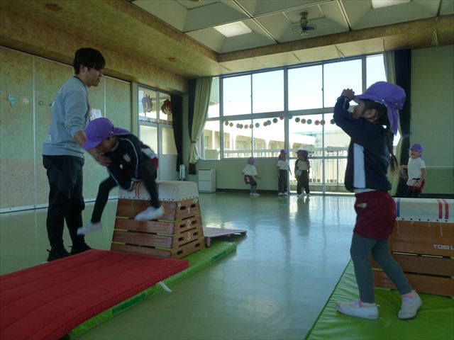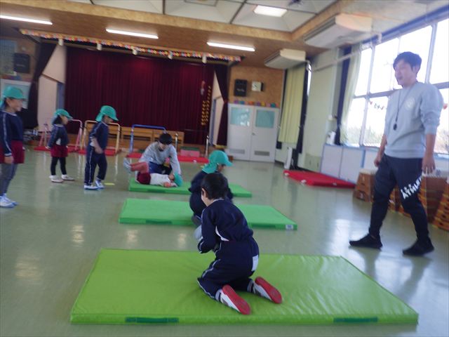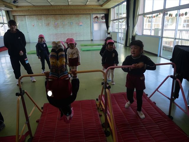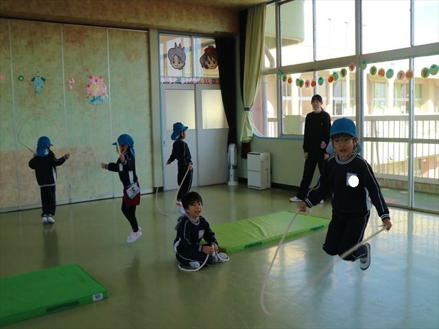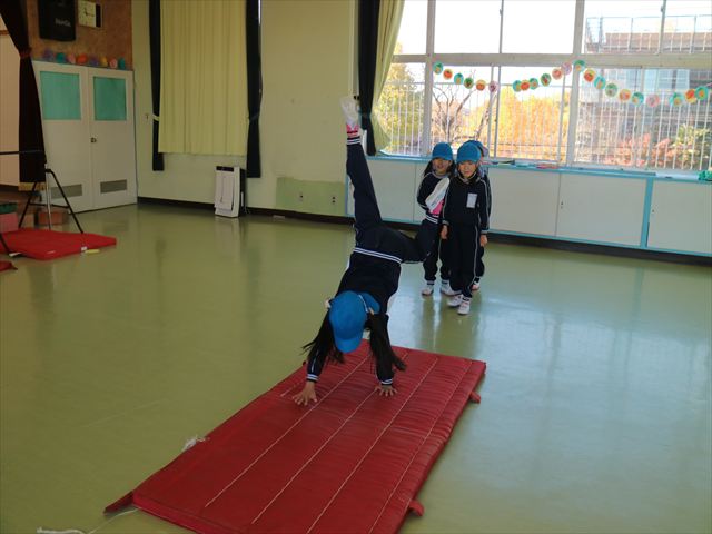 運動教室では三点倒立、鉄棒、縄跳びの練習をしました。練習に励み、友だちの頑張りを認め応援してあげる姿も見られました☆