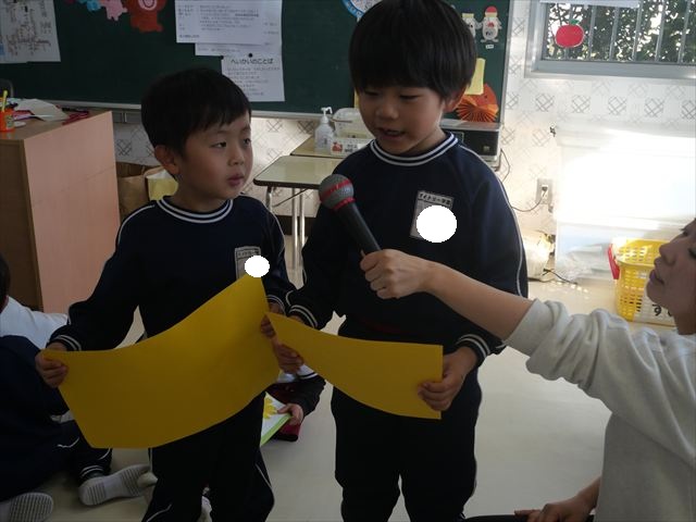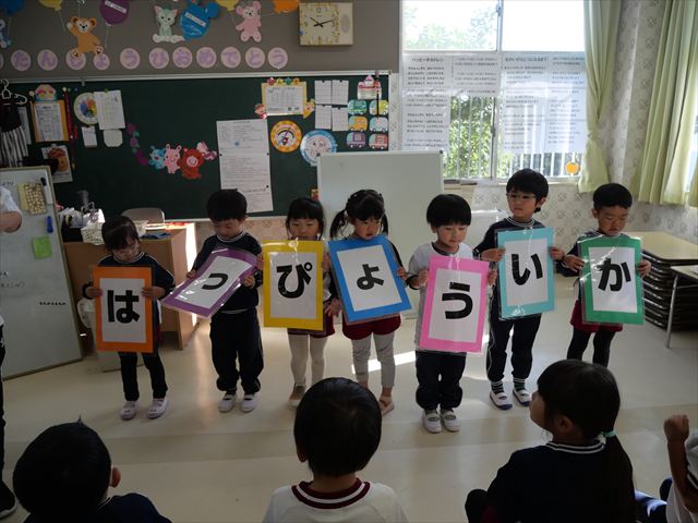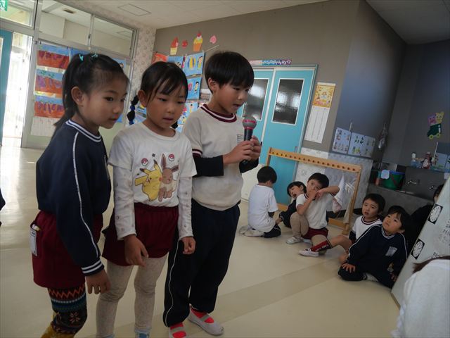 午後は誕生会出し物練習と発表会の練習をしました。誕生会は代表のお友だちがヒントを出すクイズをします。また発表会の練習では歌の練習と、司会の子を決めて全体を通しての練習を始めました。みんな自分の役割を頑張ってほしいと思います!