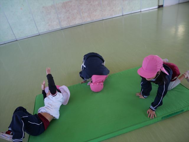 今日の運動教室は、実態調査をしました。項目は、マットの後転、鉄棒の逆上がり、跳び箱でした。ほとんどの子に上達がみられました!引き続き頑張っていきたいと思います。