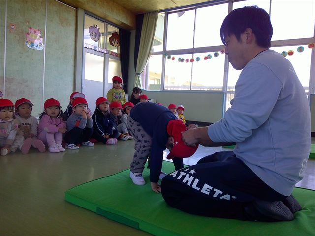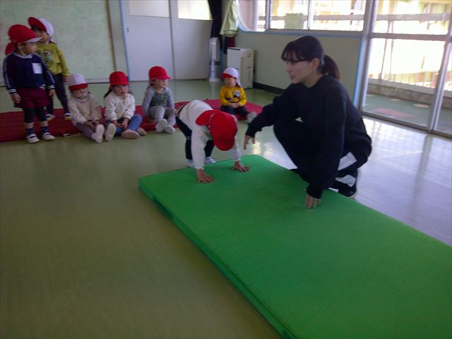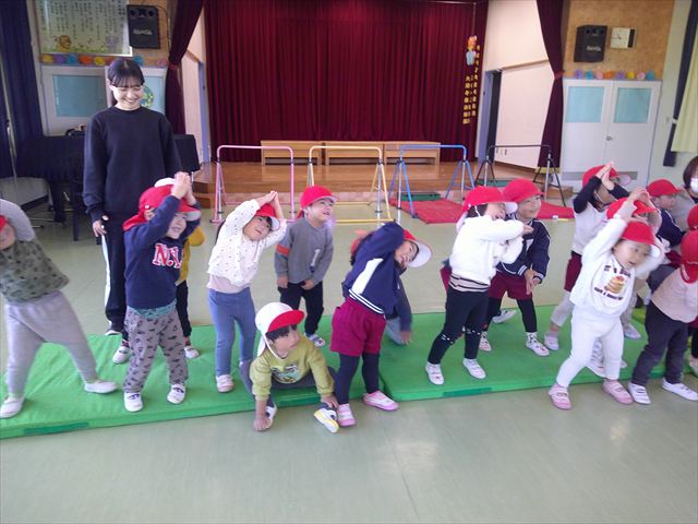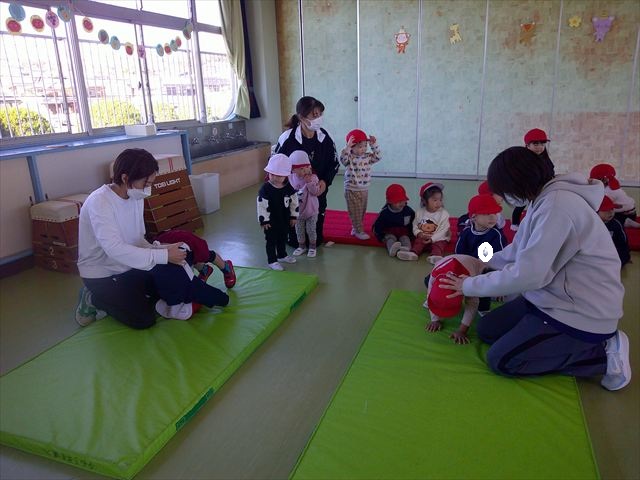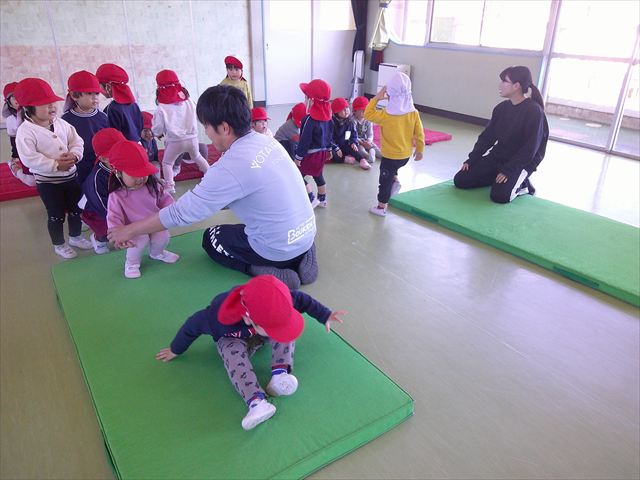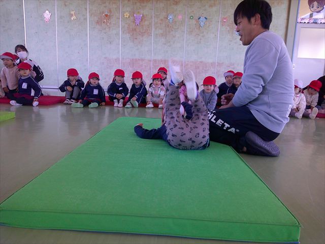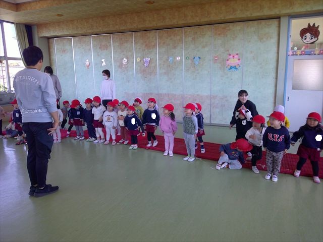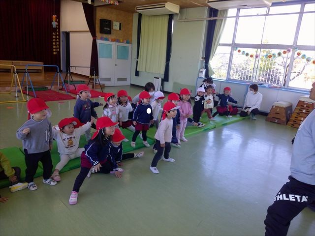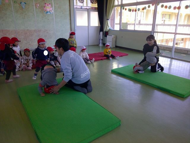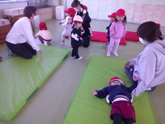 昨日はホームページが上げられず、申し訳ありませんでしたm(__)m 昨日のたんぽぽさんは、運動教室に参加しました!今回もみんな大好きなかけっこ☆ロケットやアンパンマンに変身して、反対側のマットまでかけっこしました。そして今回は、マットの前回りに挑戦しました。手と足をついて、マットを蹴って大きくジャンプ!そのままくるっと回ることができました。おうちでもマットや布団でぜひ挑戦してみてください(^O^)