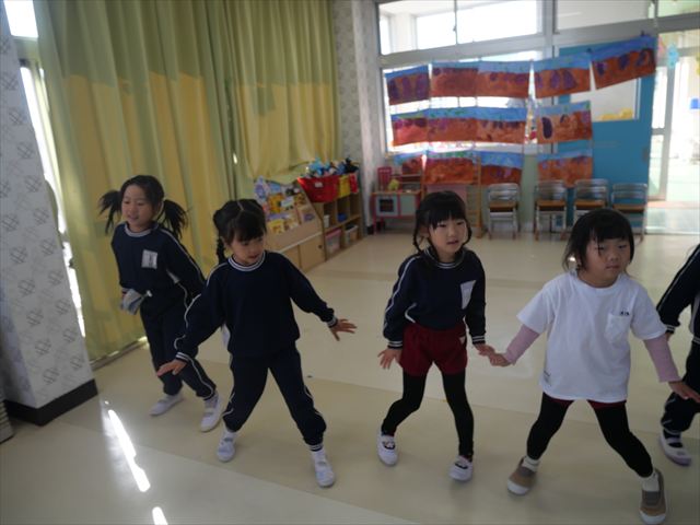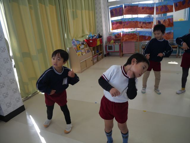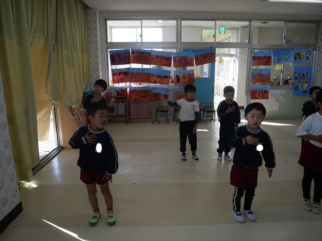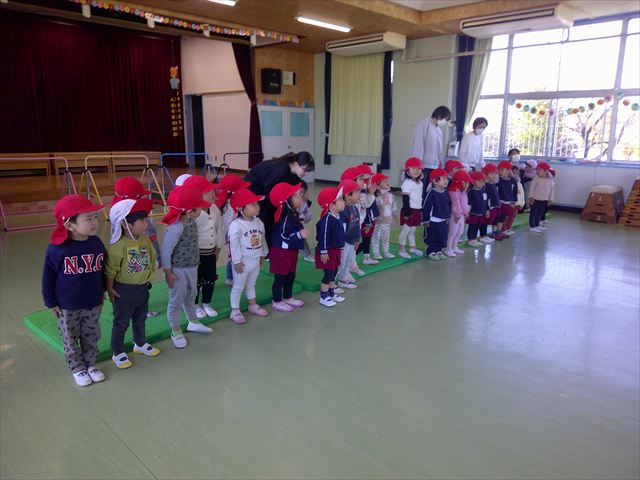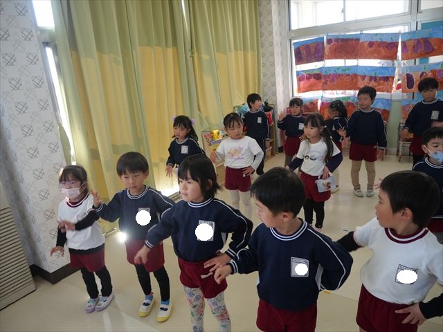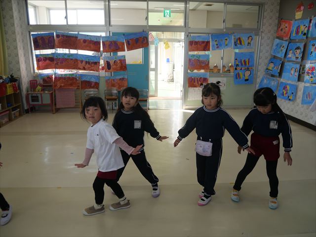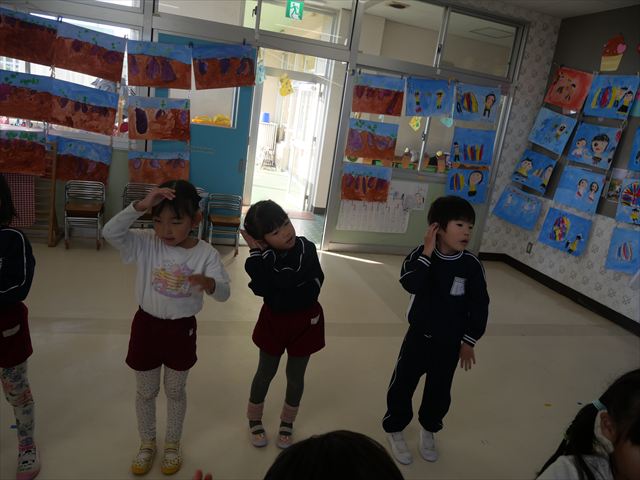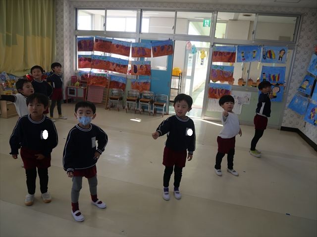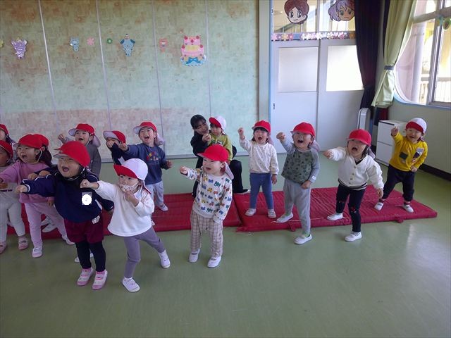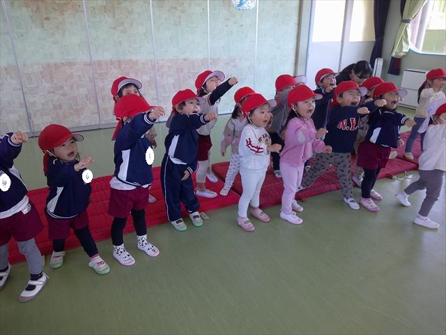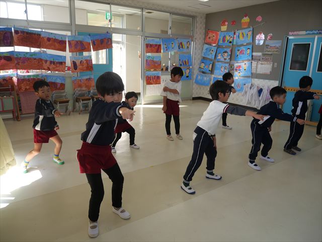 午前中誕生会に参加して、午後は遊戯室で発表会の練習を行いました。まずは来週の予行練習に向けて日々頑張っています。だんだん仕上がって来ていて子どもたちも「これならいけるんじゃないか。」と感じ始めているように思います!