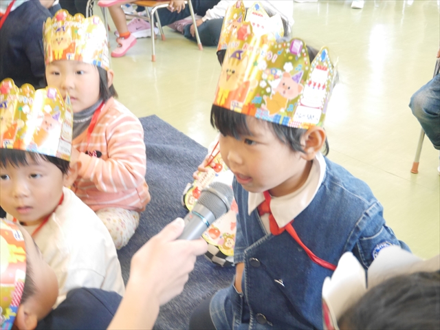 そして今日は、誕生会に参加しました。誕生児のお友だちは、自信を持って堂々と自己紹介してくれました!お客さんのお友だちも、拍手で盛り上げてくれてありがとう!残すは12・1・2・3月の第4回誕生会です。練習頑張るぞ☆ ※写真は誕生会の記事をご覧ください。