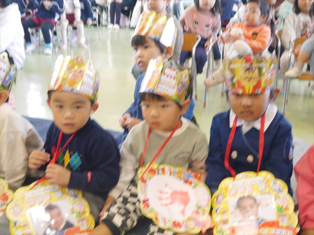 今日は、10時30分から遊戯室で、「第3回誕生会」が行われました。今回は9,10,11月生まれのお友達34名が誕生日を迎え、みんなにお祝いをしてもらいまいした。みんな一つ大きくなりました!(^^)! おめでとうございます♪先生方も、あまりうれしくないようですが・・・3名の先生方が誕生日を迎え、一つ年を取りました (-_-;)