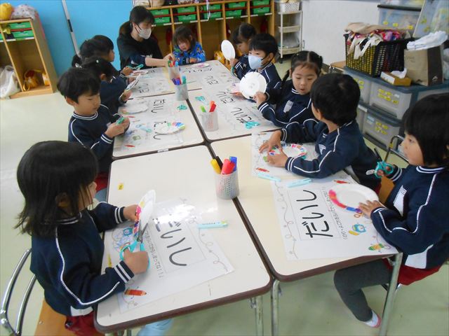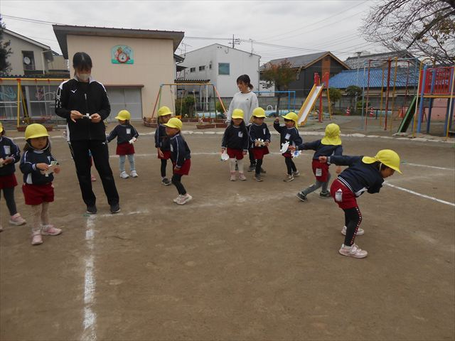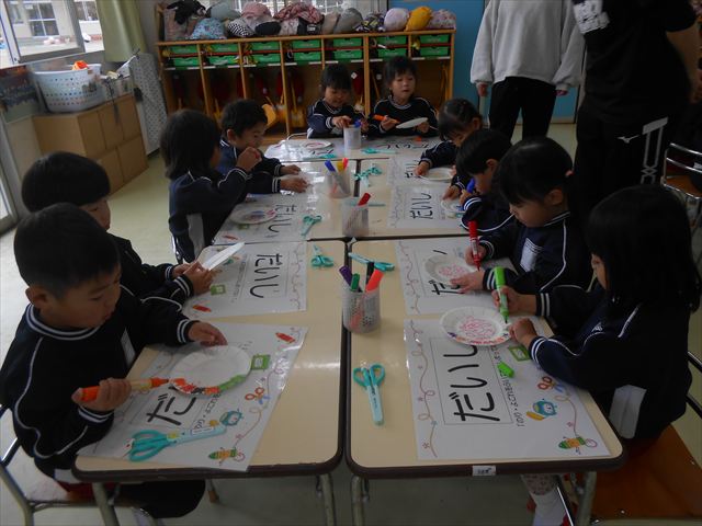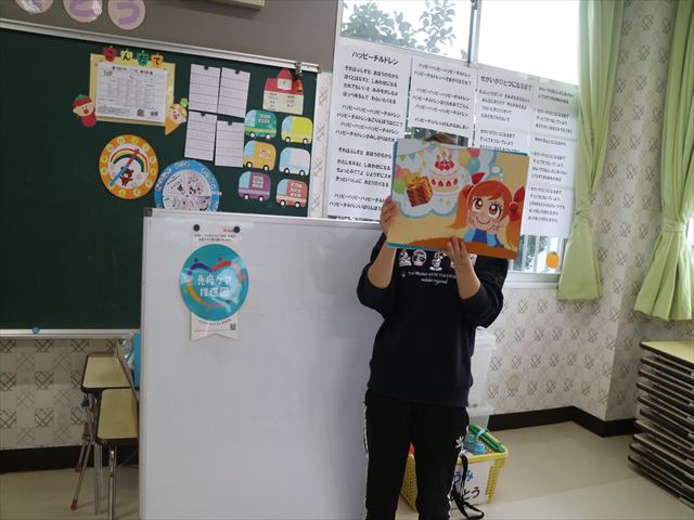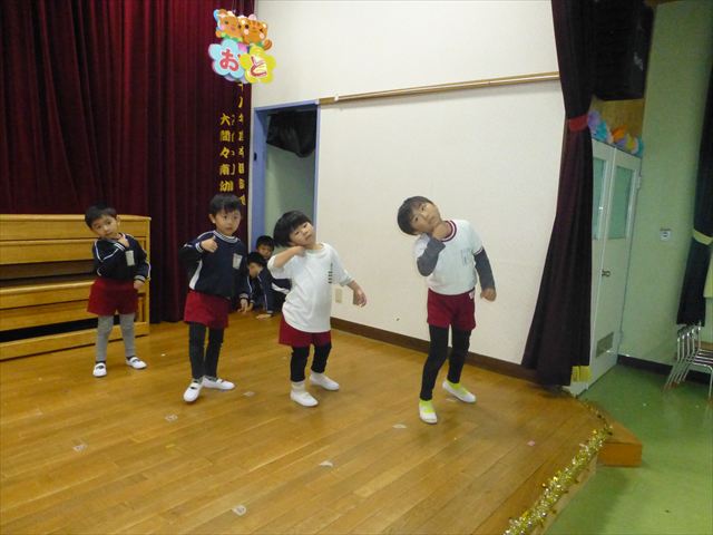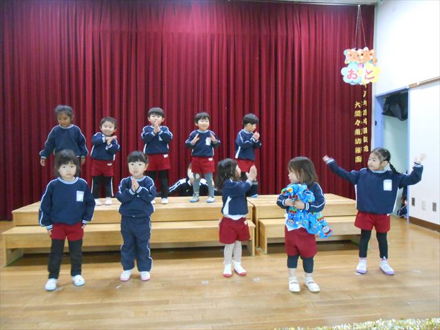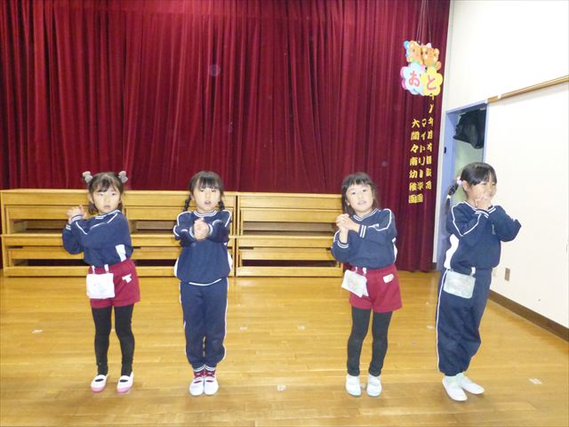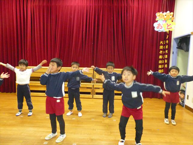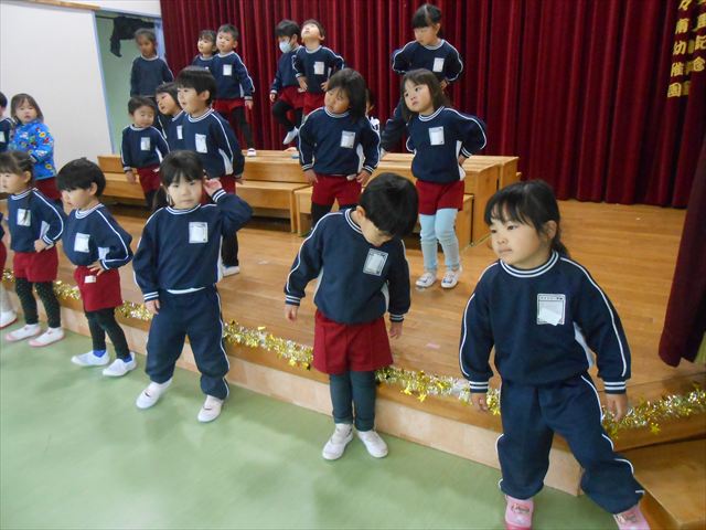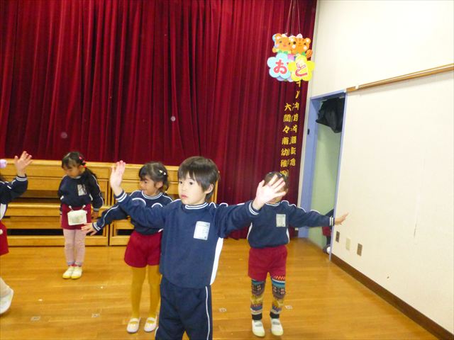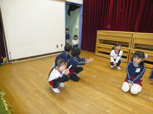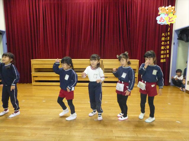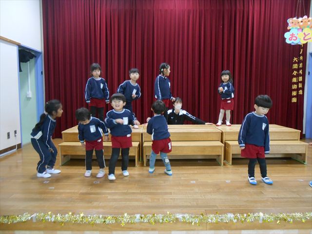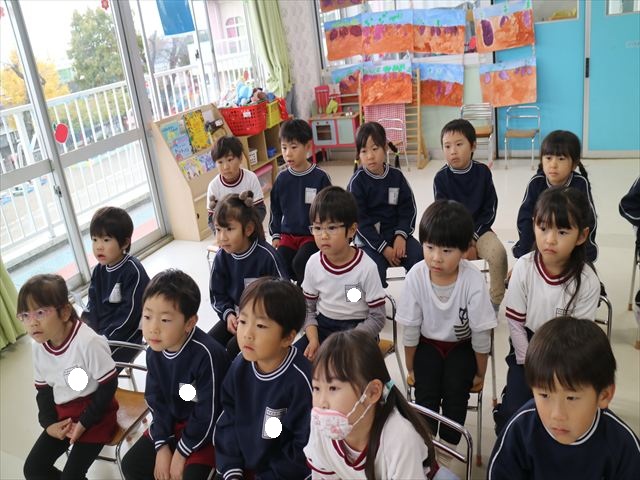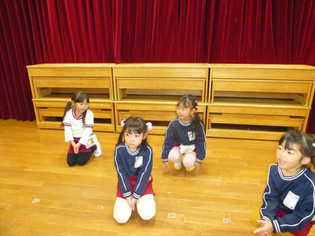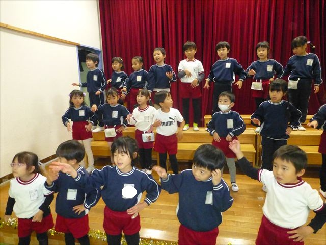 今日は(株)KIRINからいただいた紙芝居「つよいぞムテキッズ!」を読みました。大切な日に向けて免疫力を高めて、元気に過ごすために4つのパワーを身に着けようという話でした。年長さんにとって一番近い大切な日は発表会なので、発表会に向けて風邪をひかないようにムテキッズになろう!と話をしました。また毎日のミッションもあり、今日は「あしかとえびのストレッチ」をしました!みんな楽しんで取り組んでくれました。そして配布した手紙の中にミッションカードも入っていますので、ぜひお子さんと一緒におうちでも取り組んでみて下さい☆