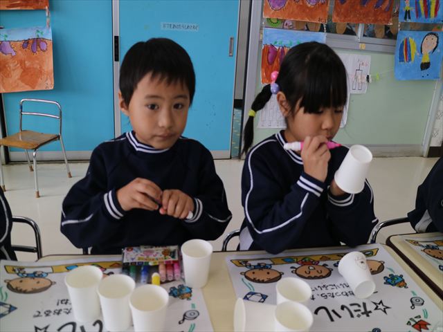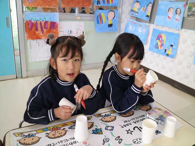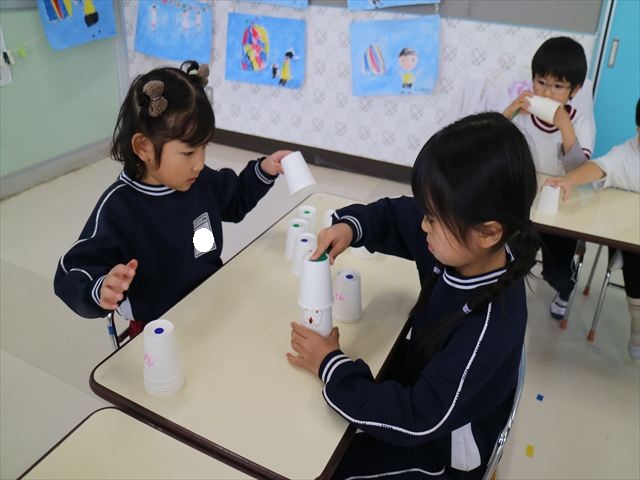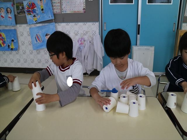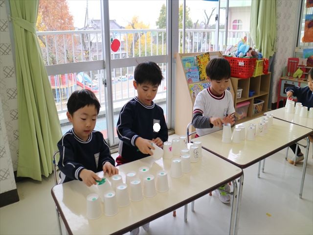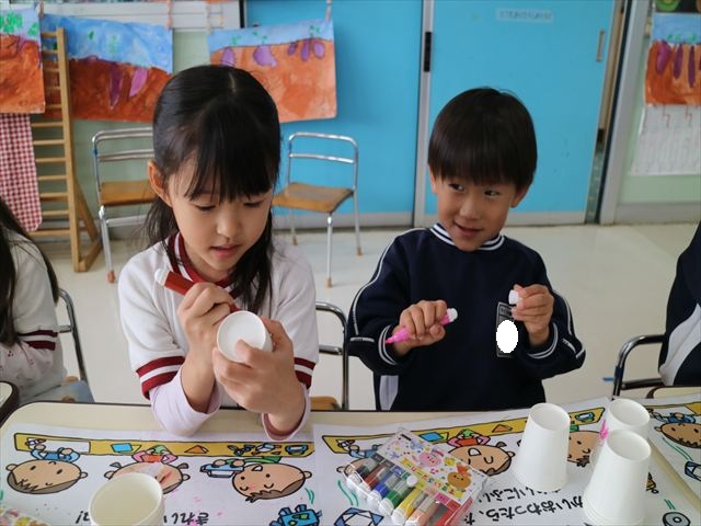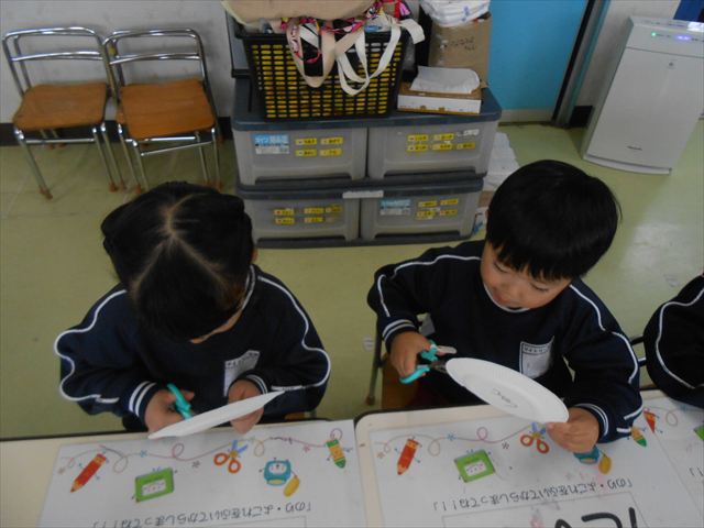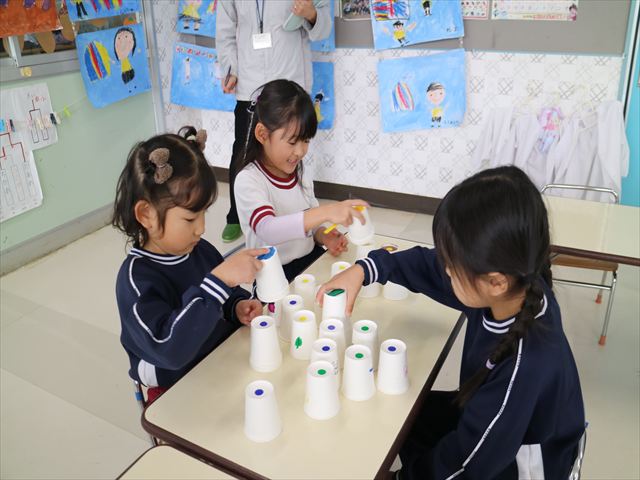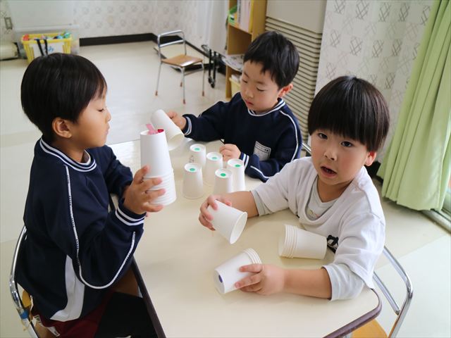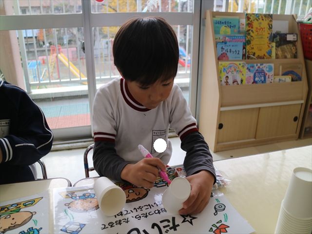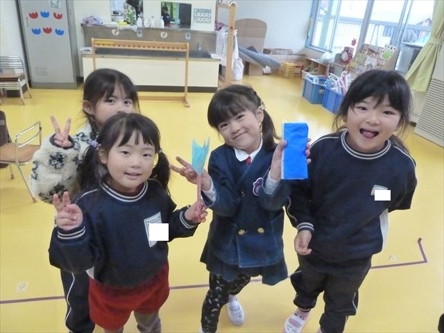 自由保育の時間を行いました。うみ組は遊べるおもちゃを作ろうと思い、紙コップでモグラ叩きを作りました。紙コップにモグラや動物の絵を描き、紙コップのハンマーで叩くという遊びでした!友だちと競争したりしながら楽しむことができました!