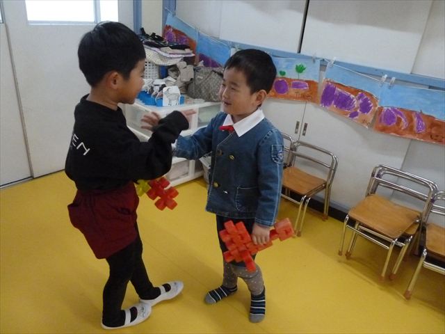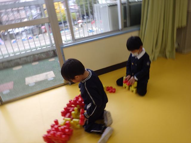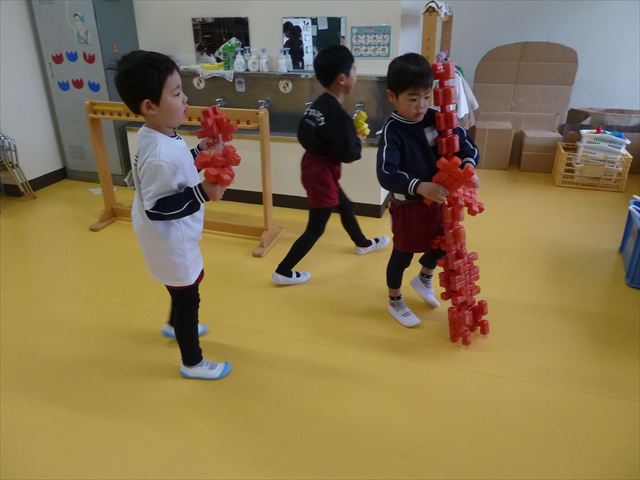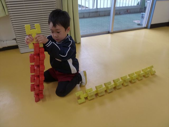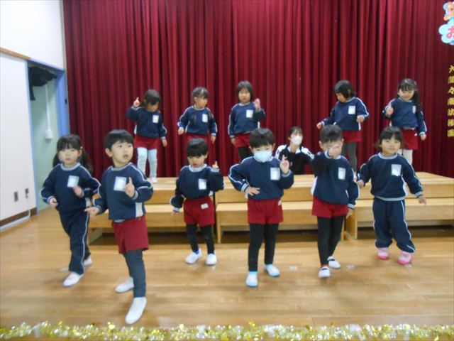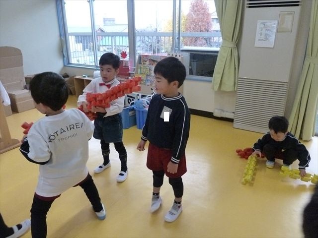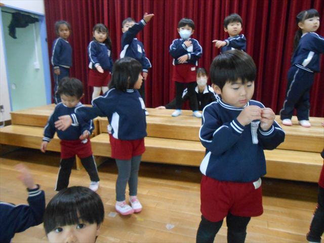 午前中遊戯室で発表会の練習を頑張り、午後は教室で好きな遊びを楽しみました!風邪をひいている子が増えてきました。手洗いうがい、消毒などしっかり行っていきたいと思います。
