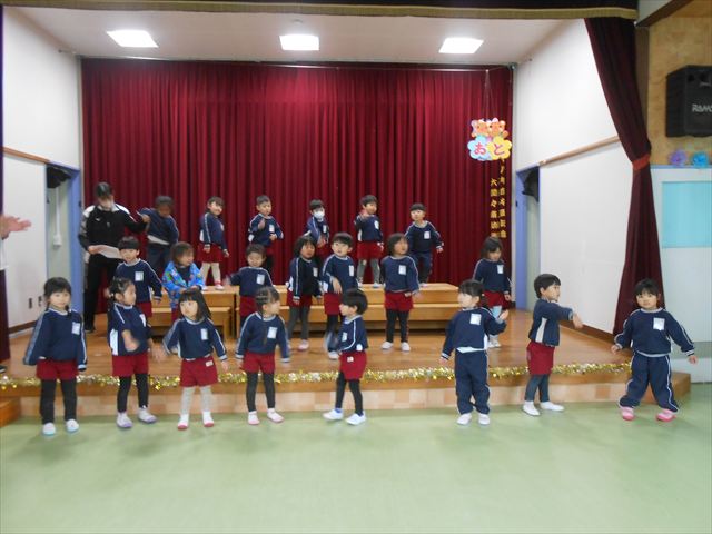 今日は、お遊戯室でダンスを入場から退場まで一通りやってみました!ステージに立つみんなはとても楽しそうで、一生懸命頑張ってくれました(^O^)お客さんのときも思わず踊ってしまうほど、ダンスが大好きなたんぽぽさん。「たのしい!」という気持ちがたくさん伝わってきて嬉しいです(