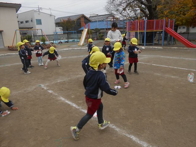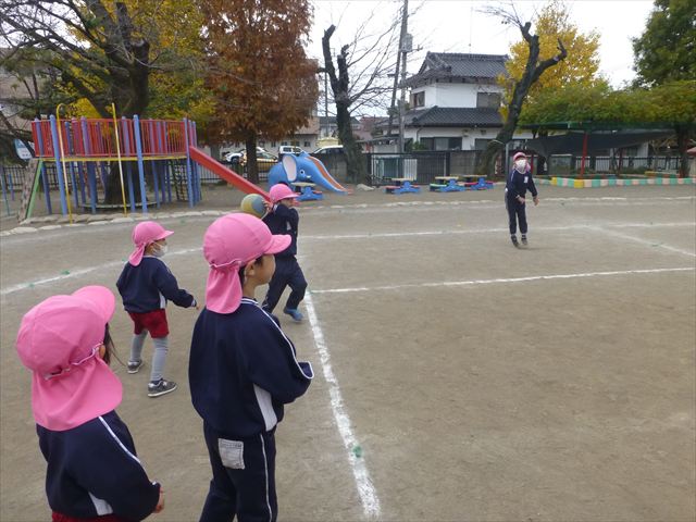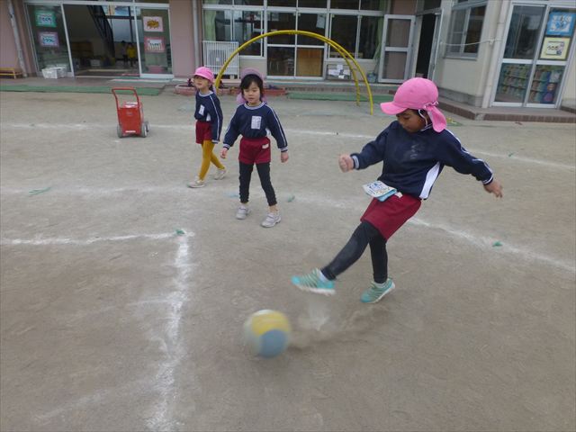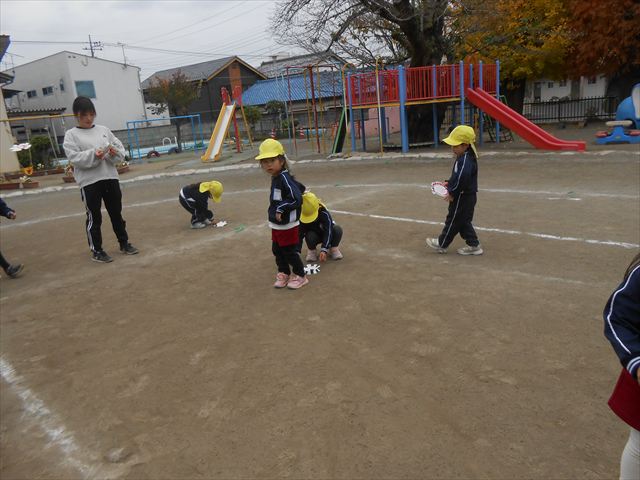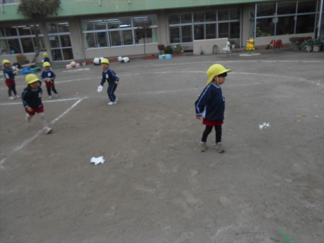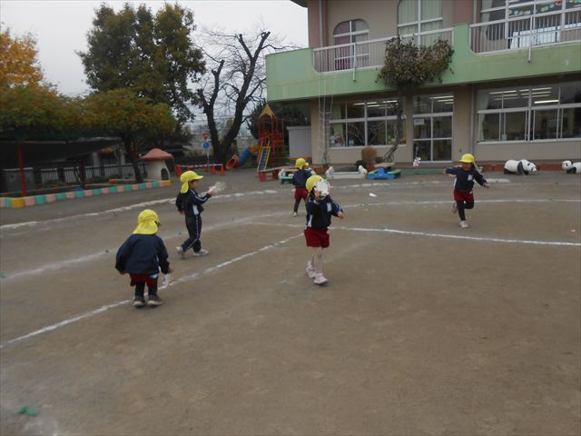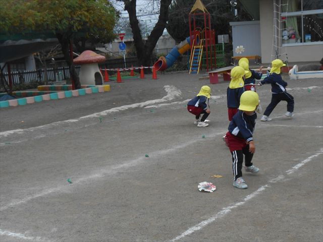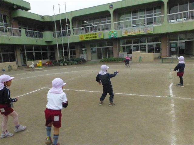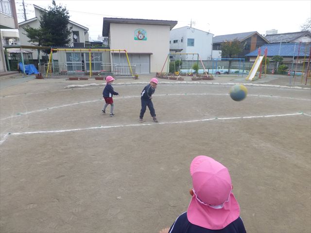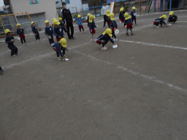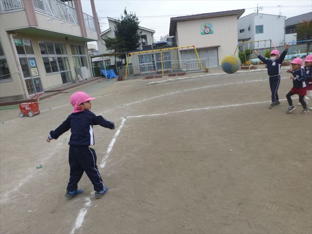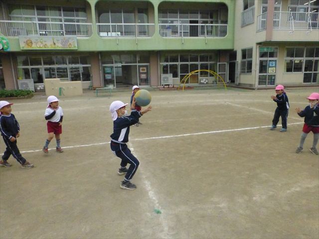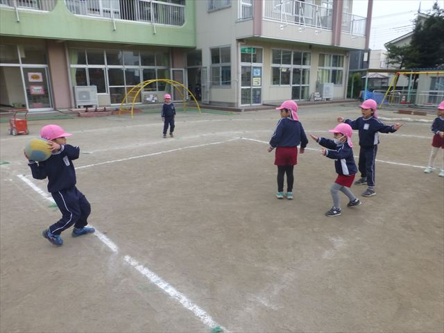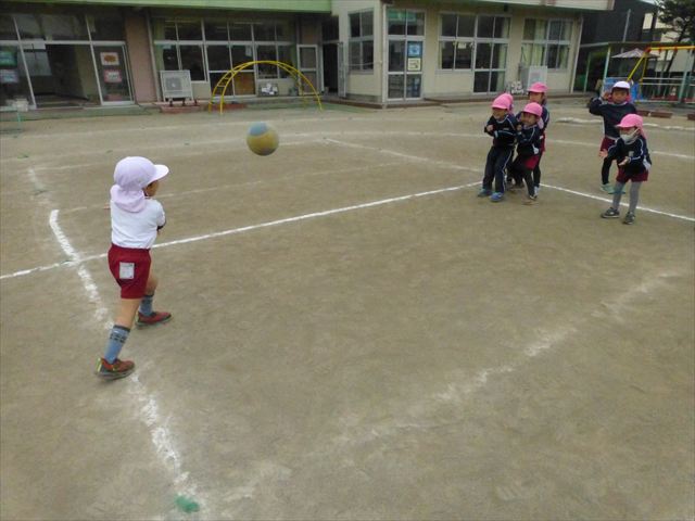 年長組になってドッジボールをすることが増えました。ですが、たいよう組は、なかなかうみ組さんに勝てなくて悔しい思いをしたり、ボールが怖かったりする子がいるように感じたので今日は「中当て」をしてボールに触れながら楽しくドッジボールの特訓をしました!最後にはクラスを二つに分けて気合を入れてドッジボールの試合をしました!投げたり、蹴ったりルールを変えながら楽しむことが出来ました!