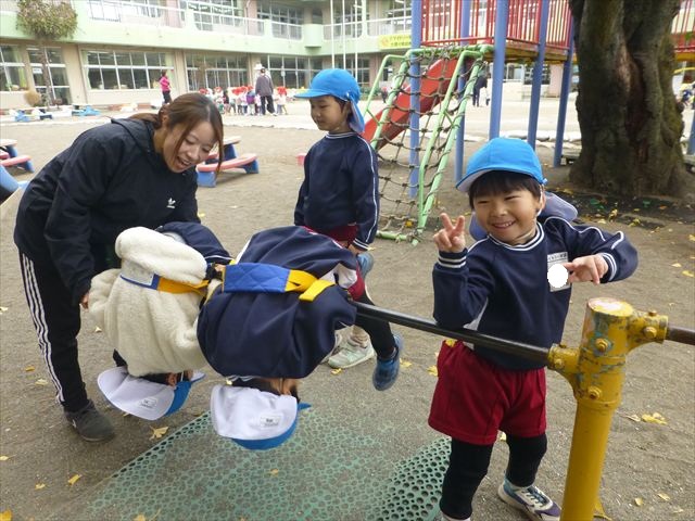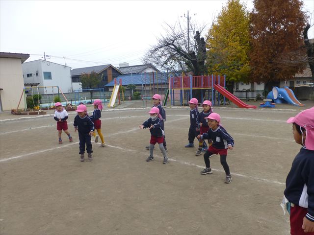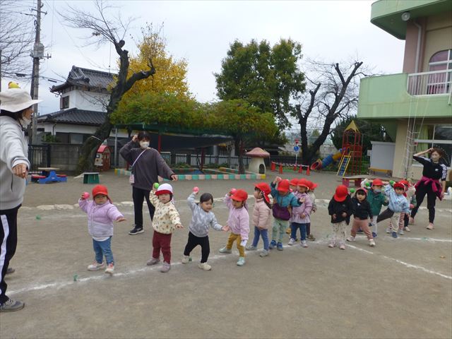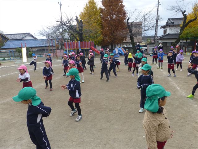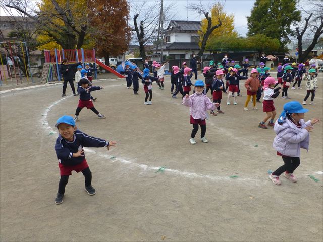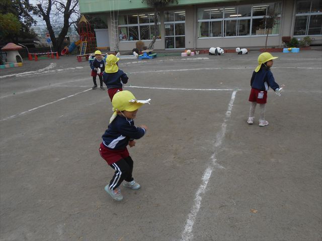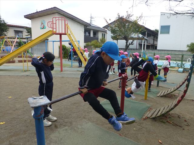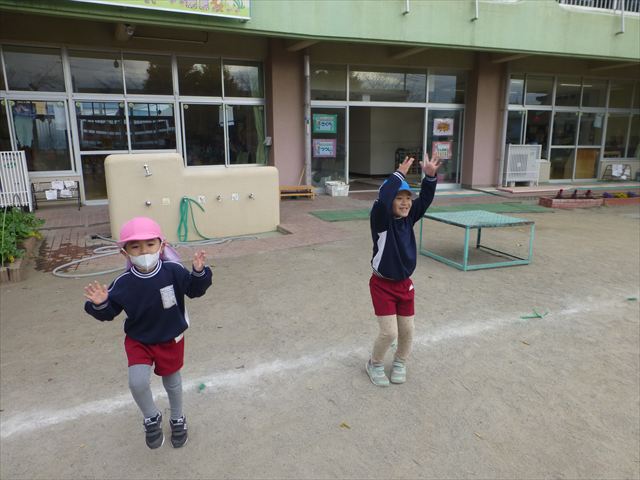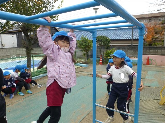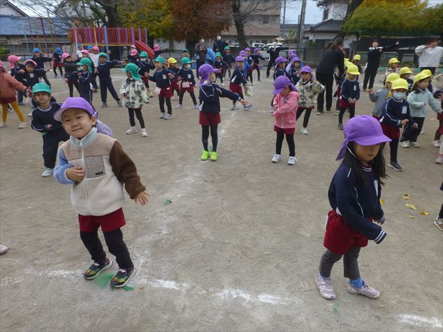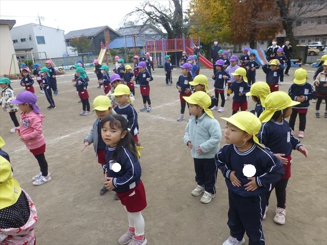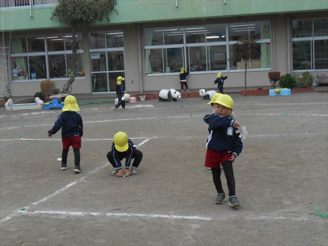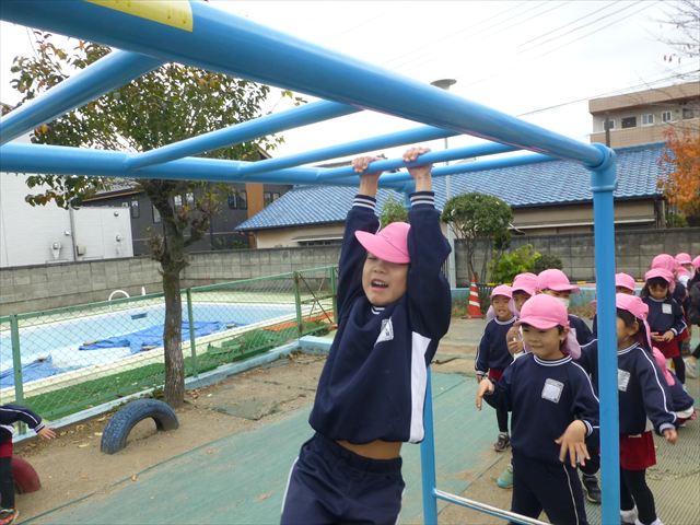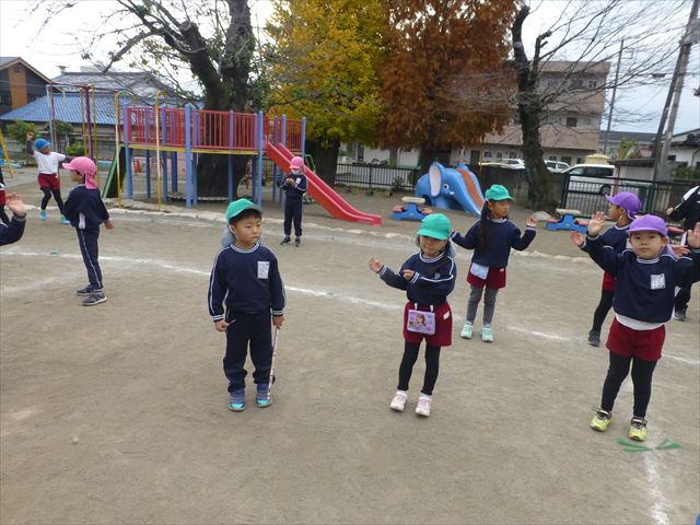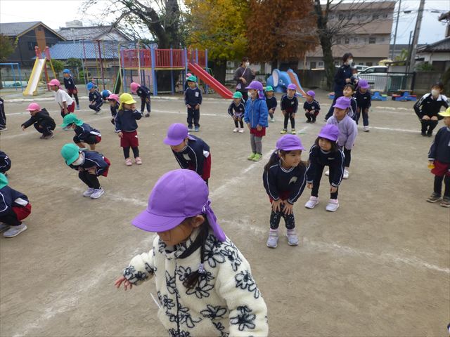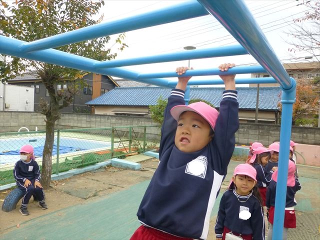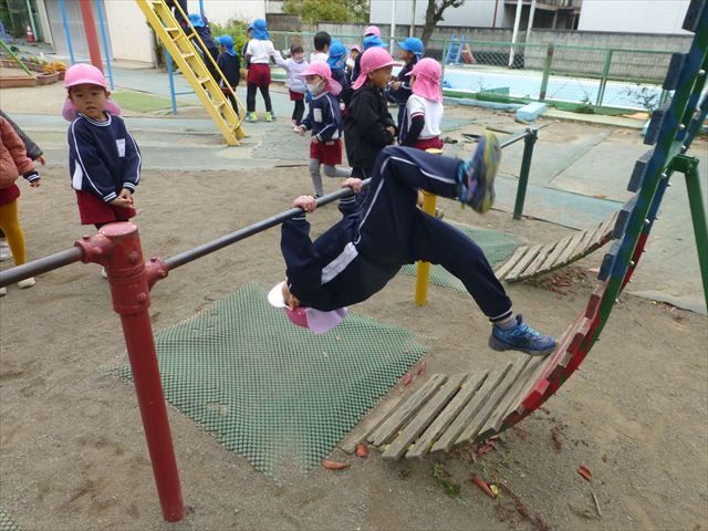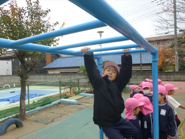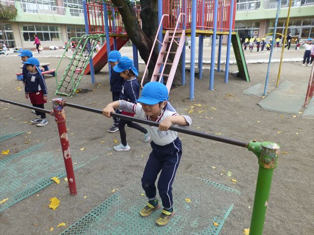 今日は、朝から体操とサーキットをしました!寒い中でしたが怪獣になりきって「ガオー!」「ウーハッ!」と大きな声を出して頑張りました!サーキットもボール投げ、鉄棒、雲梯などそれぞれの学年に分かれて取り組みました!