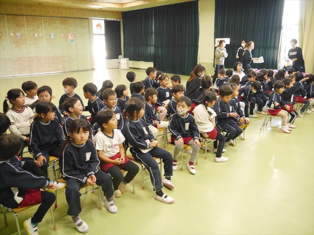 「発表会」の観覧席は、今までと同様に全員の保護者(両親2人のみ)の皆さんが観覧しやすいように工夫した観覧席となります。前から3列目までの方は絨毯席、4~6列目の方は園児用のいす、7~10列目の方は折りたたみパイプ椅子とし、後方の方々が座っても見やすいよう座る高さの違いをつけさせていただきました。それでも見づらい後方の方々は、他の方の邪魔にならない範囲で、椅子を動かしたり、「立ち見」での見学も許可する予定です。それぞれの席で多少見づらかったりする点もあるかと思いますが、是非ご理解ご了承をよろしくお願いいたします!m(_ _)m <(_ _)>