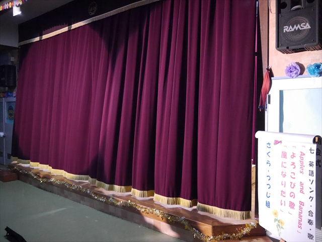 今日は遊戯室で、年中組・たんぽぽ組「発表会」の予行練習を行いました。遊戯室で全体の動きや流れ、各係の仕事、準備等を確認しながら行いました。今年も大間々南小学校からスポットライト2台をお借りし、照明器具もまた新しく購入しましたので、ステージ上がさらに明るく見やすくなりました!(*^_^*) 後は子どもたちの仕上がり具合のみです!(^_^)b