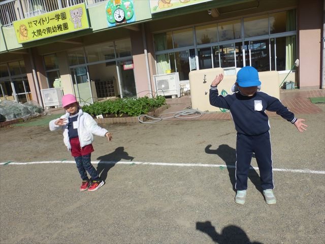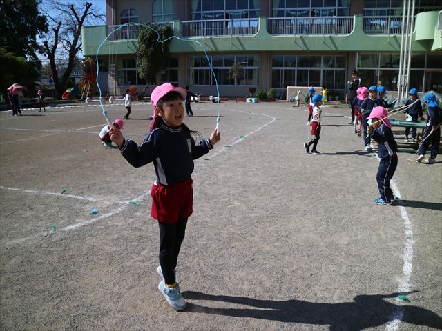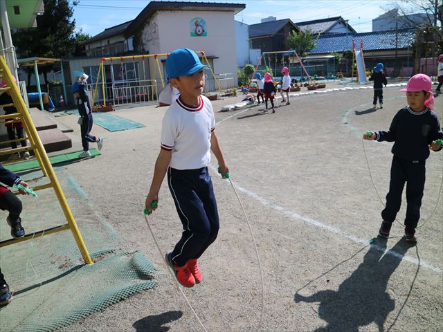 入室前に体育の時間として縄跳びをしました。友だちと数え合いながら頑張る姿も見られました。