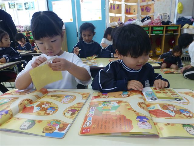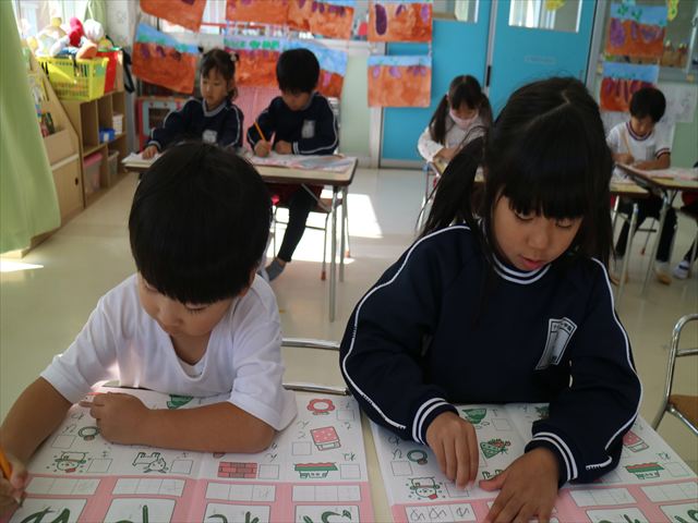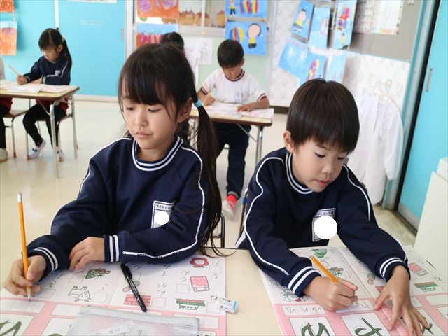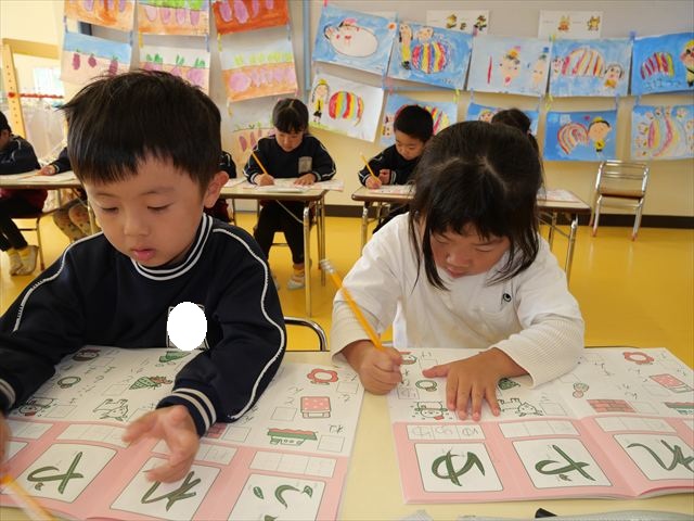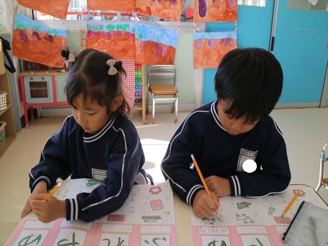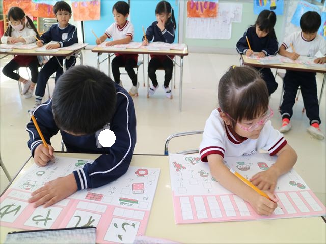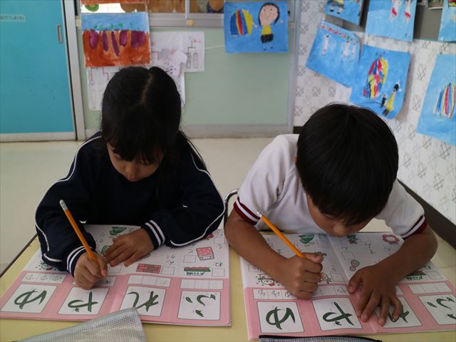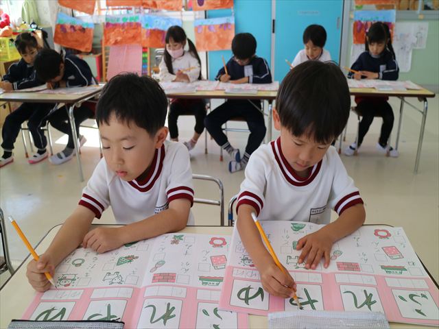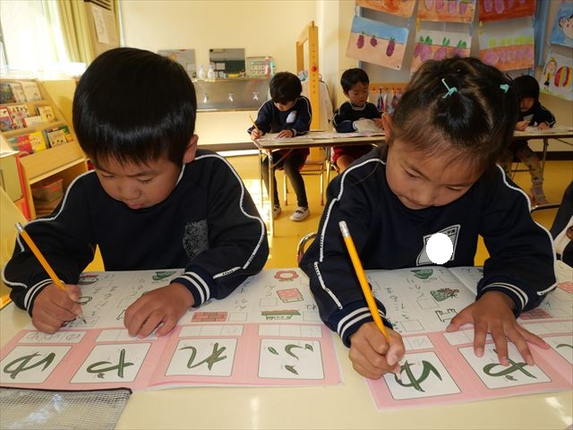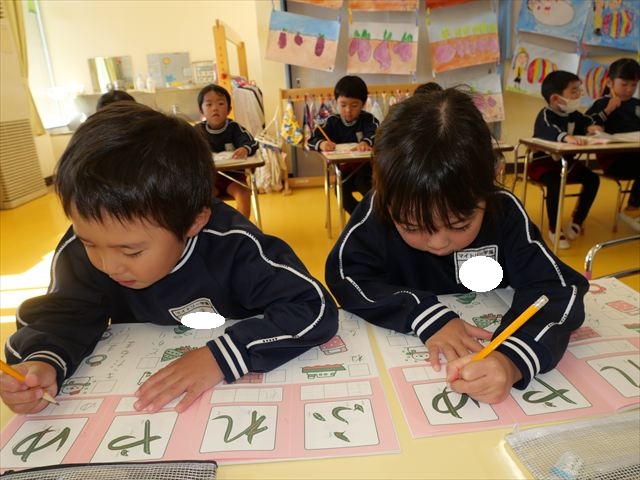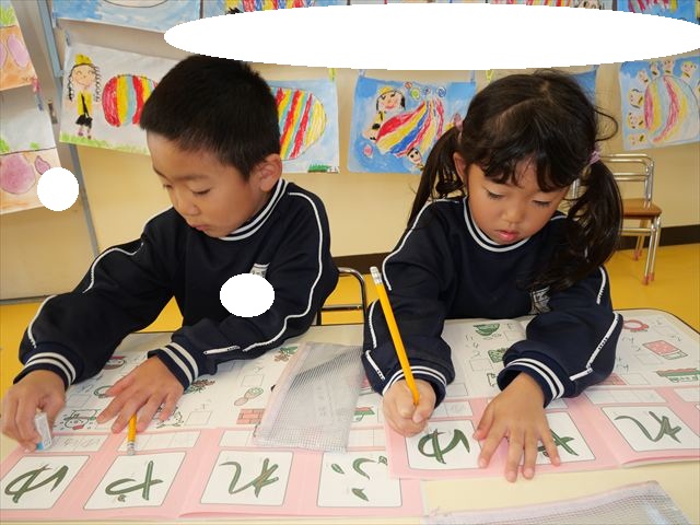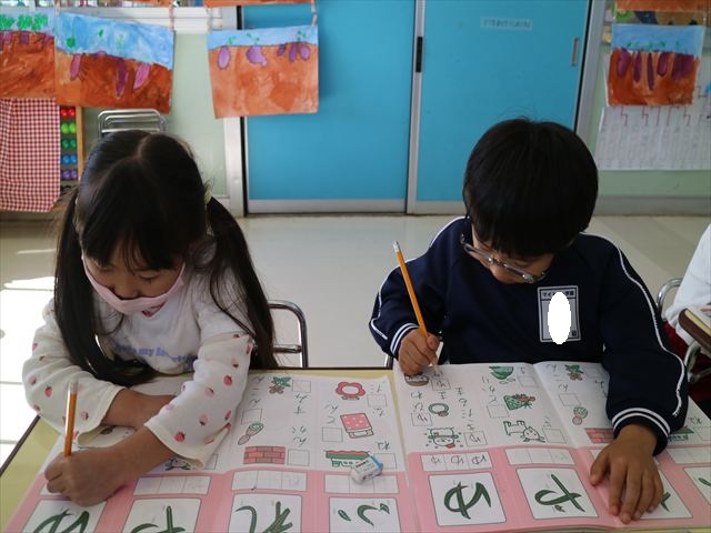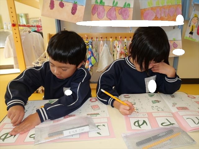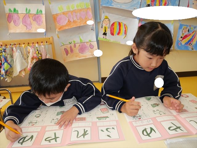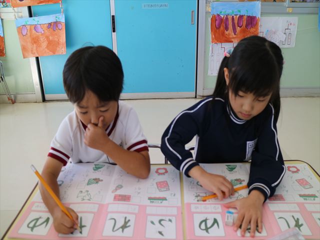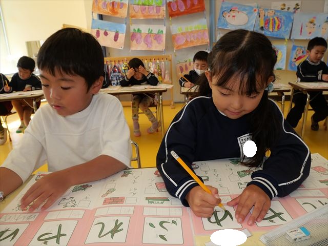 国語の時間はワークをしました。今回は「ゆ」「や」の練習でした。「や」はバランスが崩れると「か」に見えてしまうので気を付けて書くようにしました!