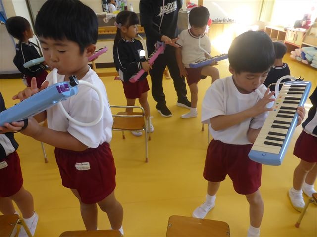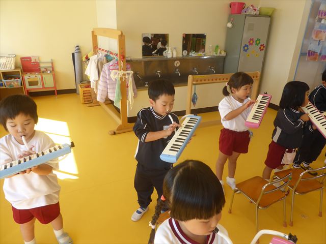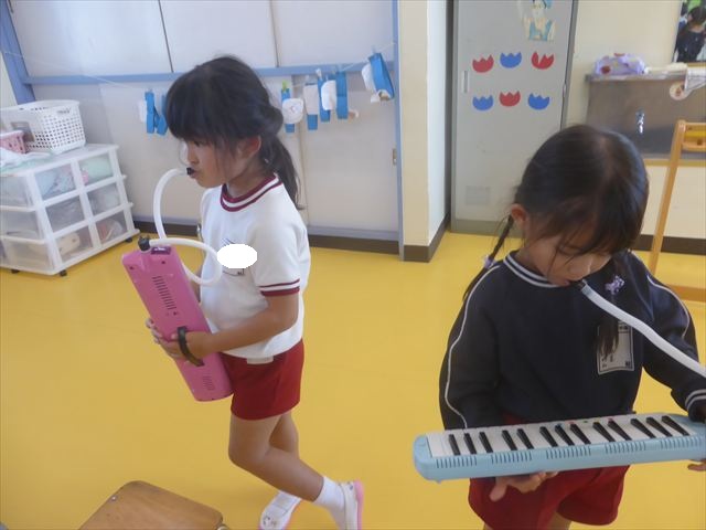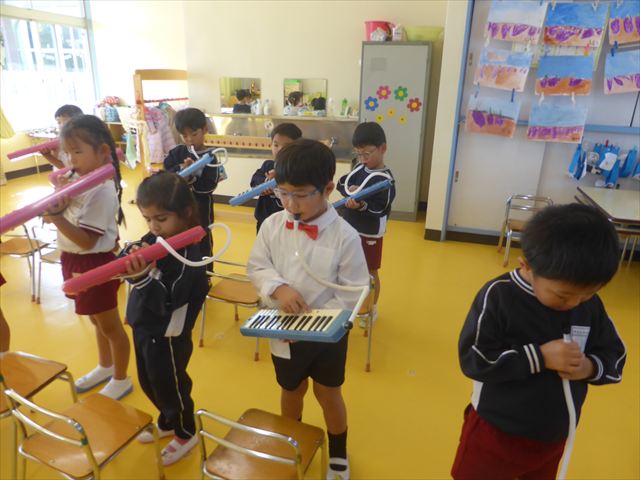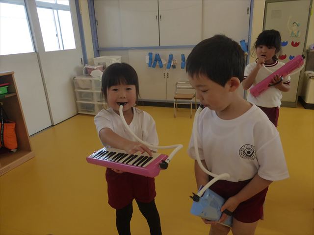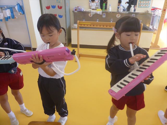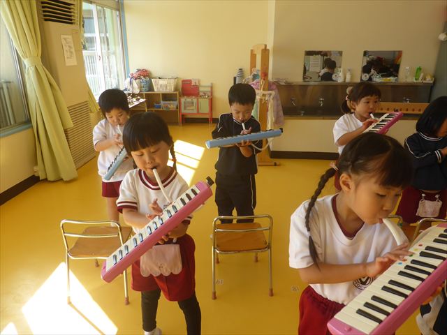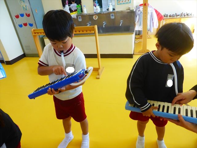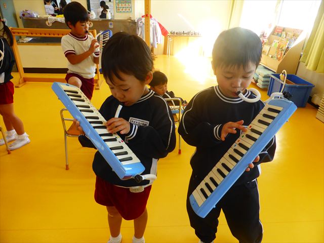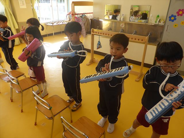 今日の発表会練習は、劇あそびと鍵盤ハーモニカをしました。劇あそびは個々のセリフを覚えて大きな声で言えるようになってきました。楽しそうに練習する姿が見られています。鍵盤ハーモニカは、今日から立って吹く練習も始めました。やることが盛りだくさんですが、子どもたちは一つ一つ一生懸命取り組んでいて感心するばかりです!