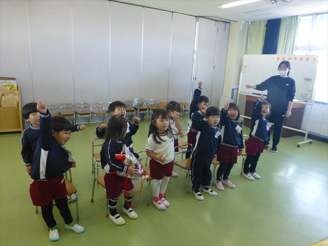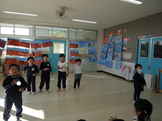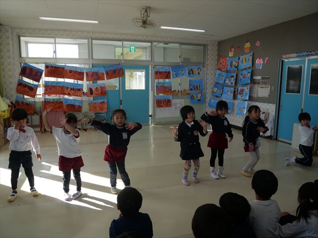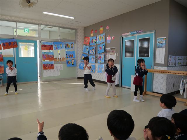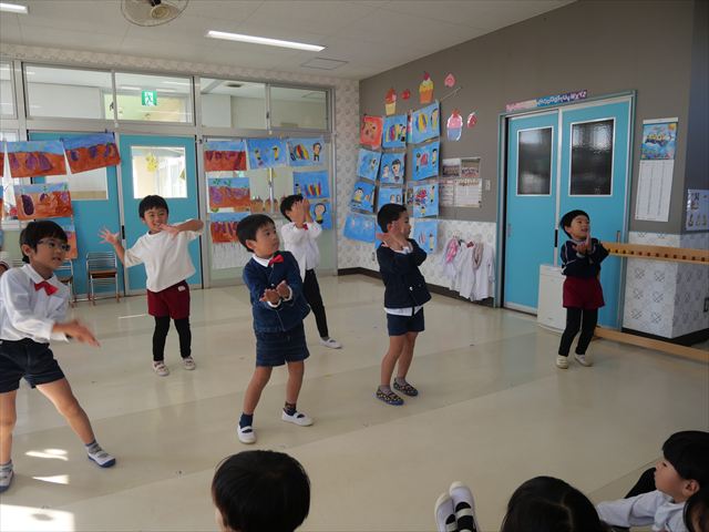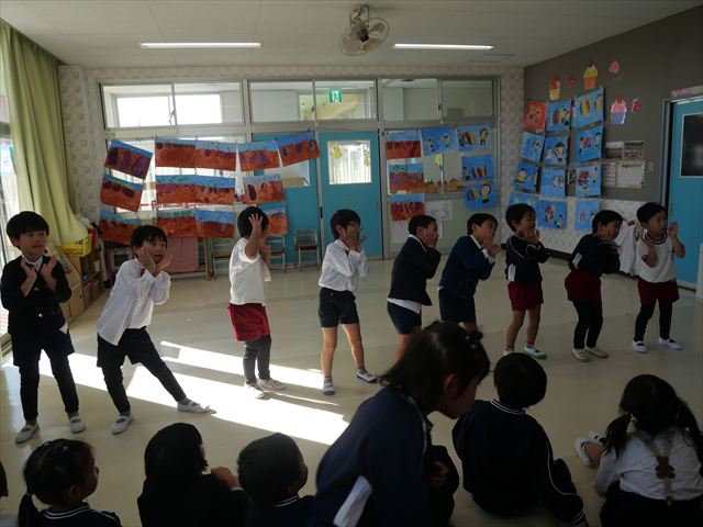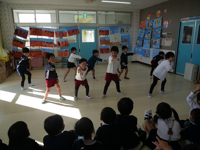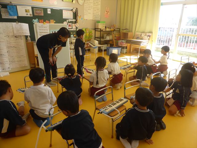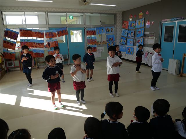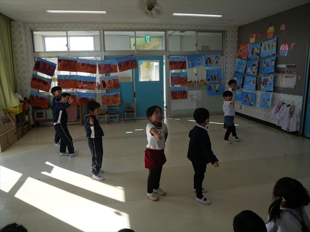 今日の発表会練習は、劇あそびと鍵盤ハーモニカをしました。劇あそびは個々のセリフを覚えて大きな声で言えるようになってきました。楽しそうに練習する姿が見られています。鍵盤ハーモニカは、今日から立って吹く練習も始めました。やることが盛りだくさんですが、子どもたちは一つ一つ一生懸命取り組んでいて感心するばかりです!