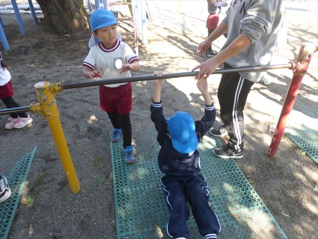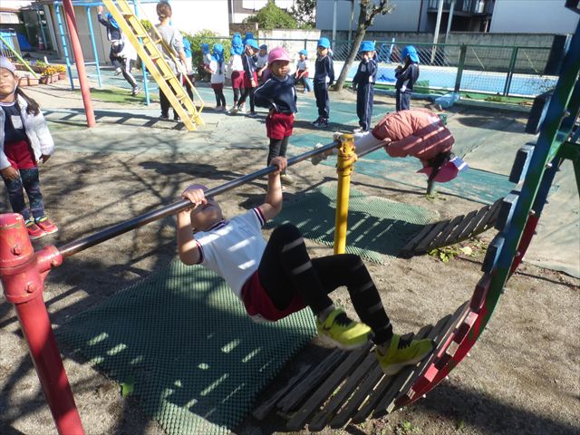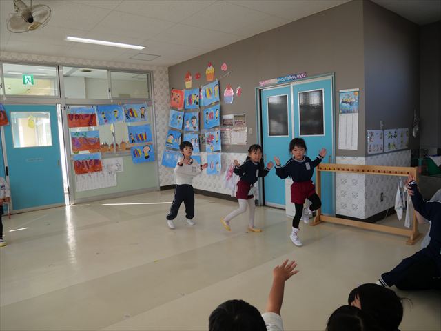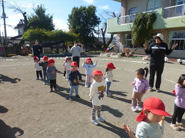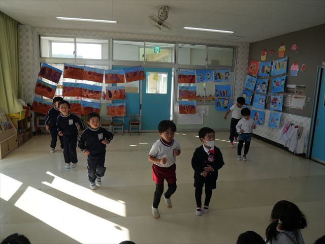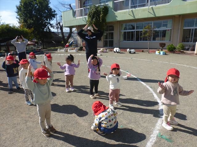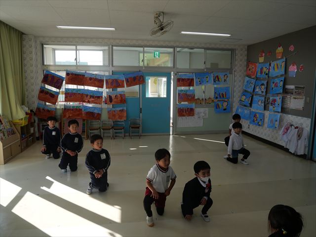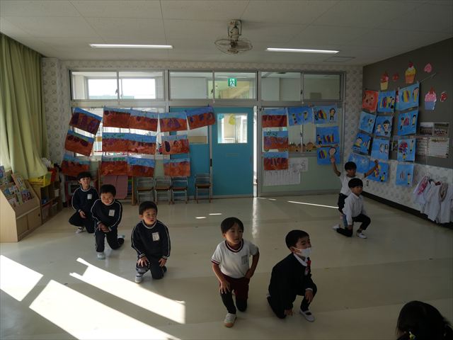 今日は体操とサーキットトレーニングをしました。久しぶりの体操とサーキットでしたが元気よく取り組むことが出来ました!これからどんどん寒くなっていきますが張り切って頑張っていきたいと思います!(^▽^)※年中組はひたちなか市との市民交流会、年少組英語教室があったため不参加でした。