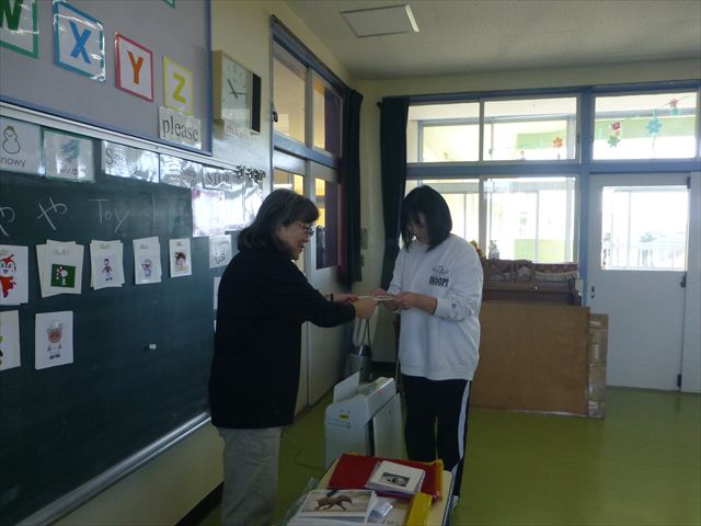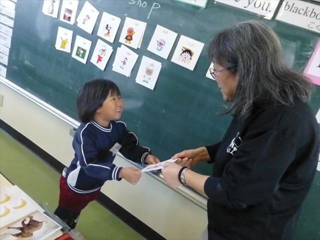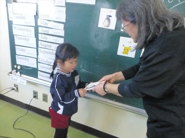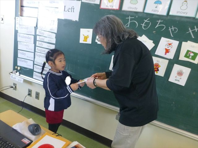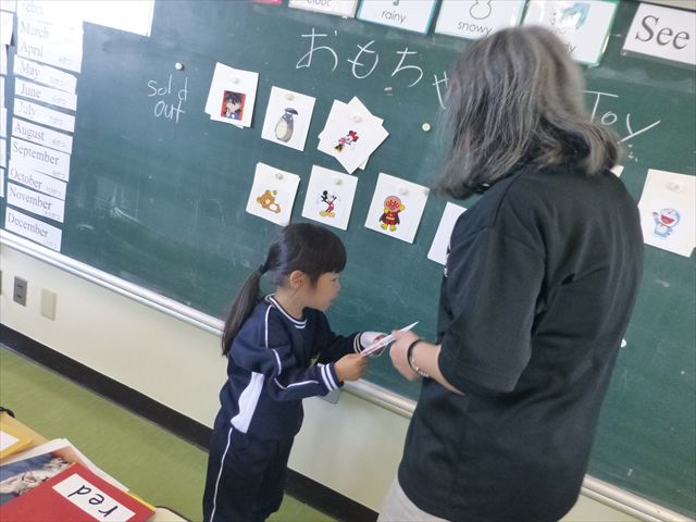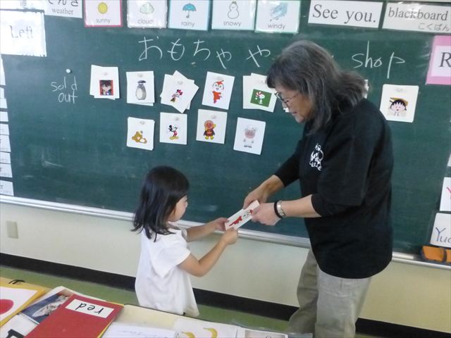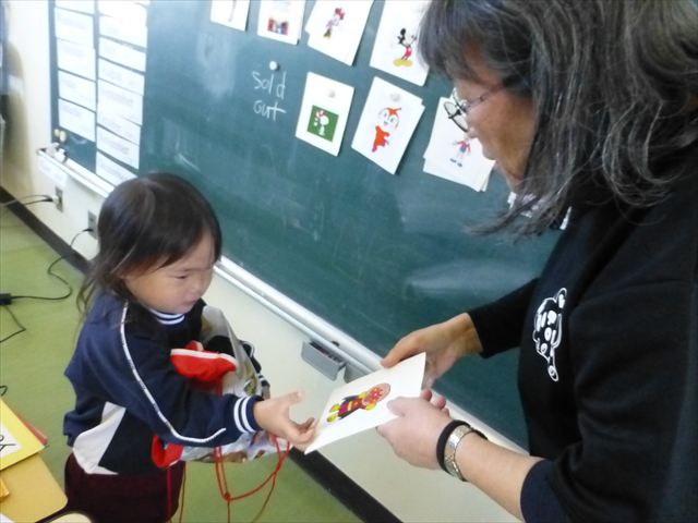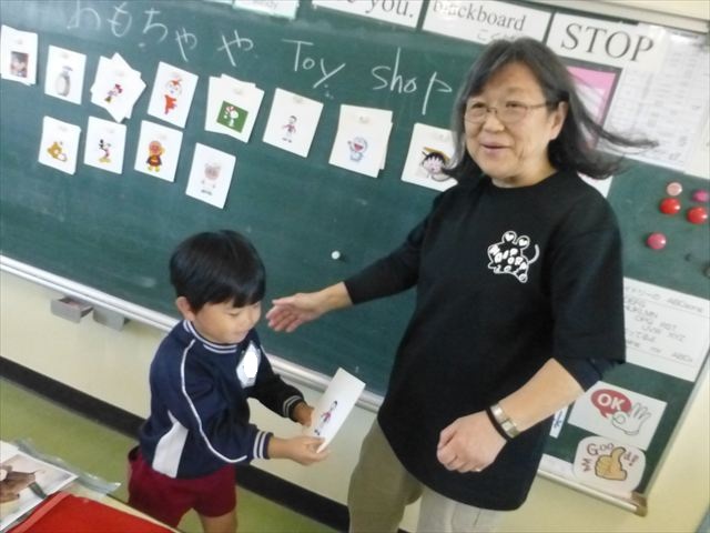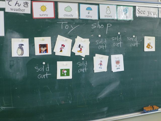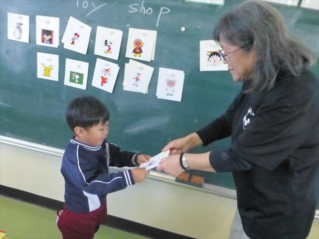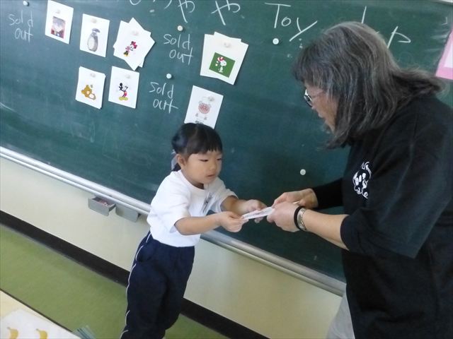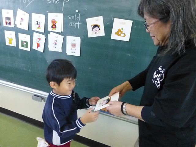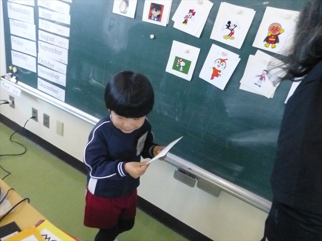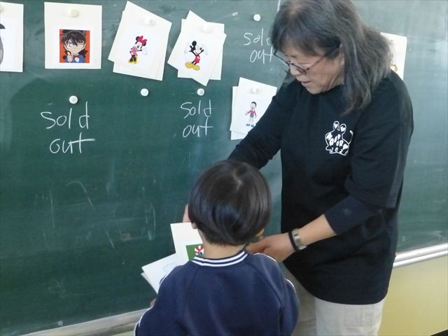 今日は、英語教室に参加しました!(^^)!今日は、前回までの復習をしました。そのあと、「好きなイラストのカードを買う。」という設定で「I Like ○○」「○○please」「Thank you」のやり取りを英語で練習しました(