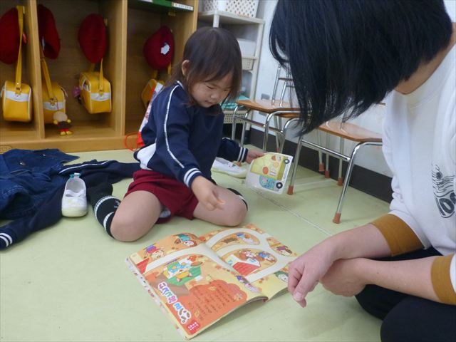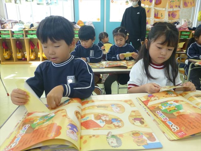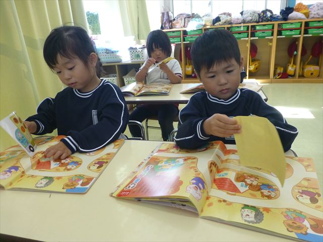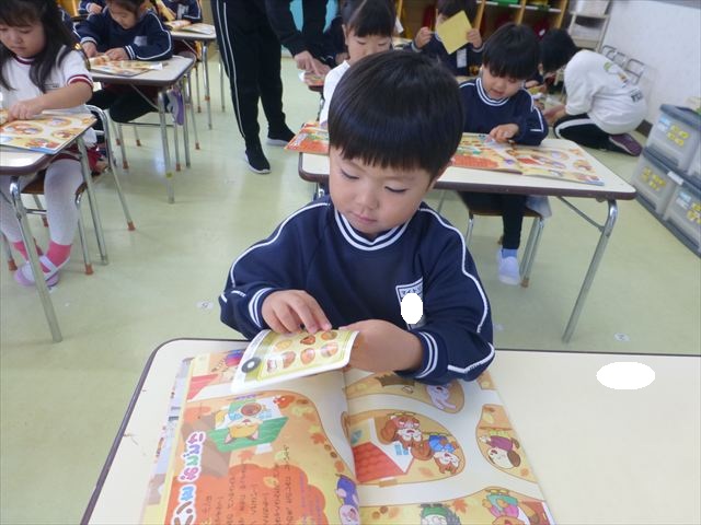 ^^ )楽しく英語教室に参加しました。その後は、月刊誌を見ました。パンの作り方が載っていて、真剣に見ていました。午後は、発表会の練習をしました。新しいダンスを練習し、楽しそうに参加していました。