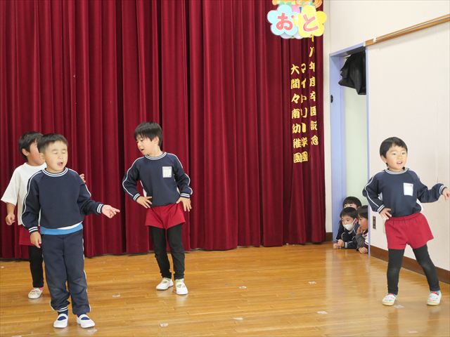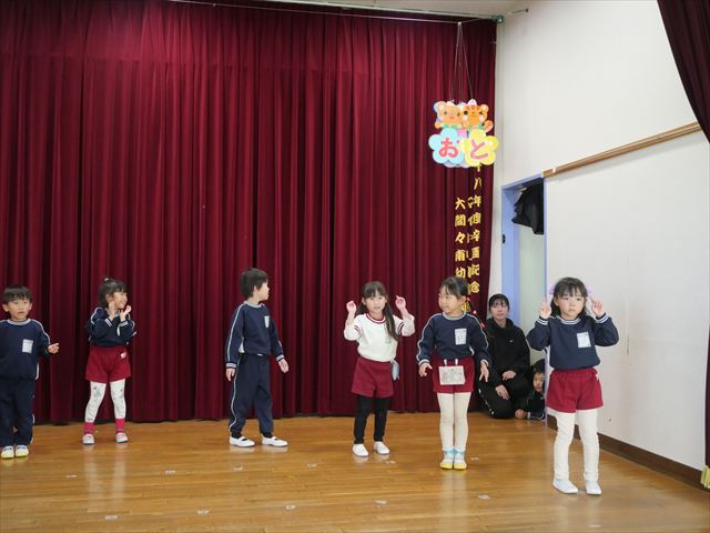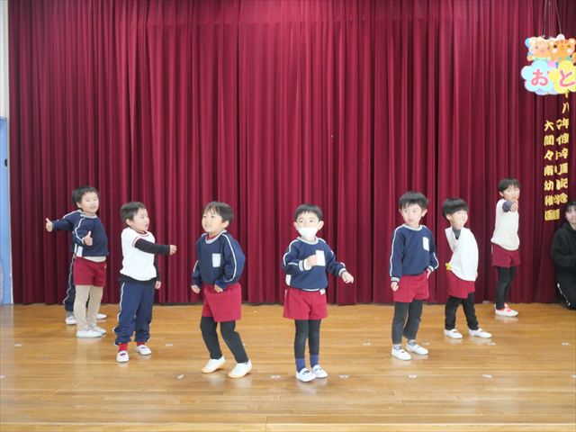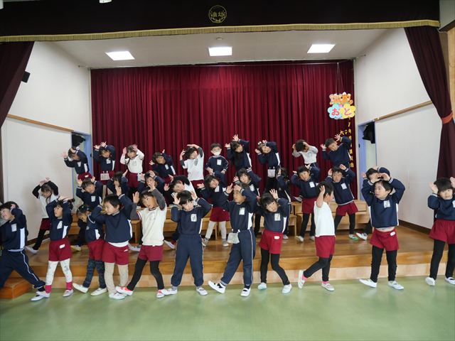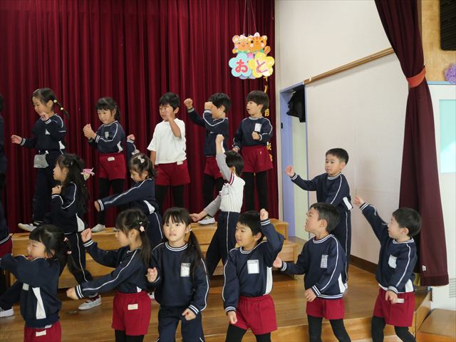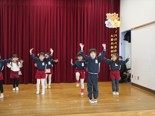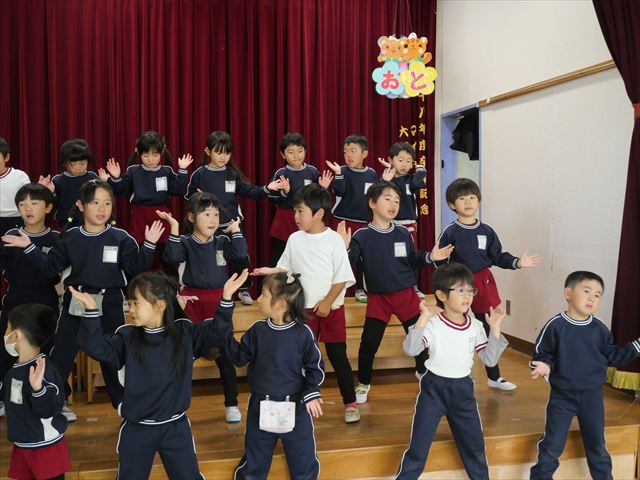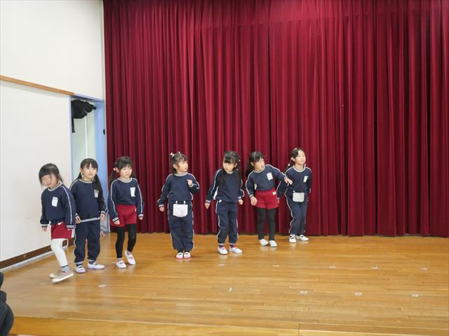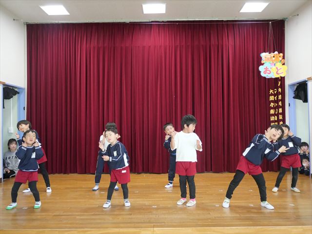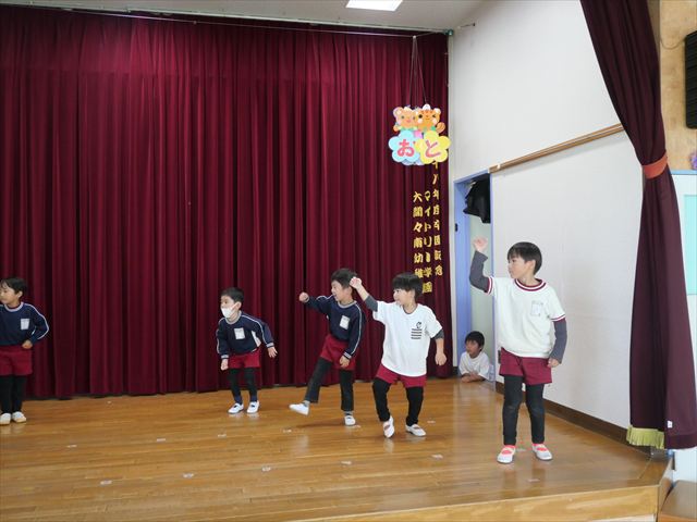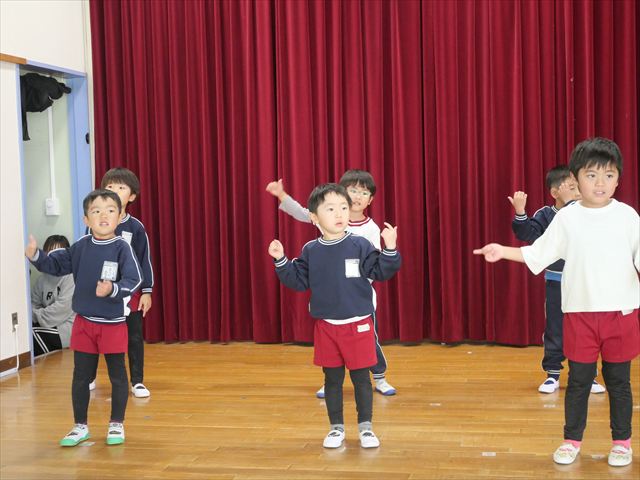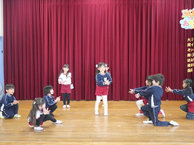 午後は発表会の練習をしました。お遊戯室で練習してみると、本番の流れをイメージしながら練習することができました!まだまだ練習が必要なところはたくさんあるので、頑張っていきたいと思います!
