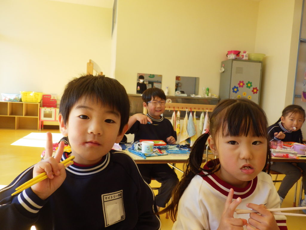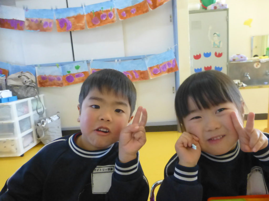 午前中遊戯室で発表会の練習を頑張り、午後は教室で好きな遊びを楽しみました!風邪をひいている子が増えてきました。手洗いうがい、消毒などしっかり行っていきたいと思います。