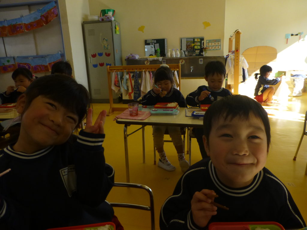 今日は、朝から体操とサーキットをしました!寒い中でしたが怪獣になりきって「ガオー!」「ウーハッ!」と大きな声を出して頑張りました!サーキットもボール投げ、鉄棒、雲梯などそれぞれの学年に分かれて取り組みました!