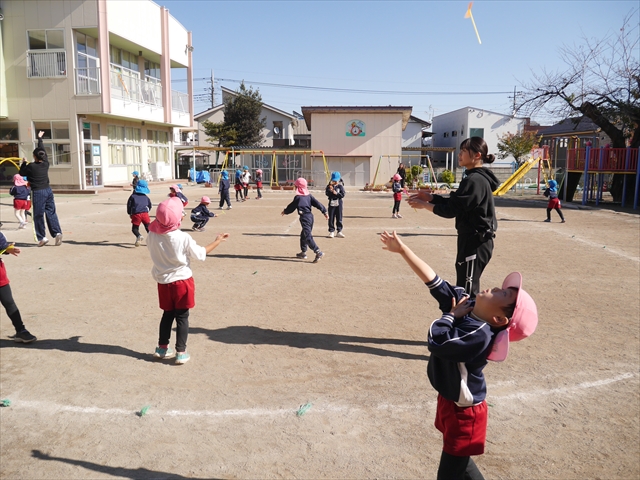 年長組になってドッジボールをすることが増えました。ですが、たいよう組は、なかなかうみ組さんに勝てなくて悔しい思いをしたり、ボールが怖かったりする子がいるように感じたので今日は「中当て」をしてボールに触れながら楽しくドッジボールの特訓をしました!最後にはクラスを二つに分けて気合を入れてドッジボールの試合をしました!投げたり、蹴ったりルールを変えながら楽しむことが出来ました!