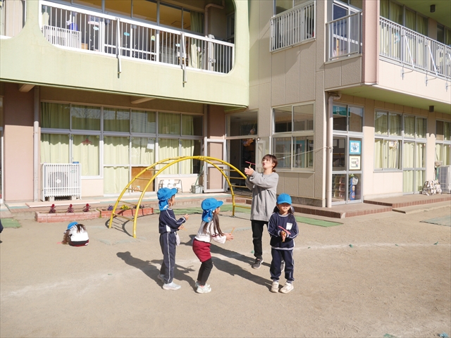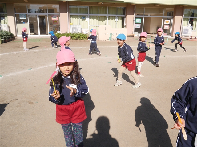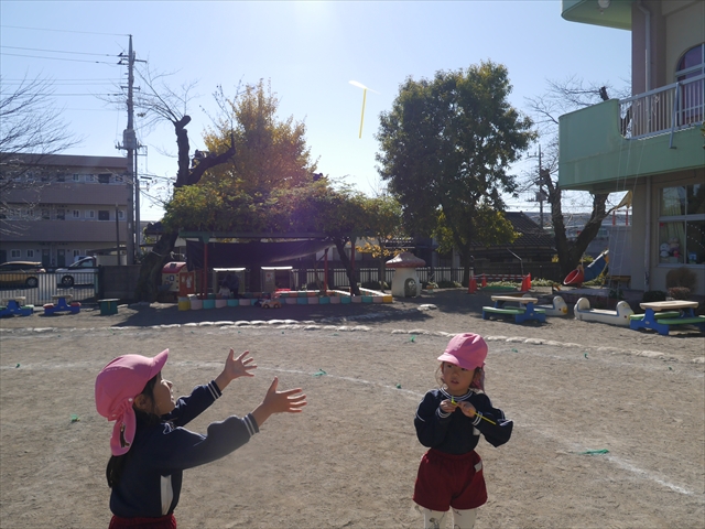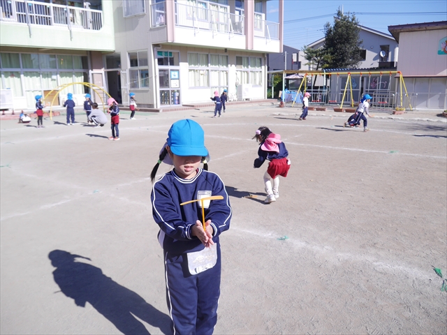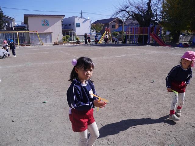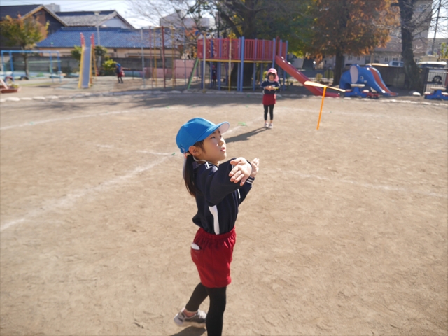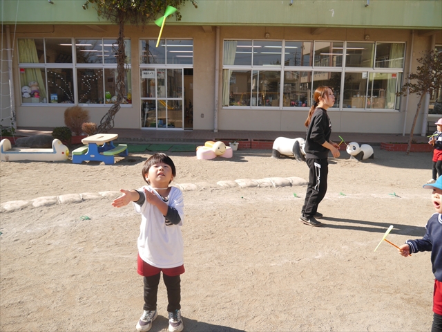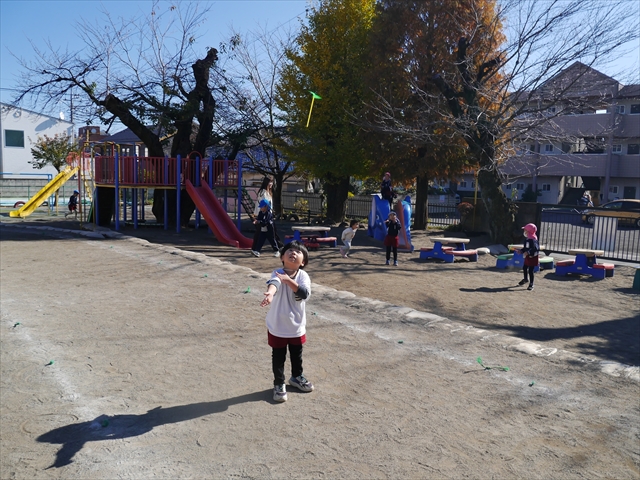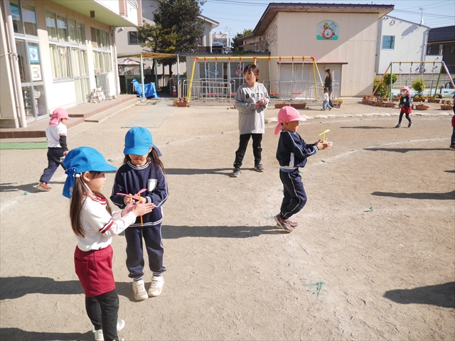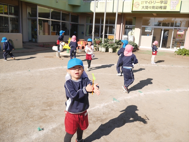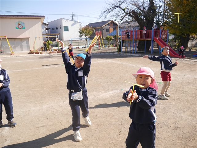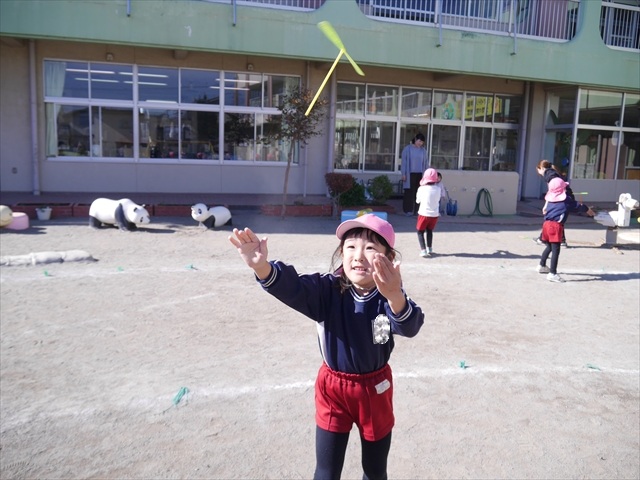 エレクトーンコンサートのあとは、今日は主体性の時間として「竹とんぼ遊び」をしました。先日少し遊んだことで竹とんぼに興味を持つ子も多く、とても喜んで遊んでいました!友だちや先生と「どうやったら高く飛ぶか」「高いところから飛ばしたらどうなるか」など子どもたちが飛ばし方や遊び方を自分で考えながら楽しむことが出来ました☆