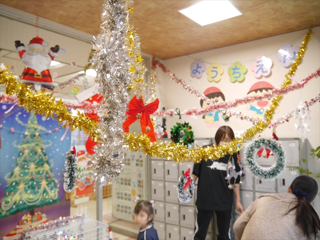 そろそろ年末商戦も花盛りとなり、各種値上げラッシュの中、お子さんへのクリスマスプレゼントの出費で保護者の皆さんも頭が痛いところだと思います。それに追い打ちをかけるように、マイトリー幼稚園の玄関・ホールも「クリスマス・バージョン」となりました。子どもたちにも「よい子にしていると、サンタさんからとっても素敵なクリスマスプレゼントがもらえるよ!」と話しております。また、12月15日(月)のALT英語教室は「クリスマス・バージョン」となりますので、英語へ関心・意欲を高め、モチベーションをあげていくため、クリスマスへの雰囲気作りに努めていきたいと思います!!(*^O^*)
