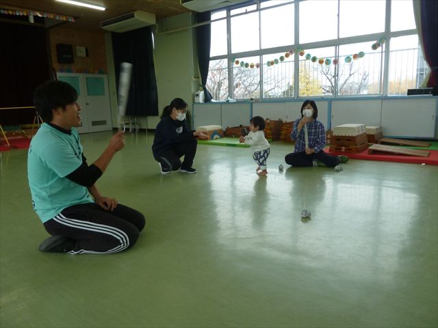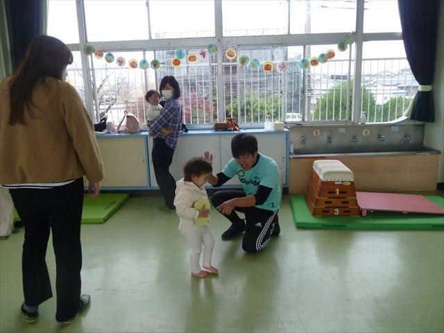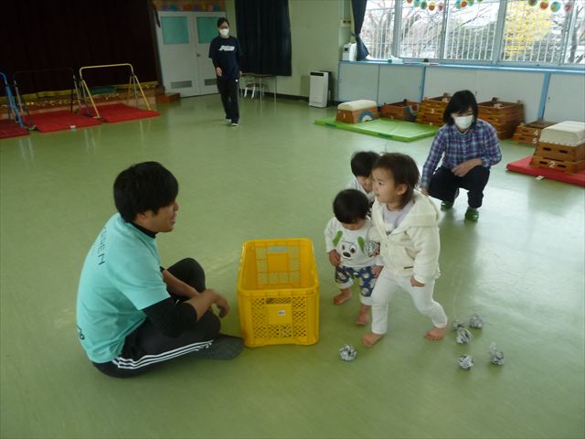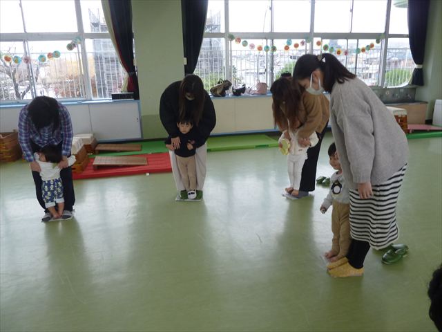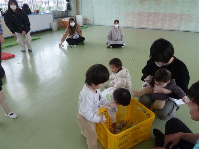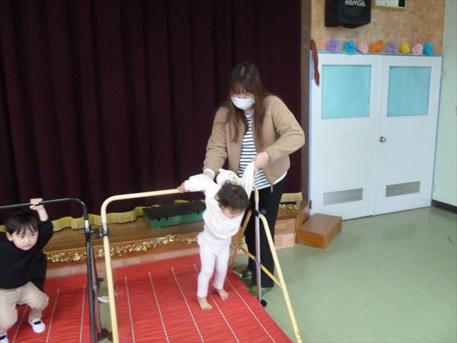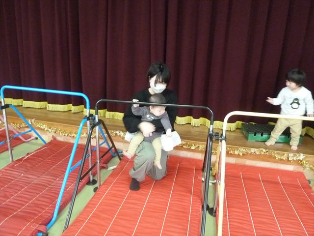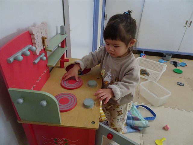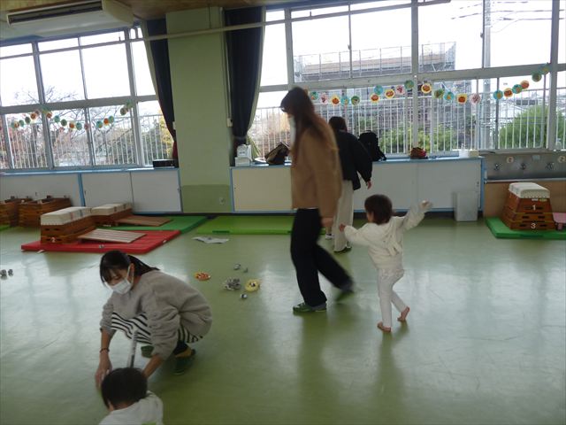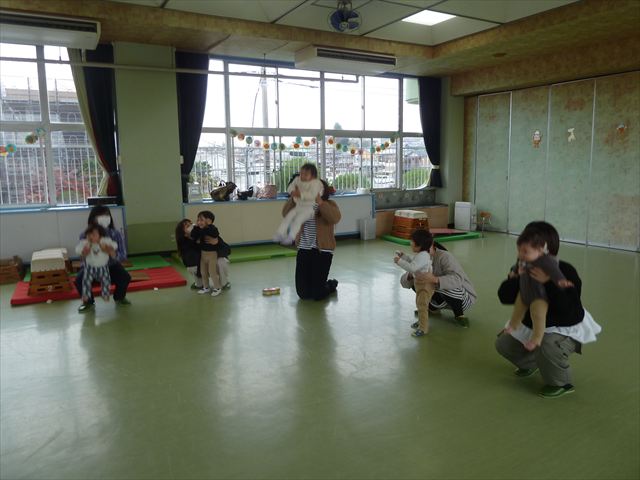 満2歳児さんは、自由遊びをしました!いつものA組B組とは違うお部屋で、普段遊べないおもちゃもたくさん♪お友だちや先生と一緒に楽しく遊んでいました(