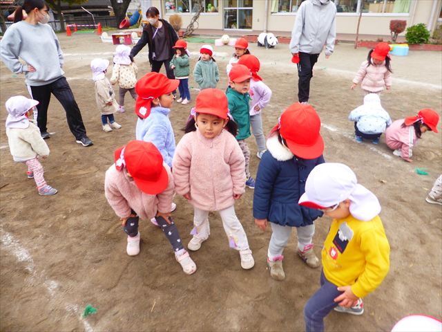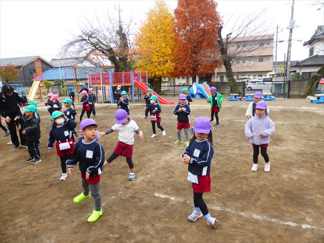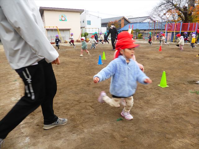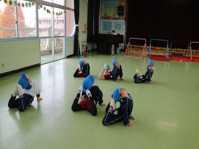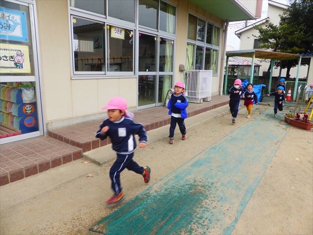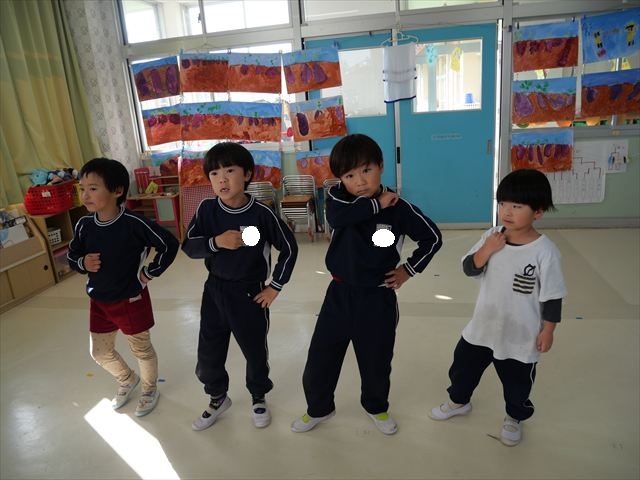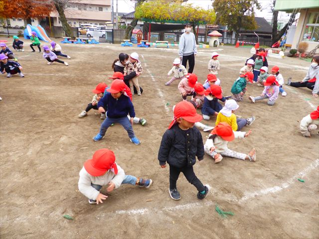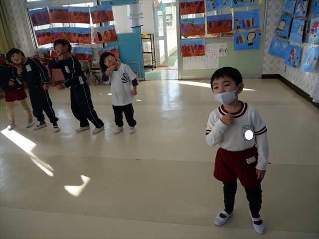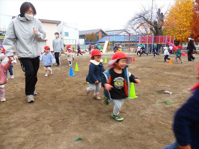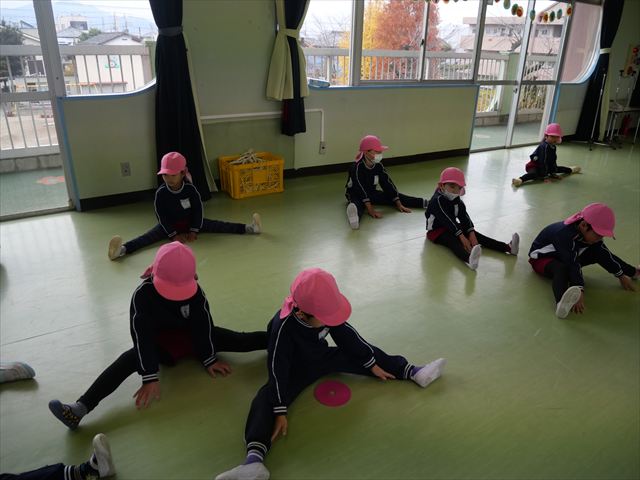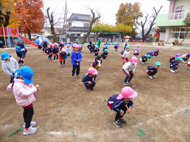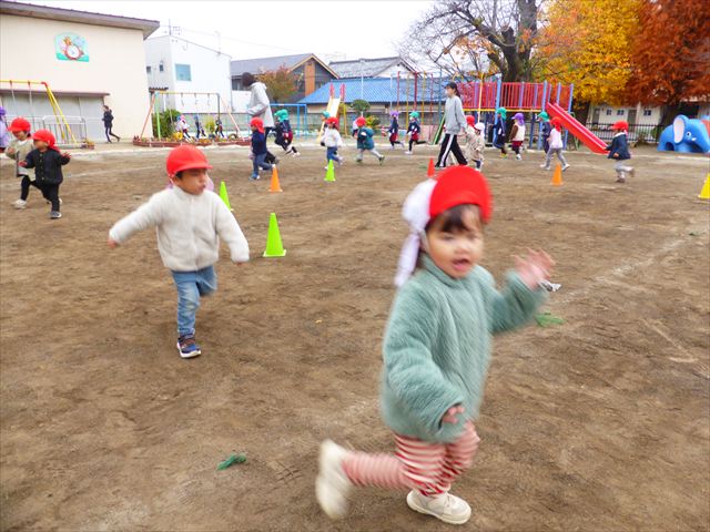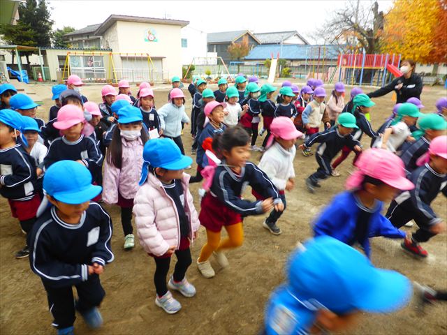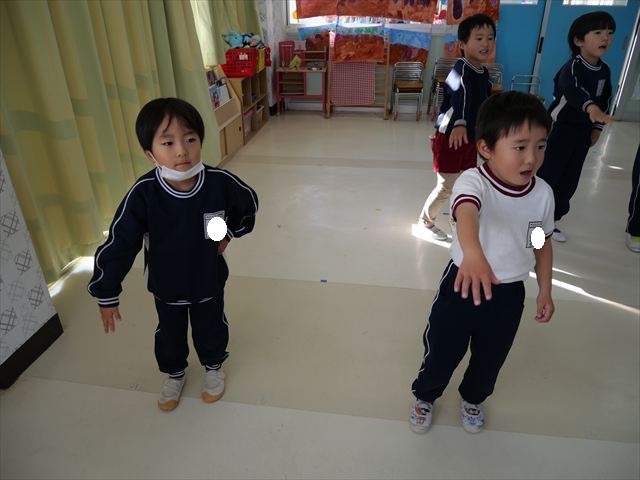 今日は体操とマラソンをしました!初めの頃よりも曲が終わるまで走り切れる子が増えてきました!この調子で冬を乗り越えられるように頑張ろう!