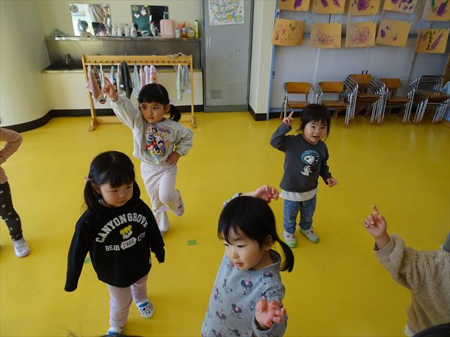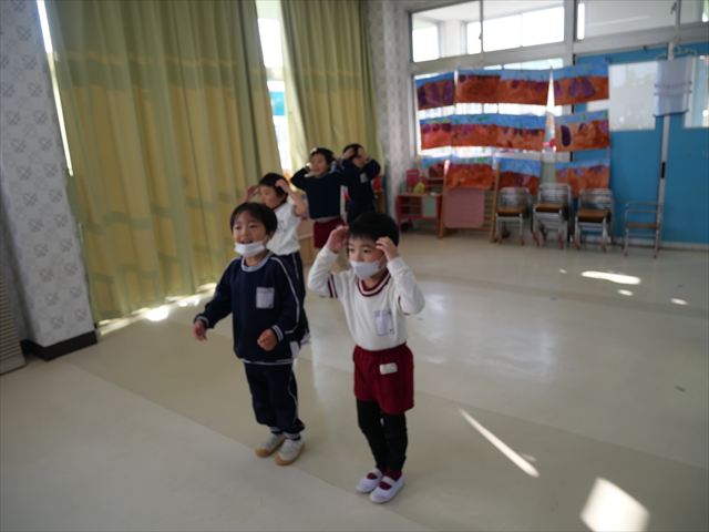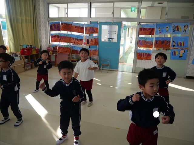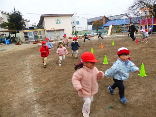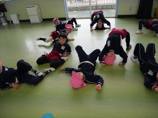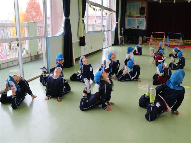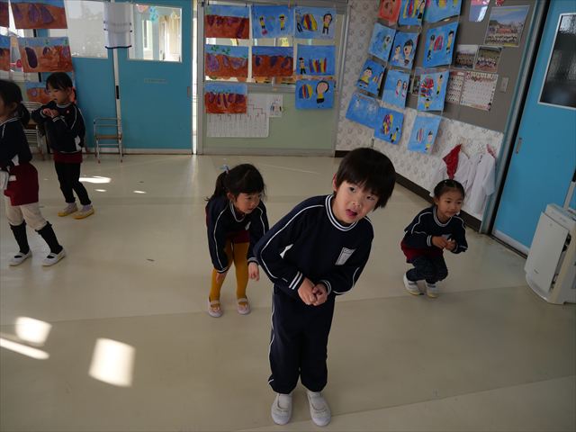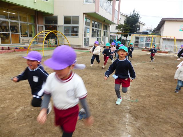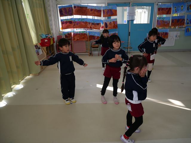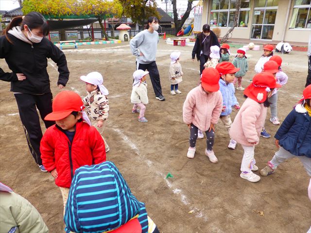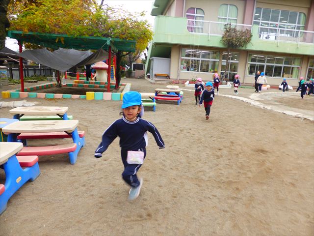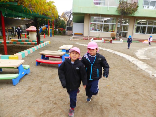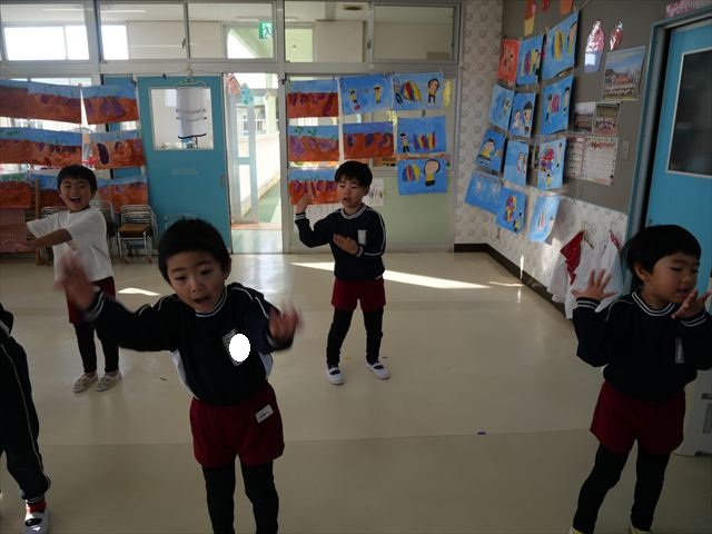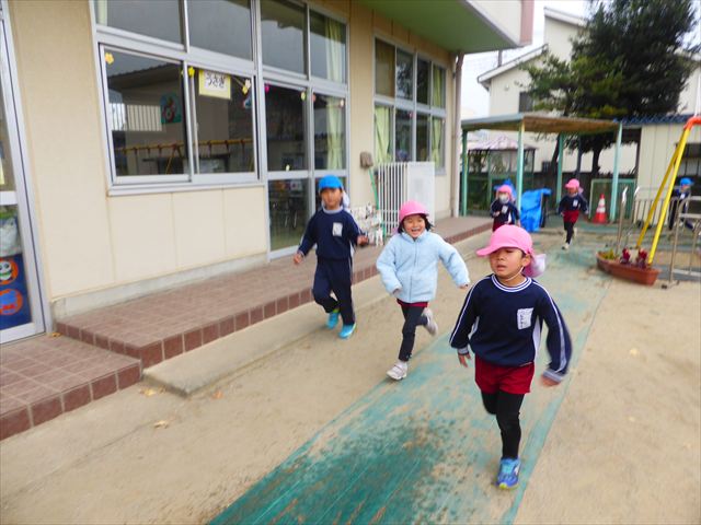 今日は体操とマラソンをしました!初めの頃よりも曲が終わるまで走り切れる子が増えてきました!この調子で冬を乗り越えられるように頑張ろう!
