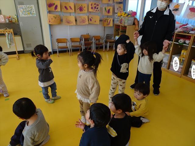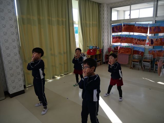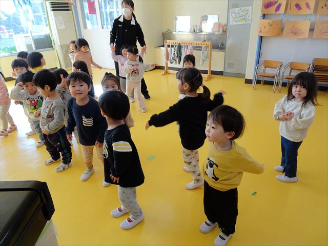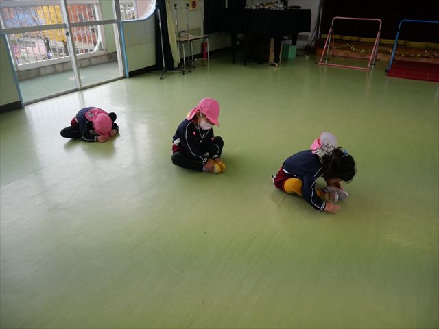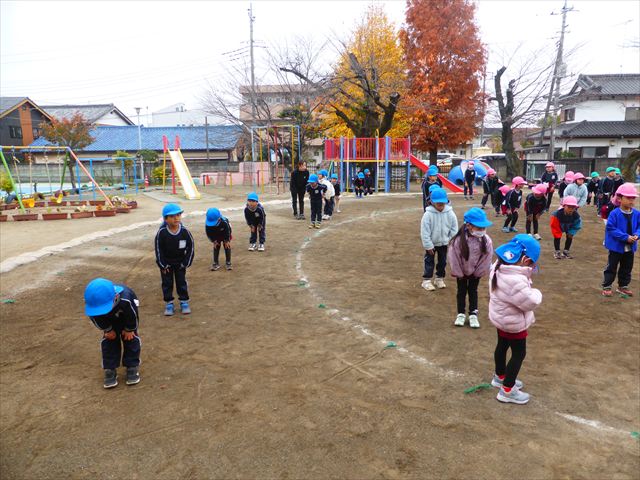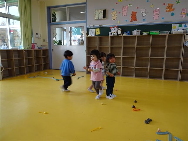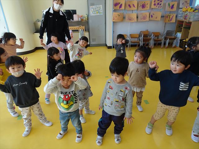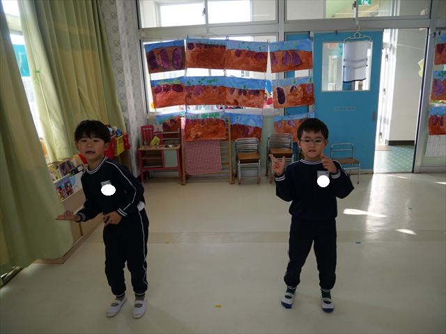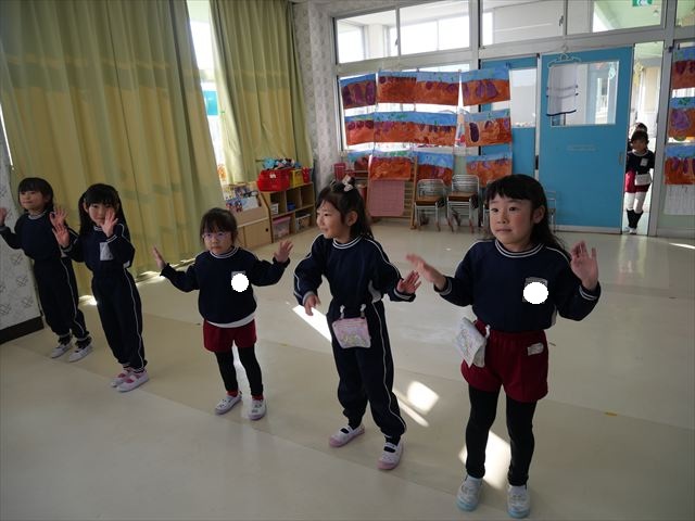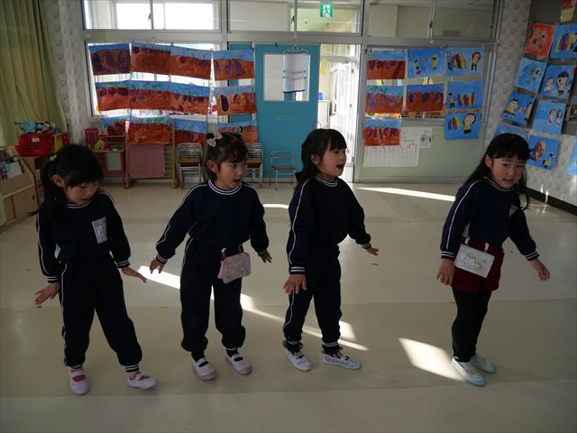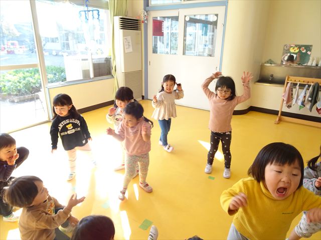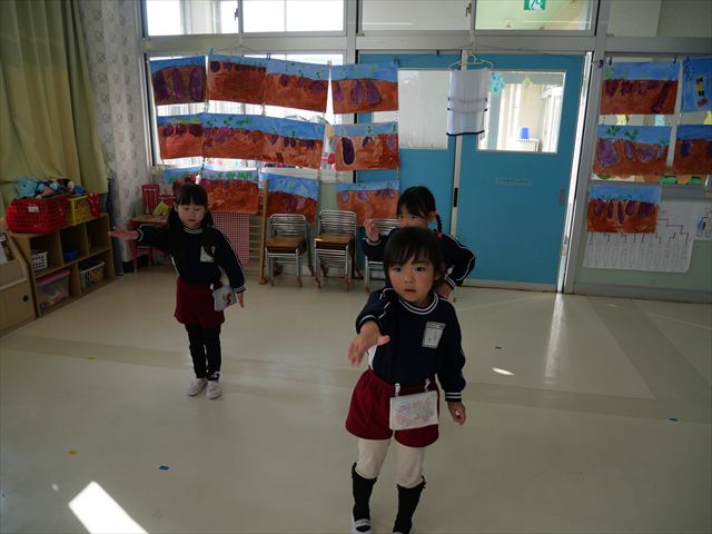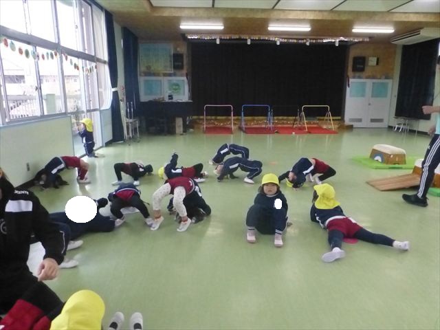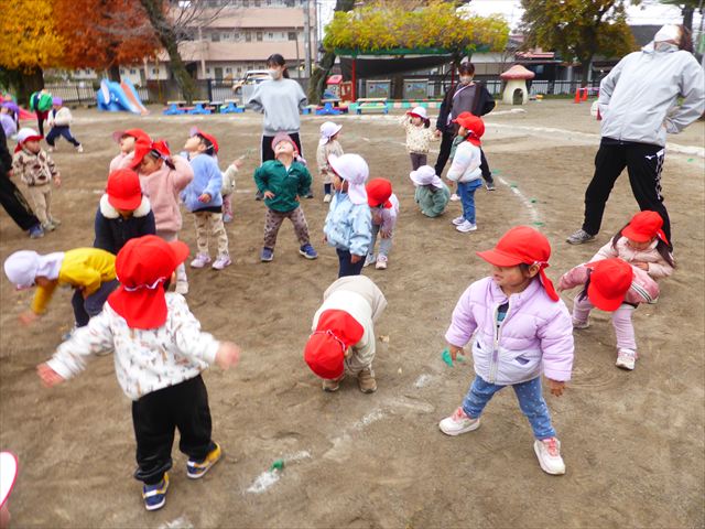 今日は体操とマラソンをしました!初めの頃よりも曲が終わるまで走り切れる子が増えてきました!この調子で冬を乗り越えられるように頑張ろう!