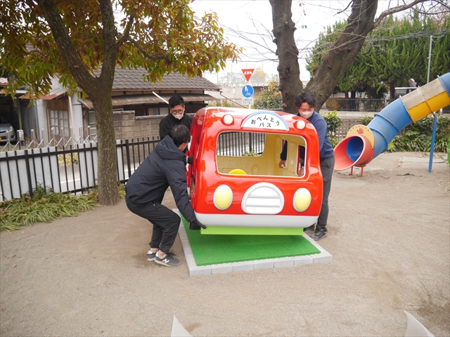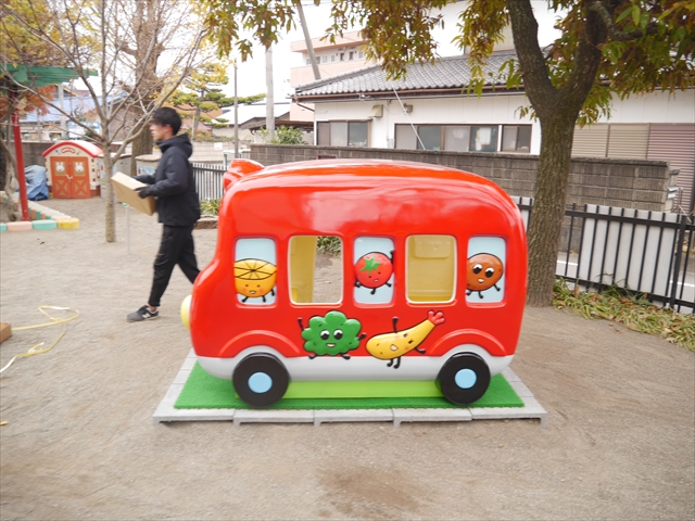 今日は、年長組保護者の皆さんからの卒園記念品である「おべんとうバス」を設置しました。折角の園庭遊具なので、年長さんが遊べるように早めに購入しました。高額なので、安くするため基礎工事や設置工事も園で行いました!(^^;) 年長保護者の皆さん、ありがとうございました!m(_ _)m