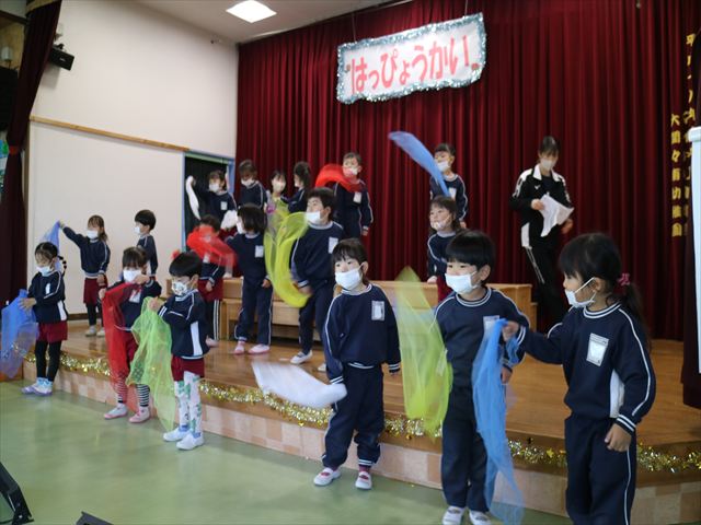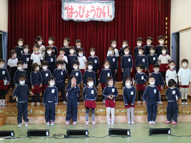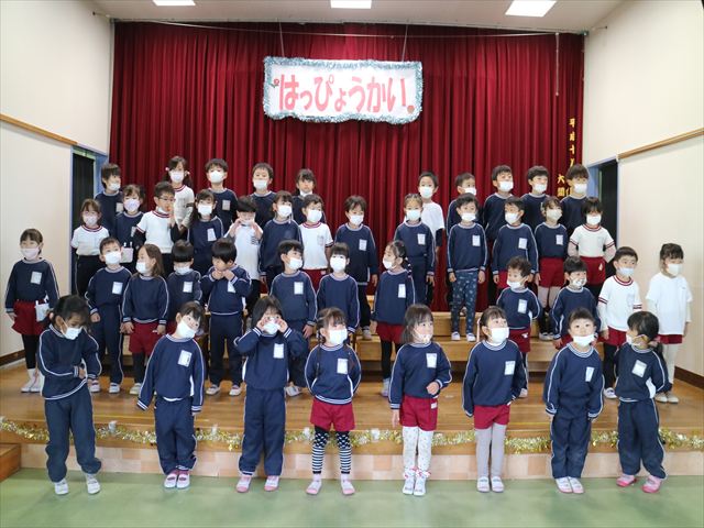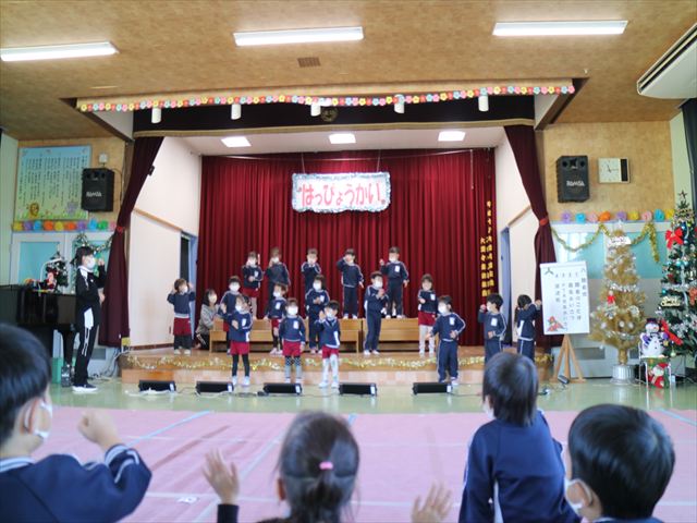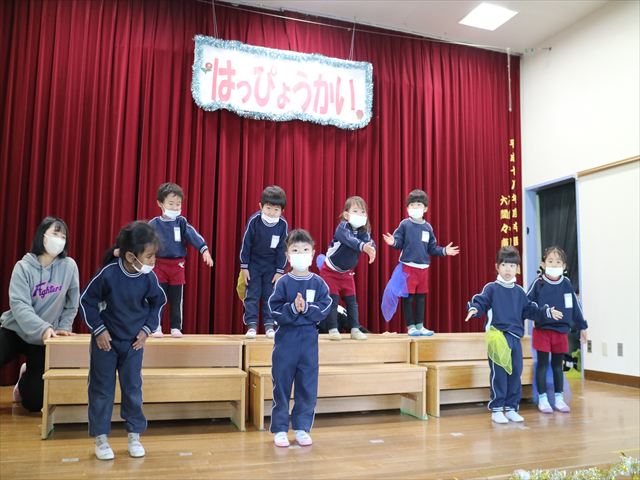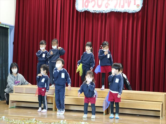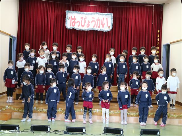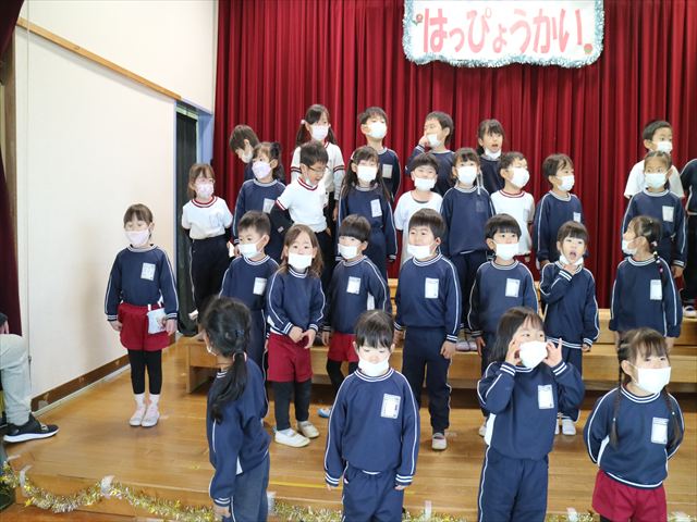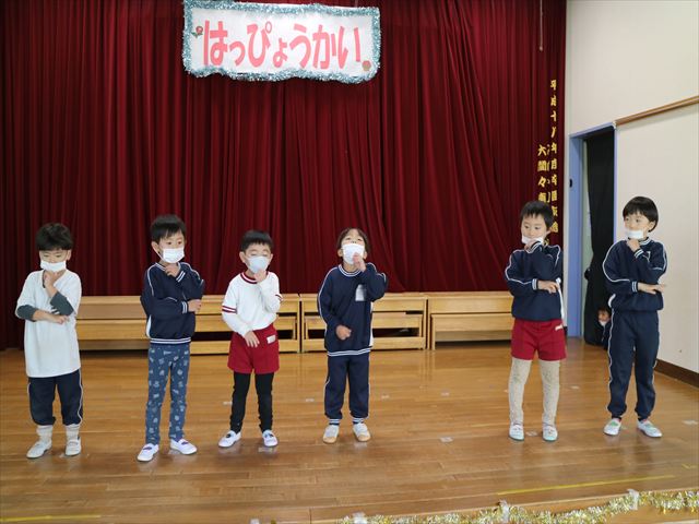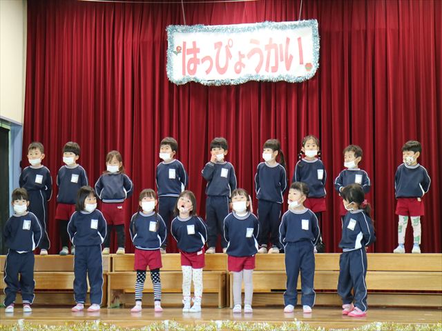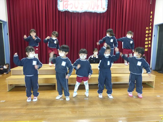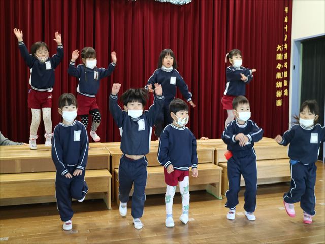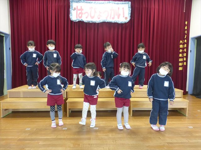 なわとび教室のあとは年少さんの発表会の練習を見学に行きました。一生懸命踊る年少さんを見て「かわいかった!」「上手だった!」とすっかりお兄さんお姉さんな感想を言っていました(^^)また一緒に全員合唱の練習もして、本番でも一緒に頑張ろうね!とやる気を出していました!